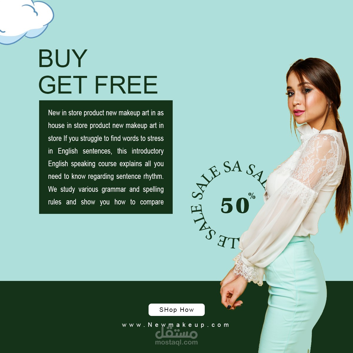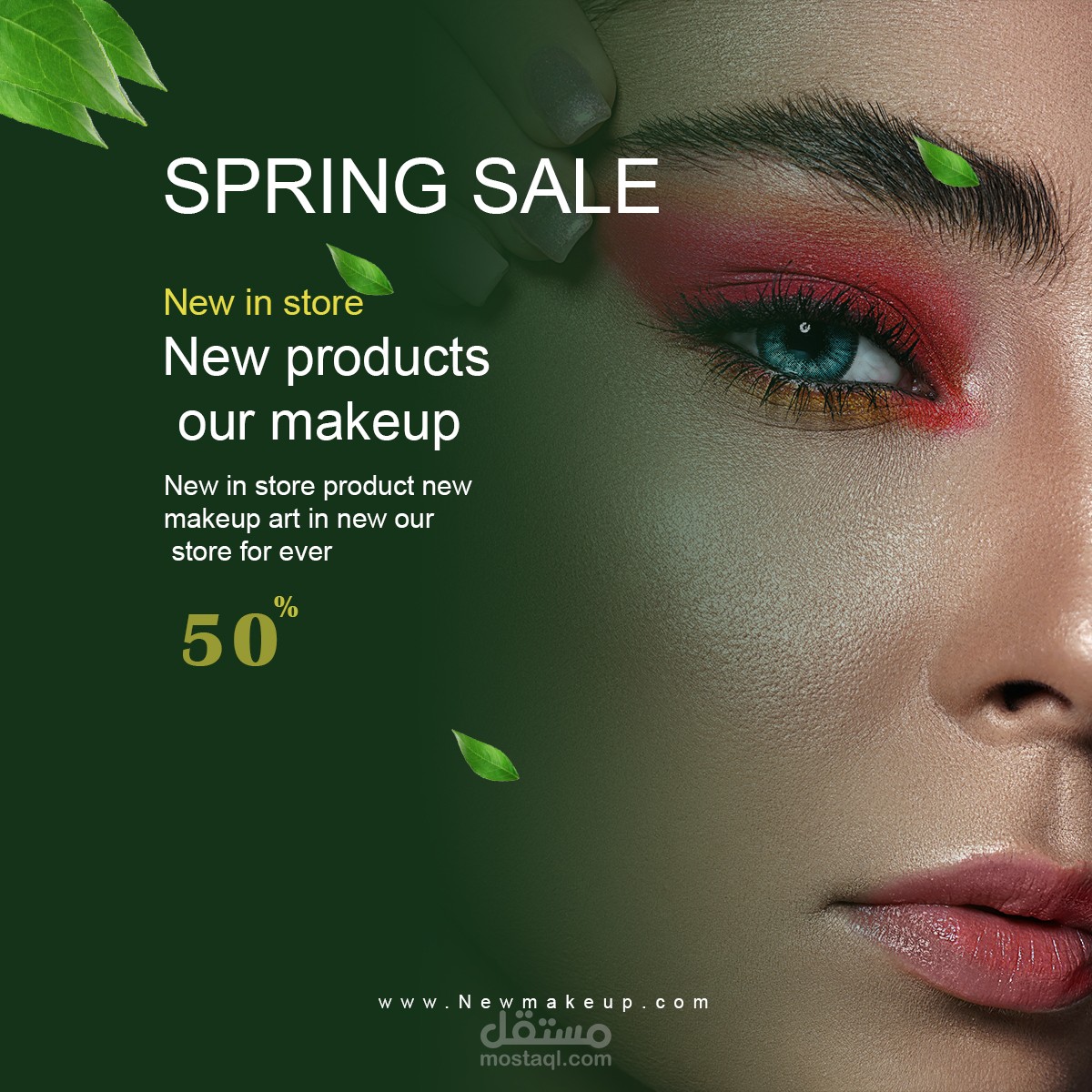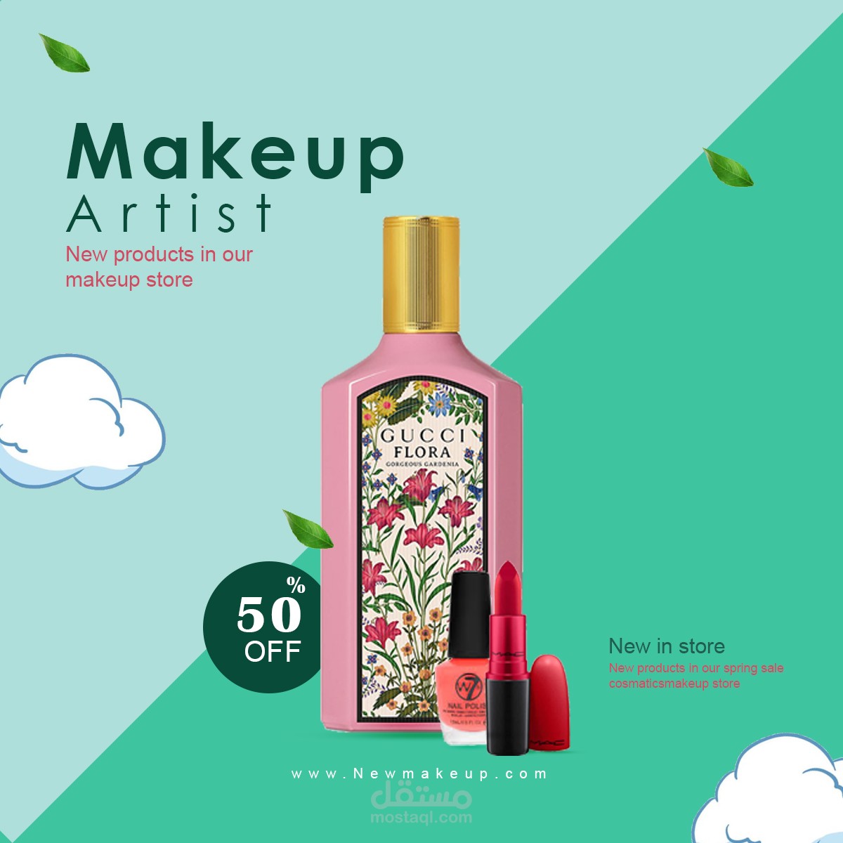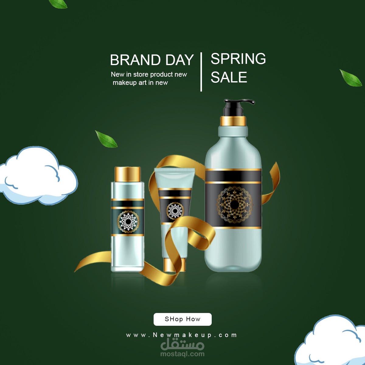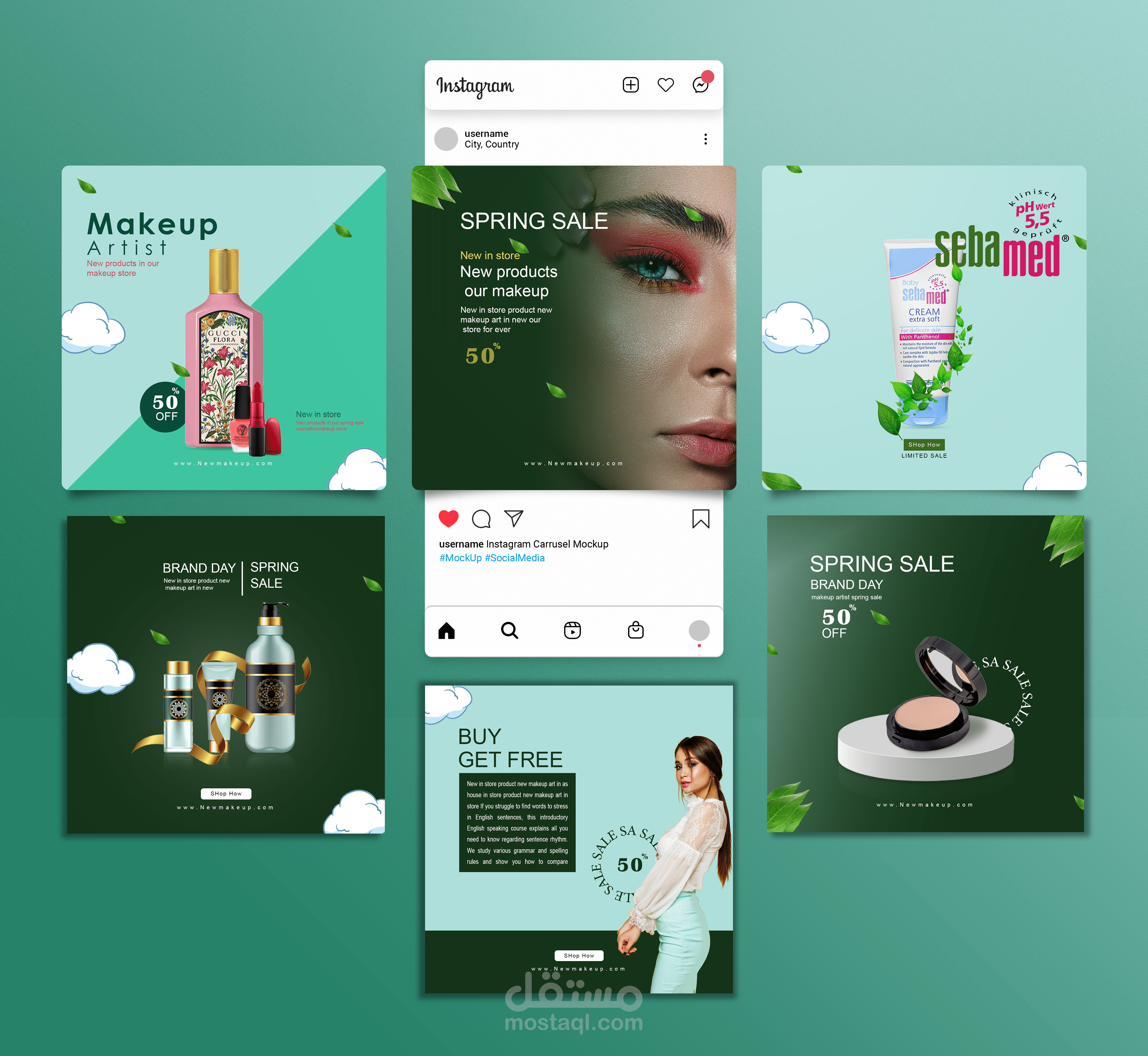 تم تصميم منشورات سوشال ميديا لمجموعة من مستحضرات التجميل بنفس التنسيق واختيار الألوان الأخضر والأزرق للدلالة على التجدد والثقة وان المنتجات تحتوي على مواد طبيعية بنسبة 100%