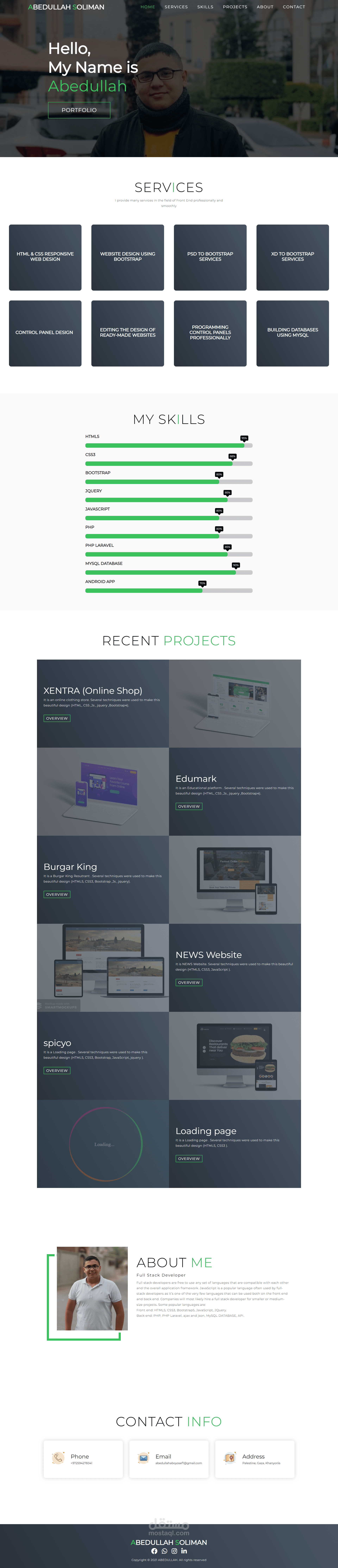 لقد انشأت موقع خاص لي ( Portoflio ) طبعا لقد تم بناء الموقع بطريقة احترافية بدءا من تصميم ال XD انتهاء بالجافا سكربت