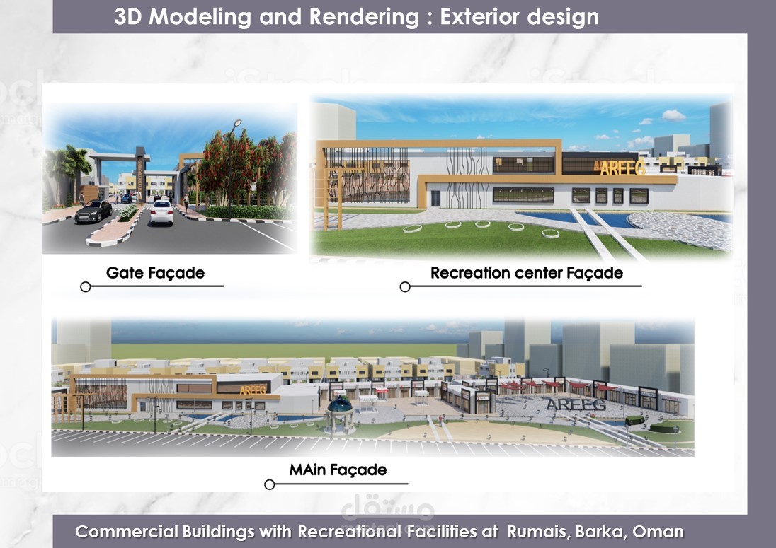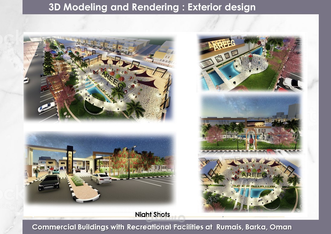 Urban design of the project at Rumais, Barka, Oman + 3D Exterior design + Day and night shoots
