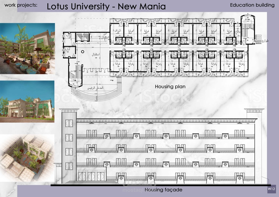 اعداد الرسومات التنفيذية للمشروع جامعة لوتس تحت رعاية مكتب Idea Engineering Consultant, Dr. Mahmoud Morad