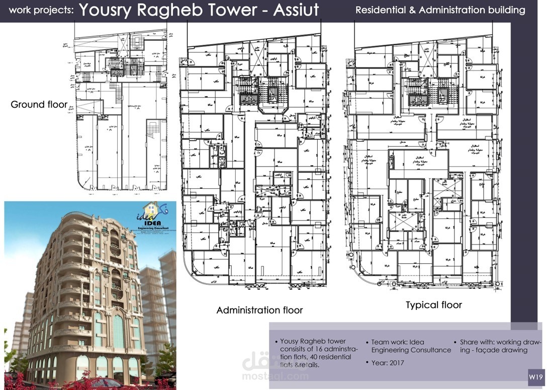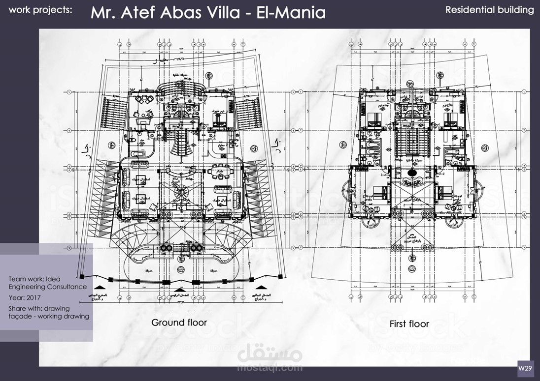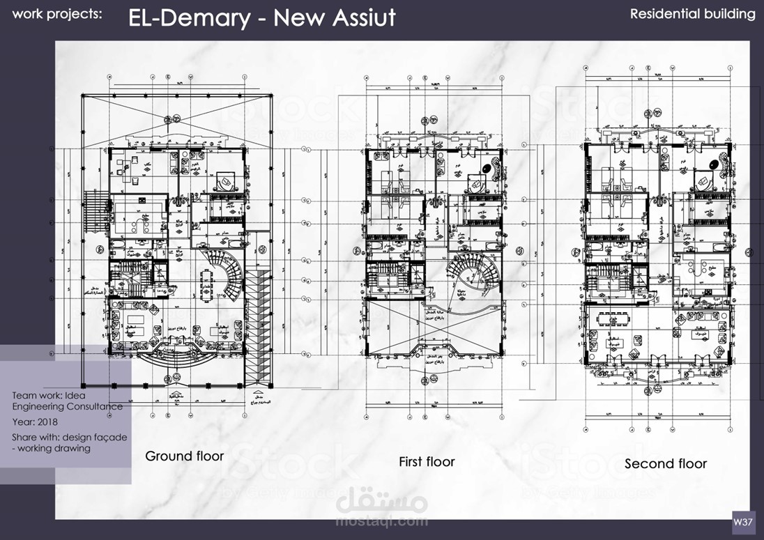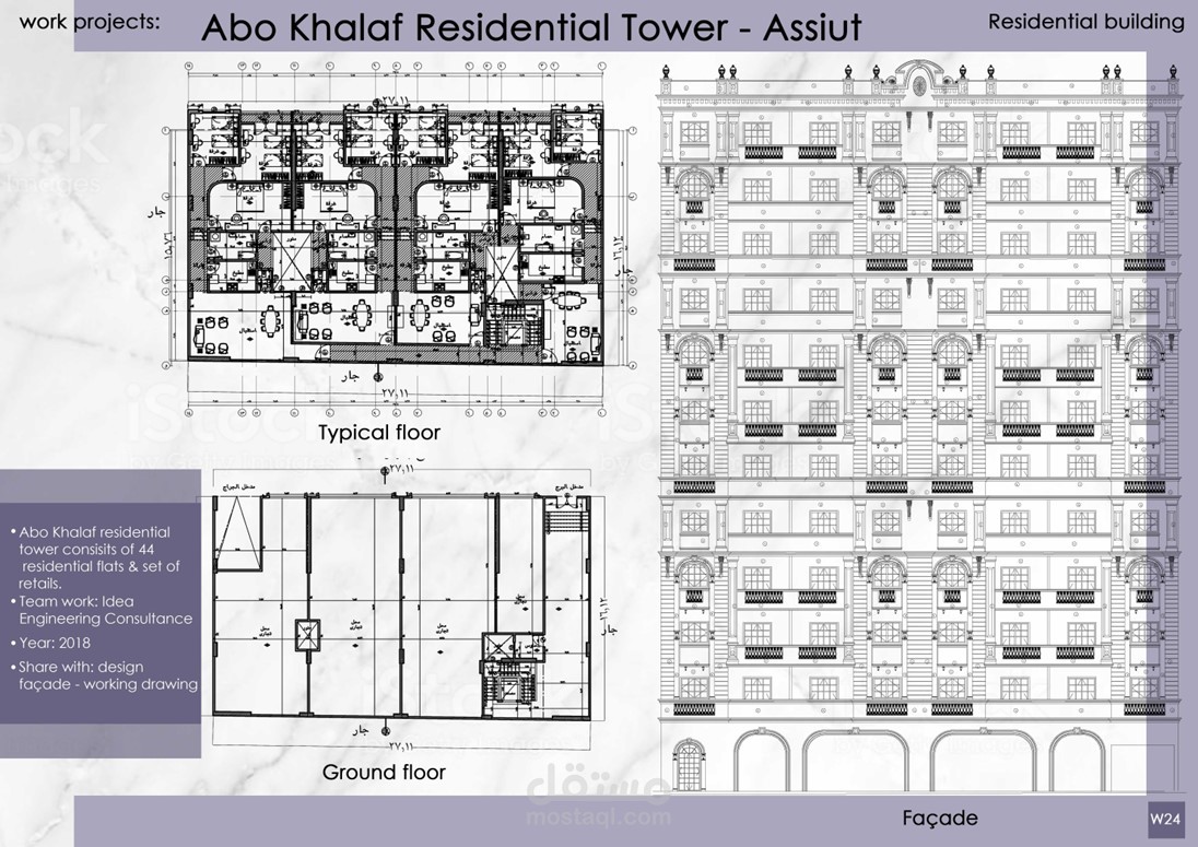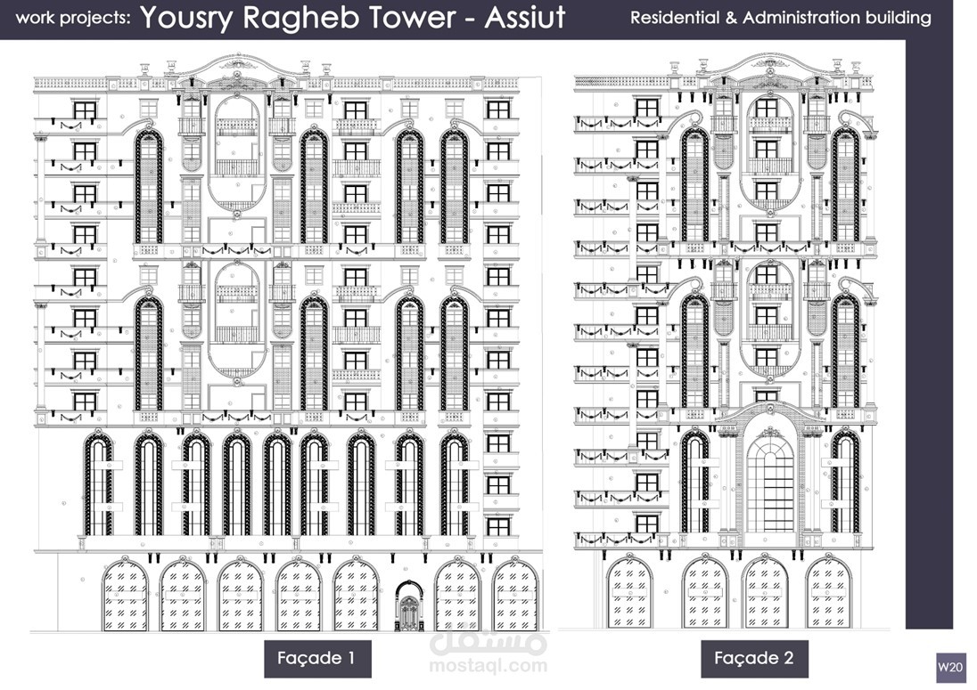 إعداد الرسومات التنفيذية وتصميم الواجهات لمشاريع عمارات و فيلات وأبراج سكانية كلاسيكية بمساحات متنوعة تحت رعاية مكتب Idea Engineering Consultant, Dr. Mahmoud Morad