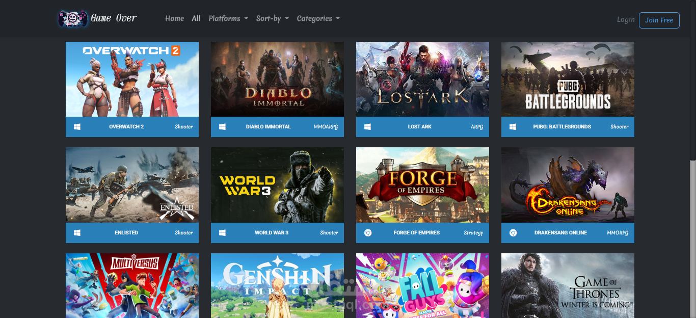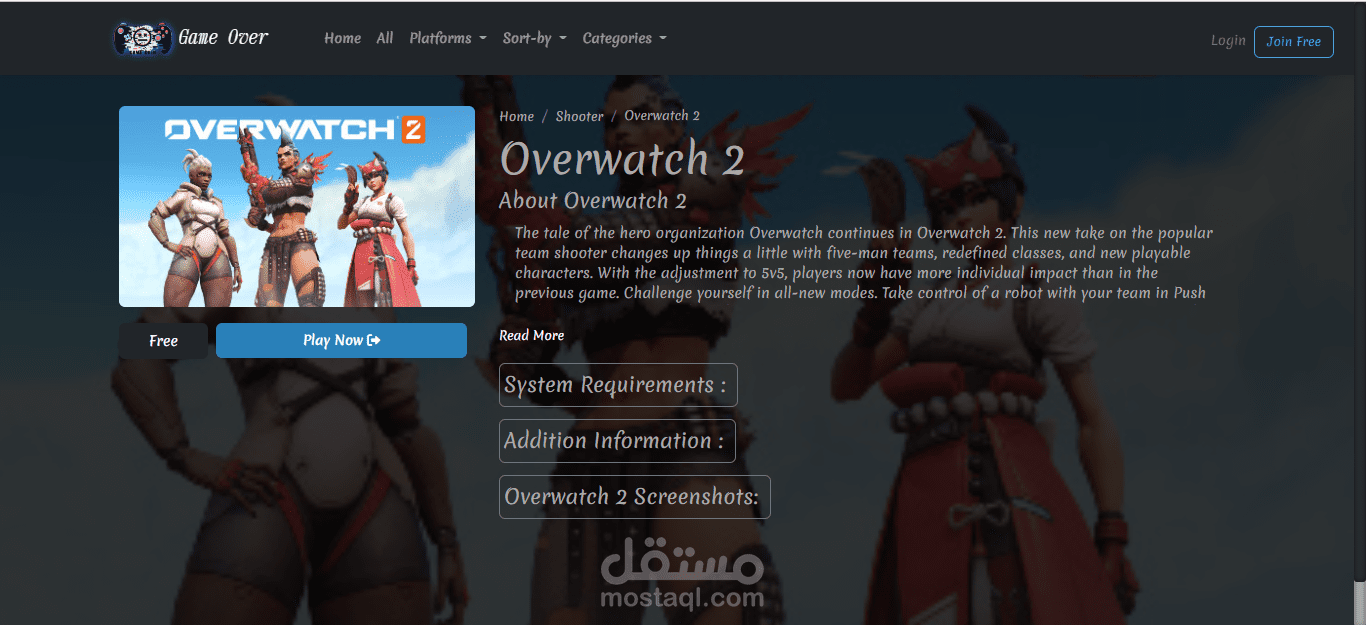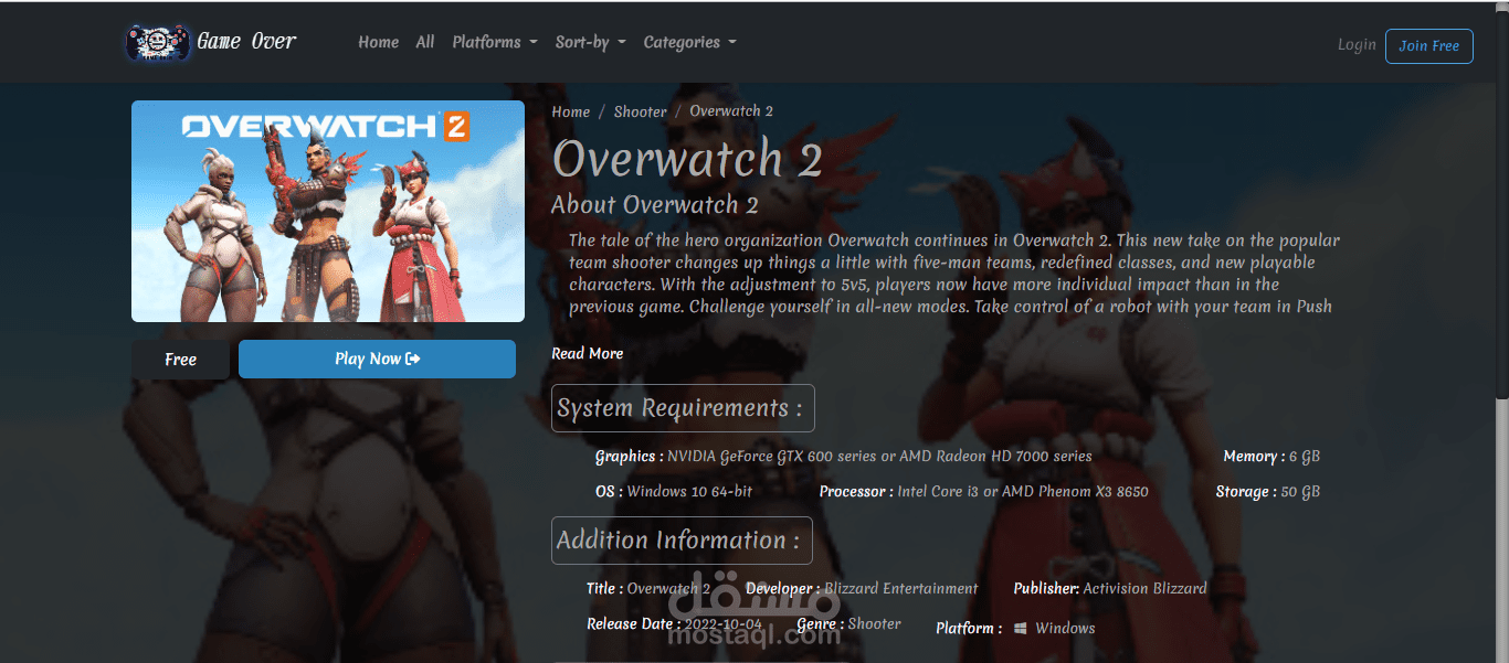 موقع لعرض العاب مجانية بتفاصيلها وانواعها من خلال Rapid API