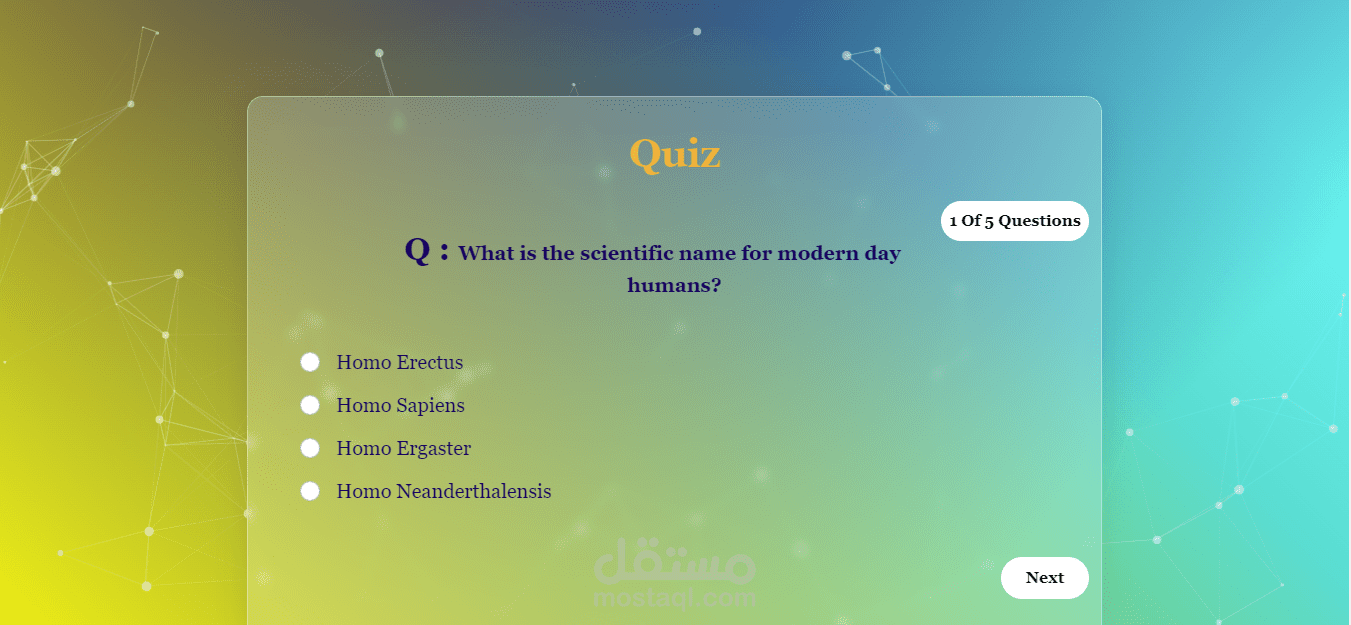 Quiz Application using HTML , CSS ,Bootstrap , JavaScript and jQuery