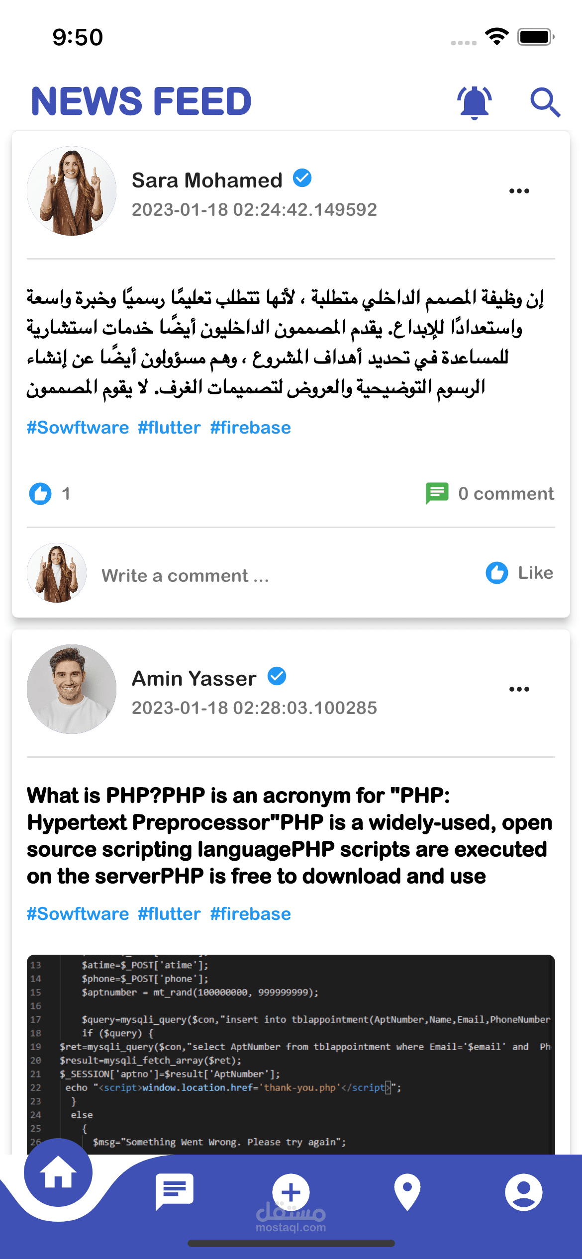 تطبيق يحاكي منصة الكترونية للتوصل الاجتماعي
