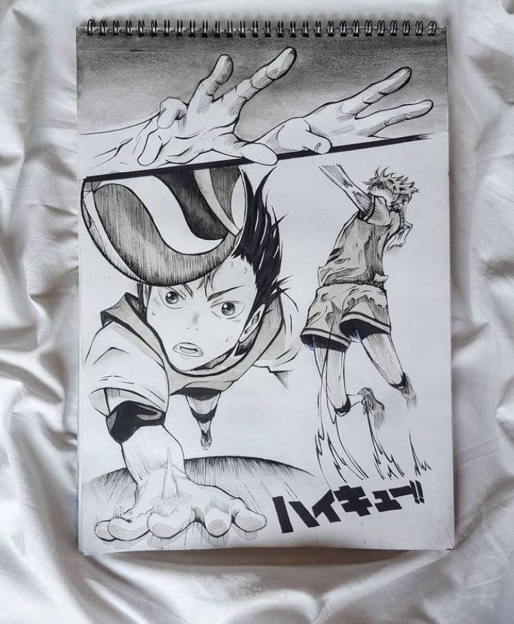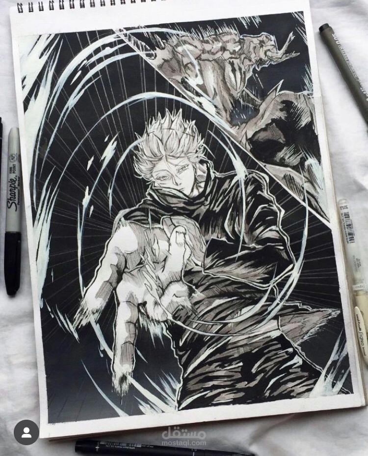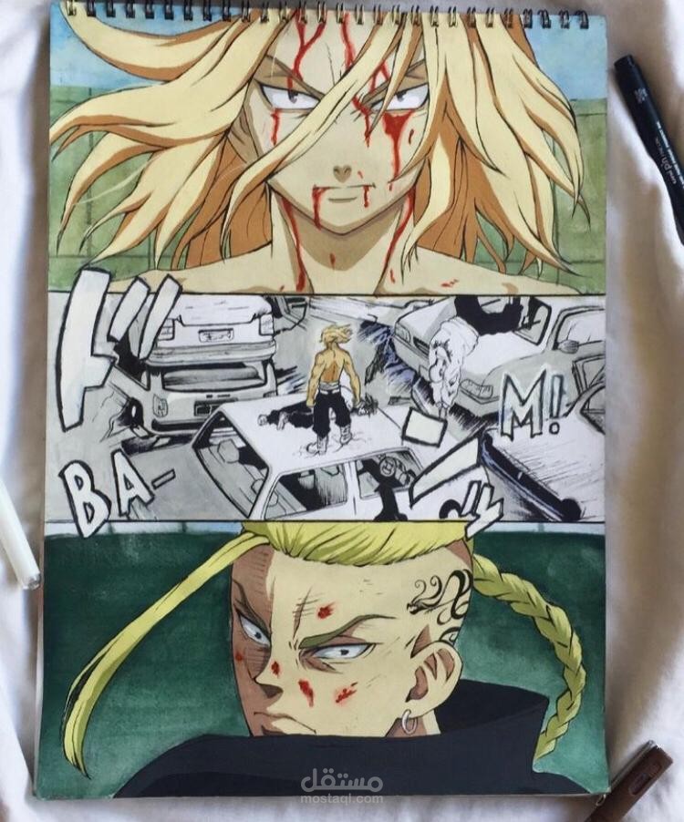 بعض النماذج لشخصيات انيمي مرسومة على الورق قبل تنفيذها على illustrator