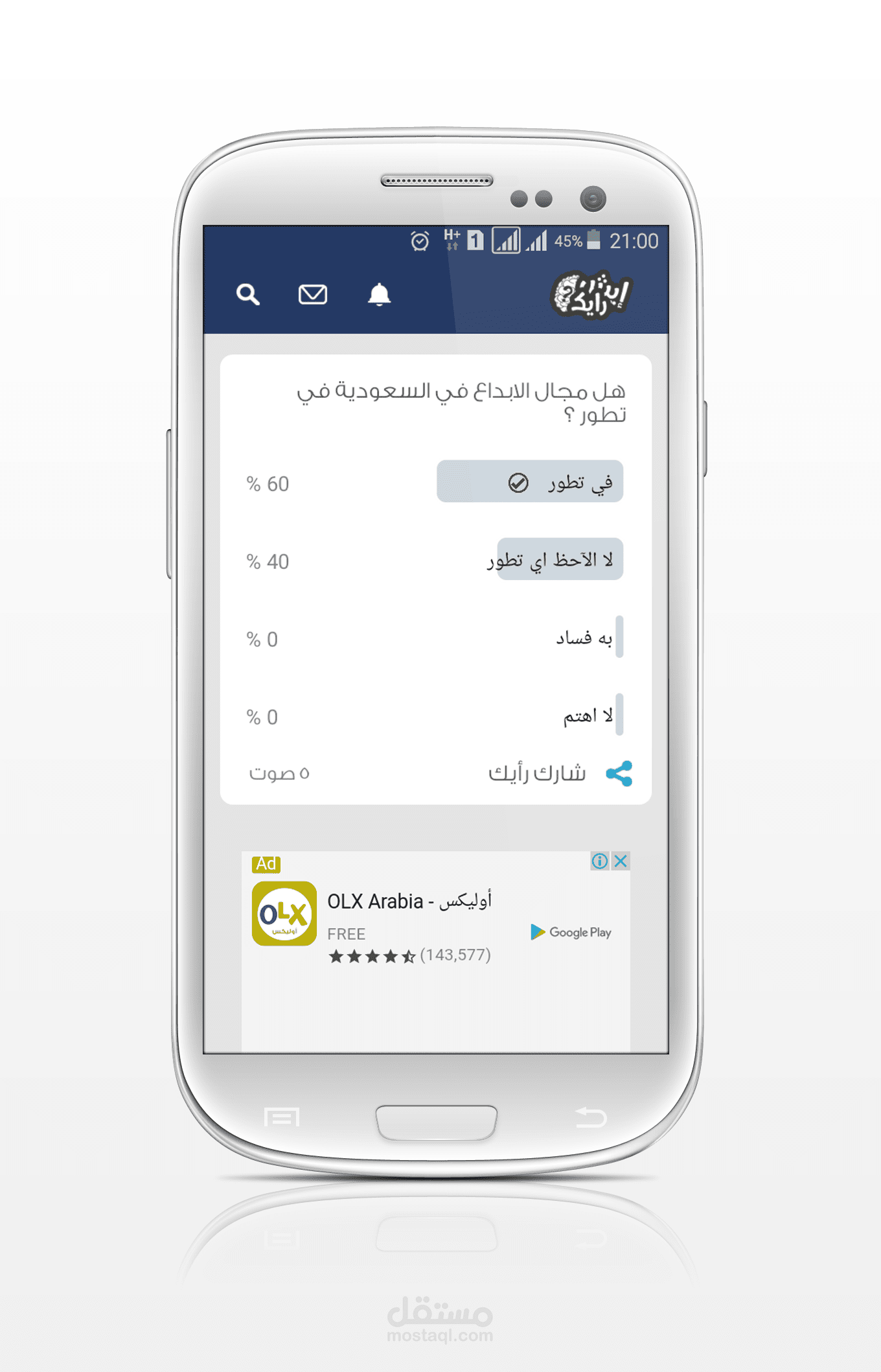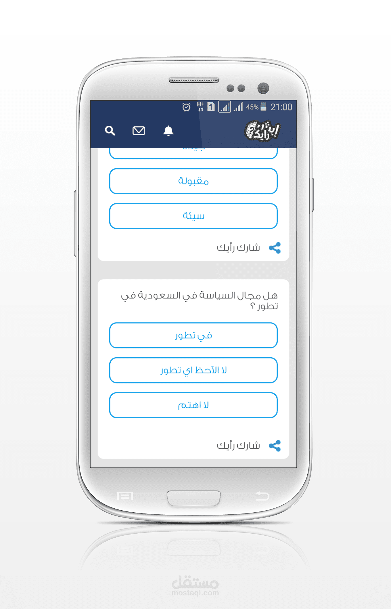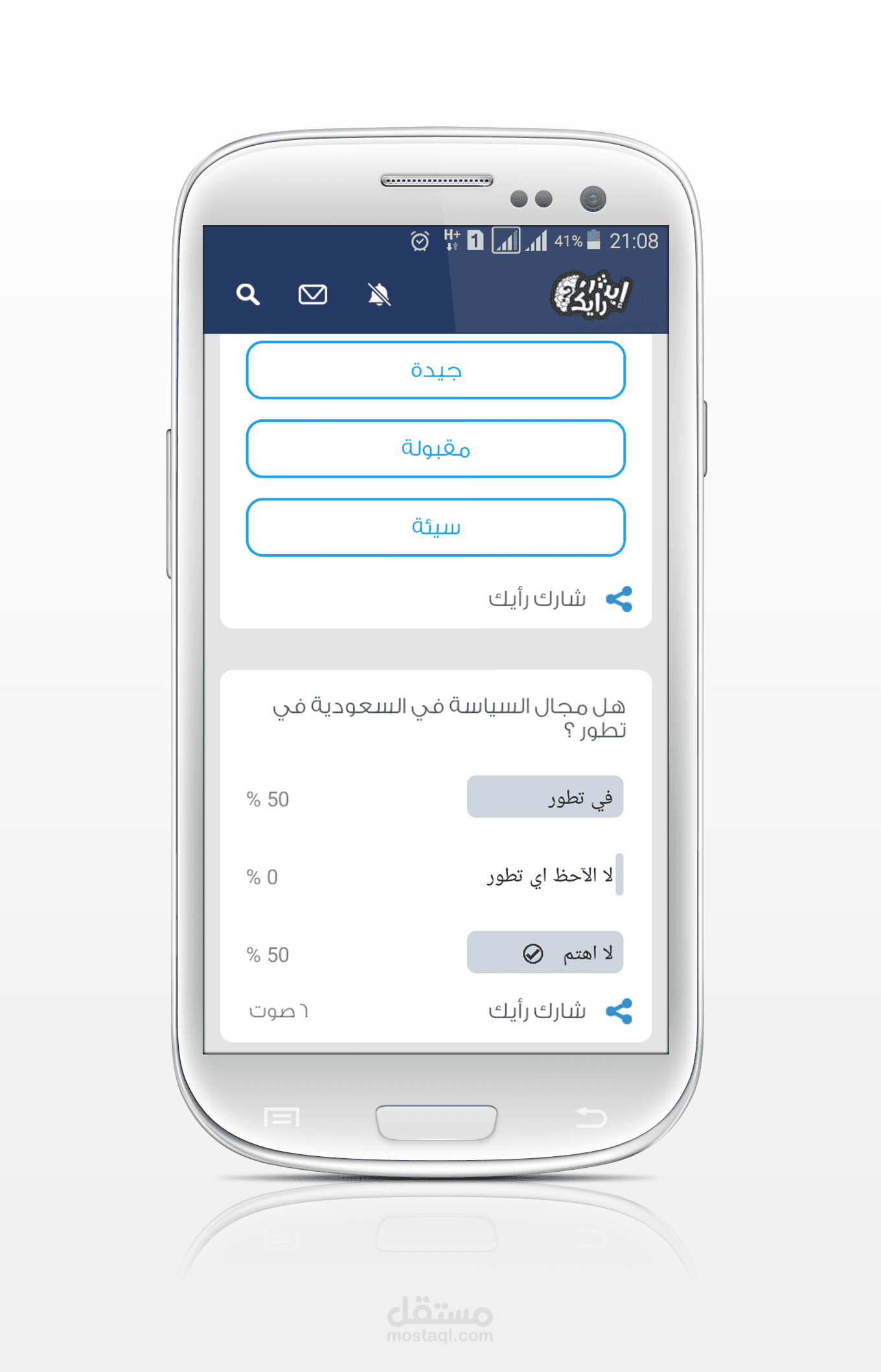 تطبيق ايش رايك هوا تطبيق مميز للتعرف علي اراء مستخدمينا في بعض المواضيع السياسية والرياضية والاجتماعية وغيرها من المجالات
