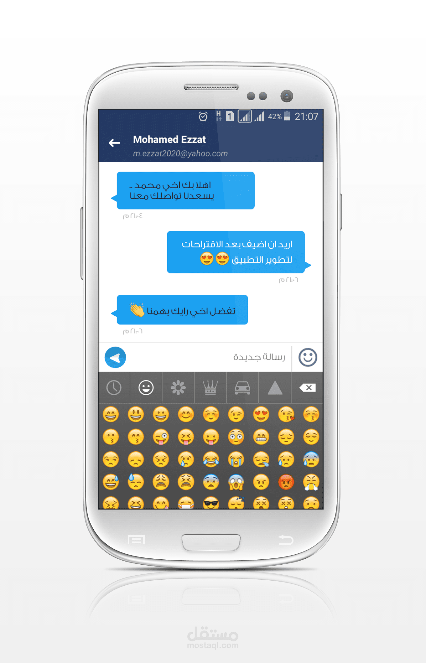التطبيق به شات بين الادارة والمستخدمين للتناقش في المواضيع المختلفه وايضا للعمل علي تحسين التطبيق .