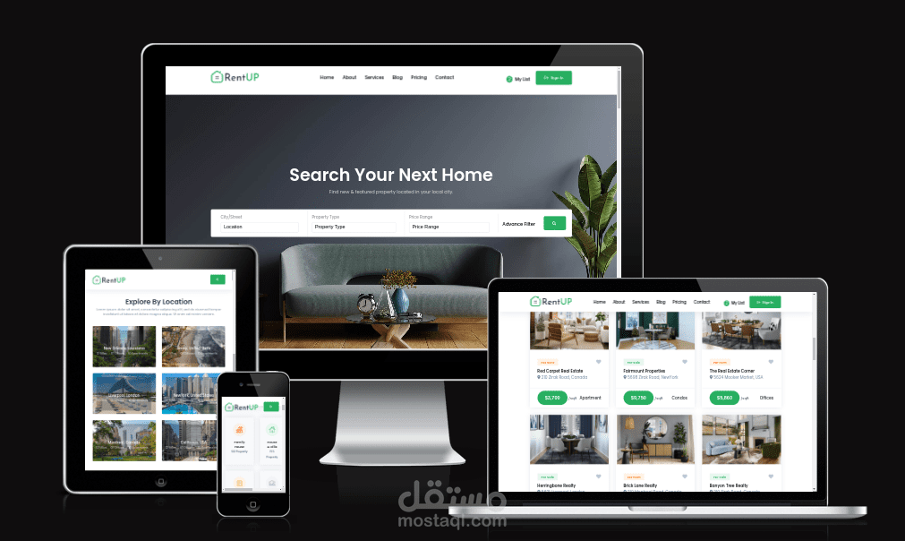 Modern responsive UI/UX website using React.js & CSS(rent real estate)