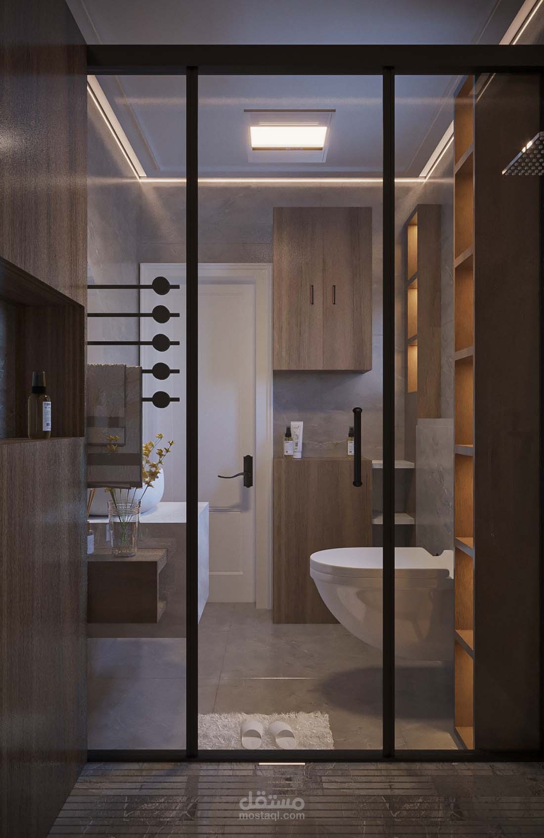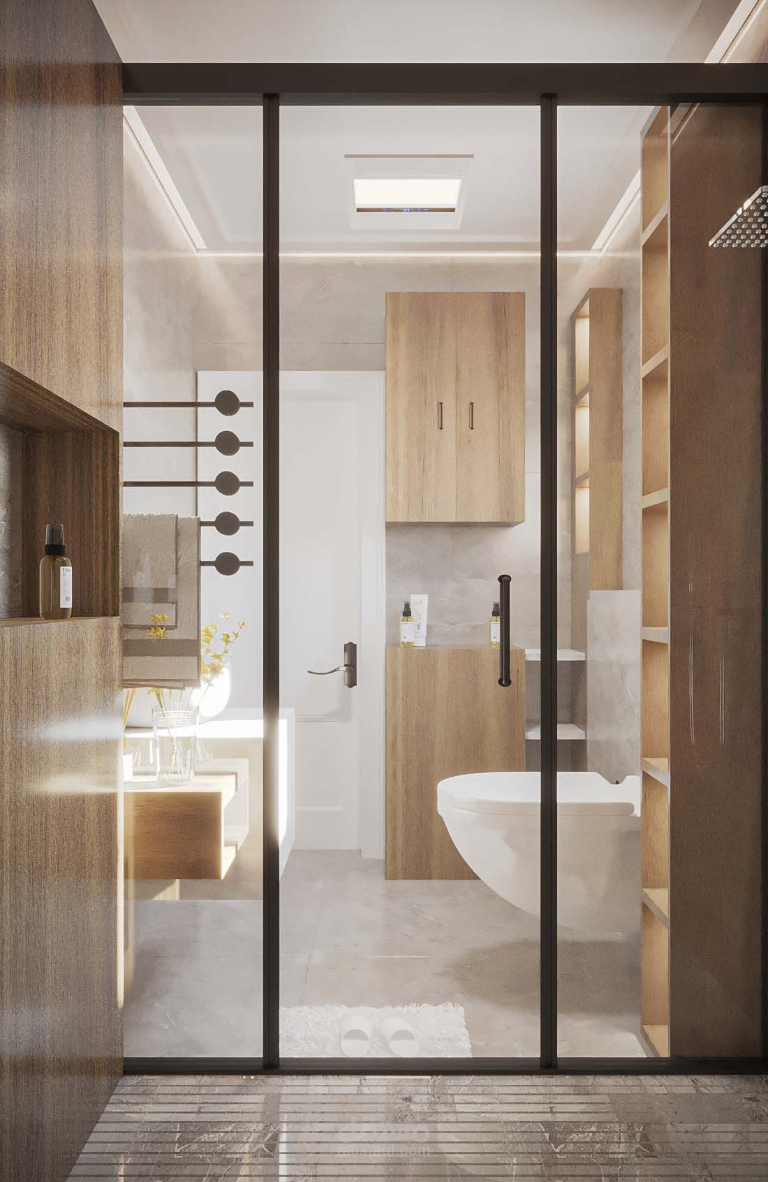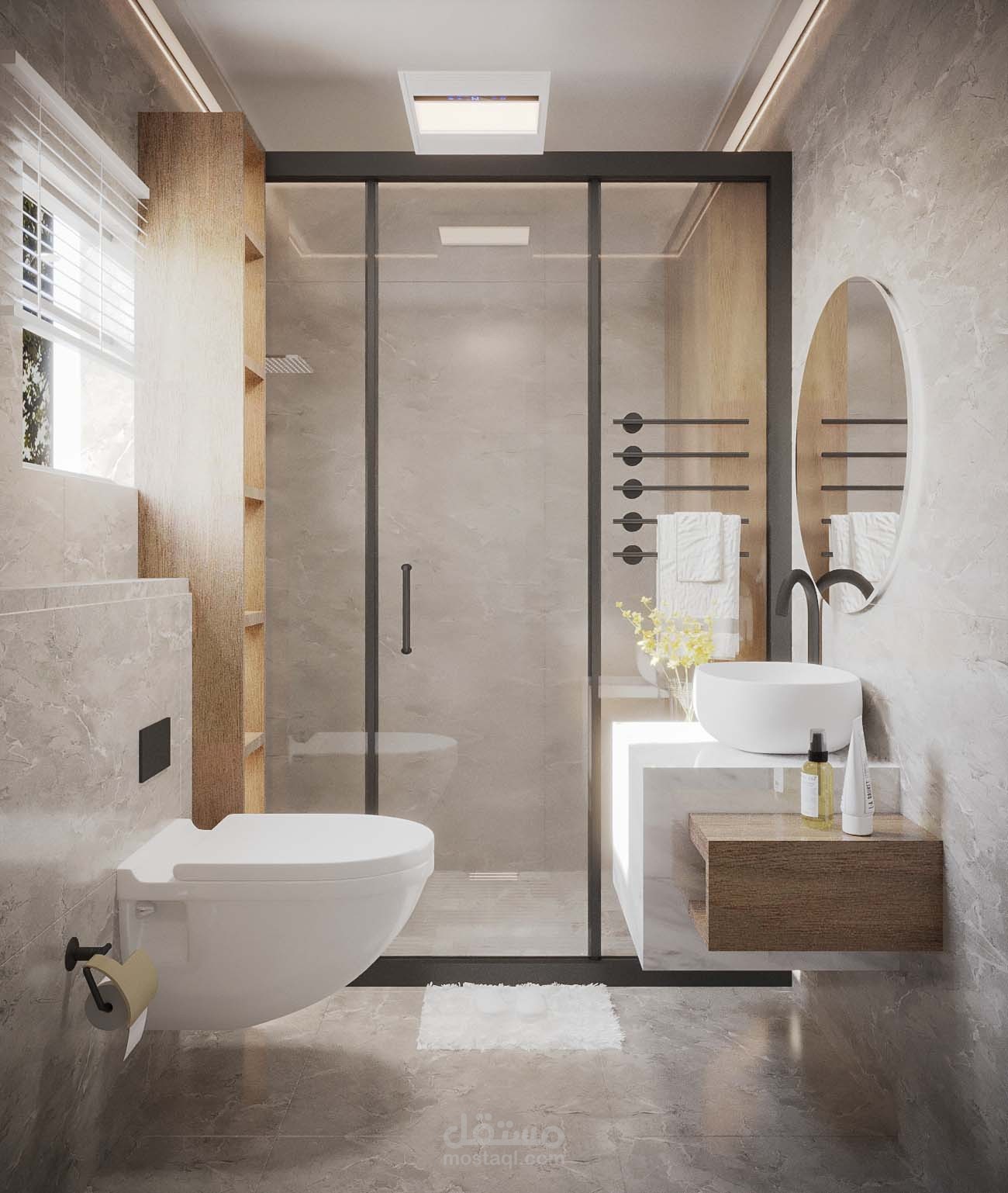 تصميم حمام فاخر باستخدام الوان دافئة
