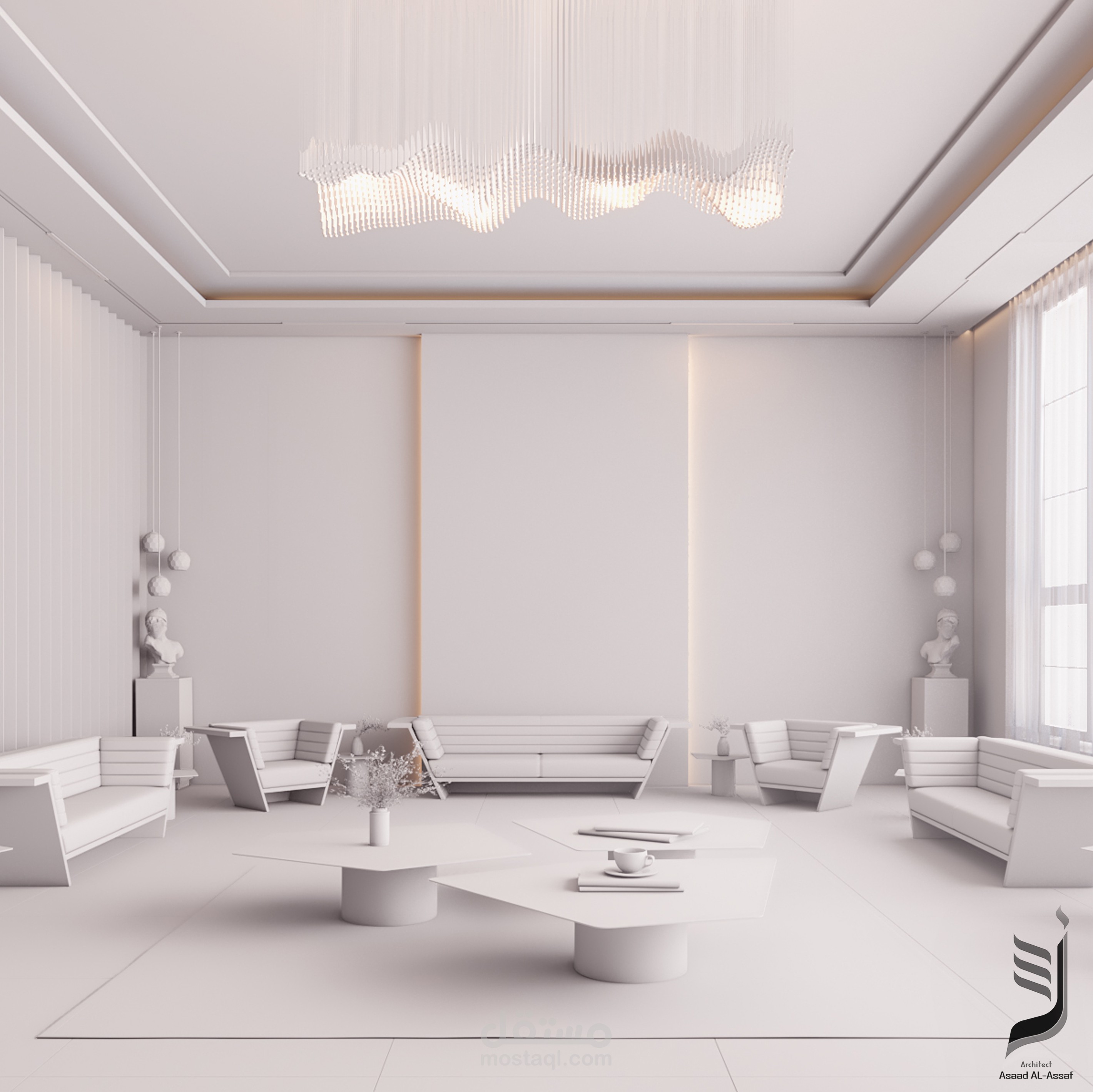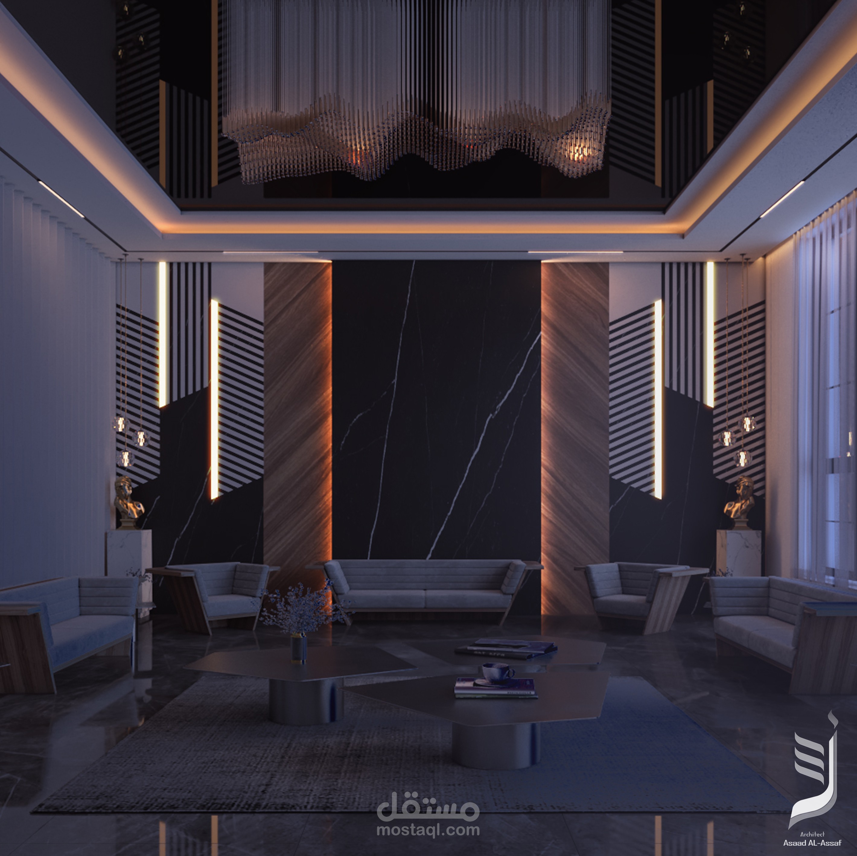 تصميم مجلس رجال فاخر يعكس الفخامة والهيبة ضمن طابع معماري حديث يناسب نمط الحياة في الخليج.
