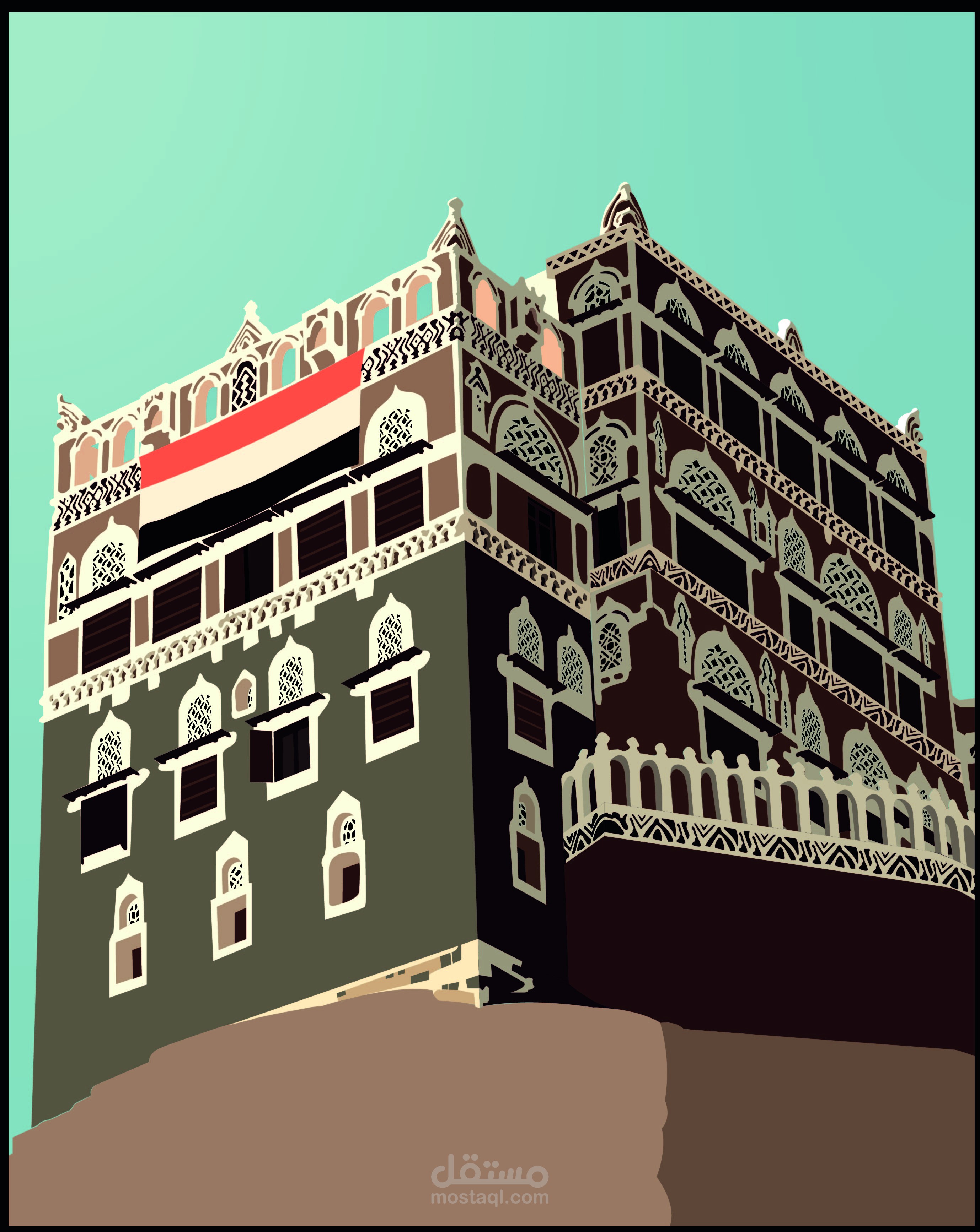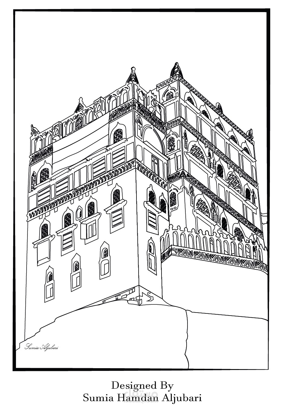 رسم بناية تسمى بدار الحجر في اليمن