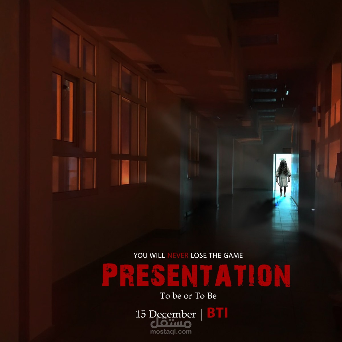 تصميم احترافي لبوستر فيلم رعب ووضعه في موك اب وذلك باستخدام برنامج الفوتوشوب .