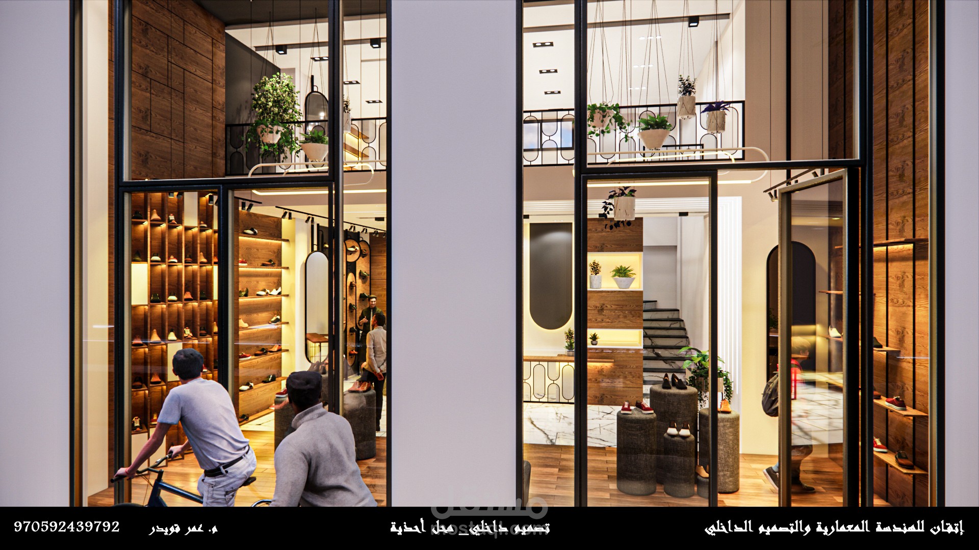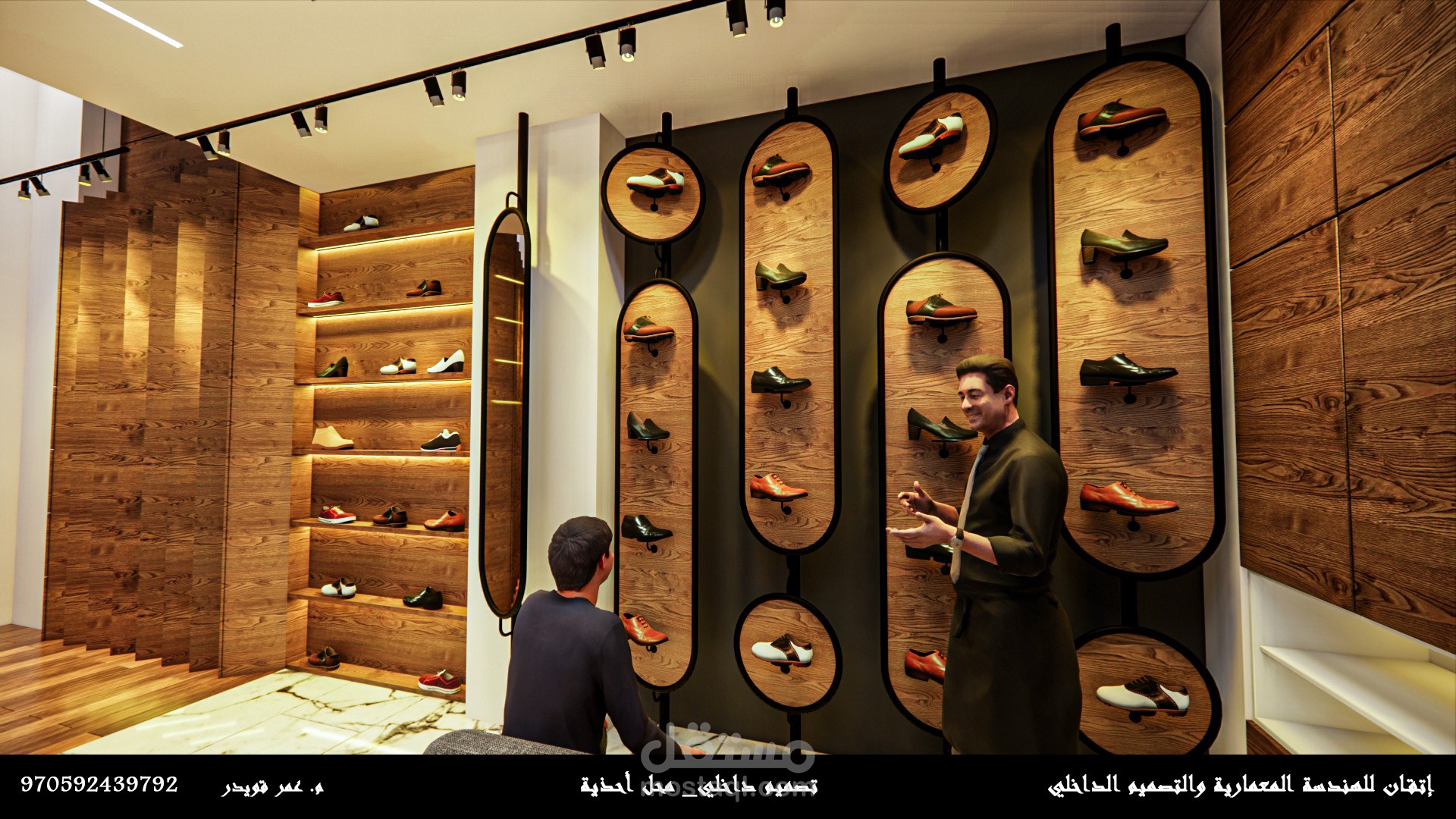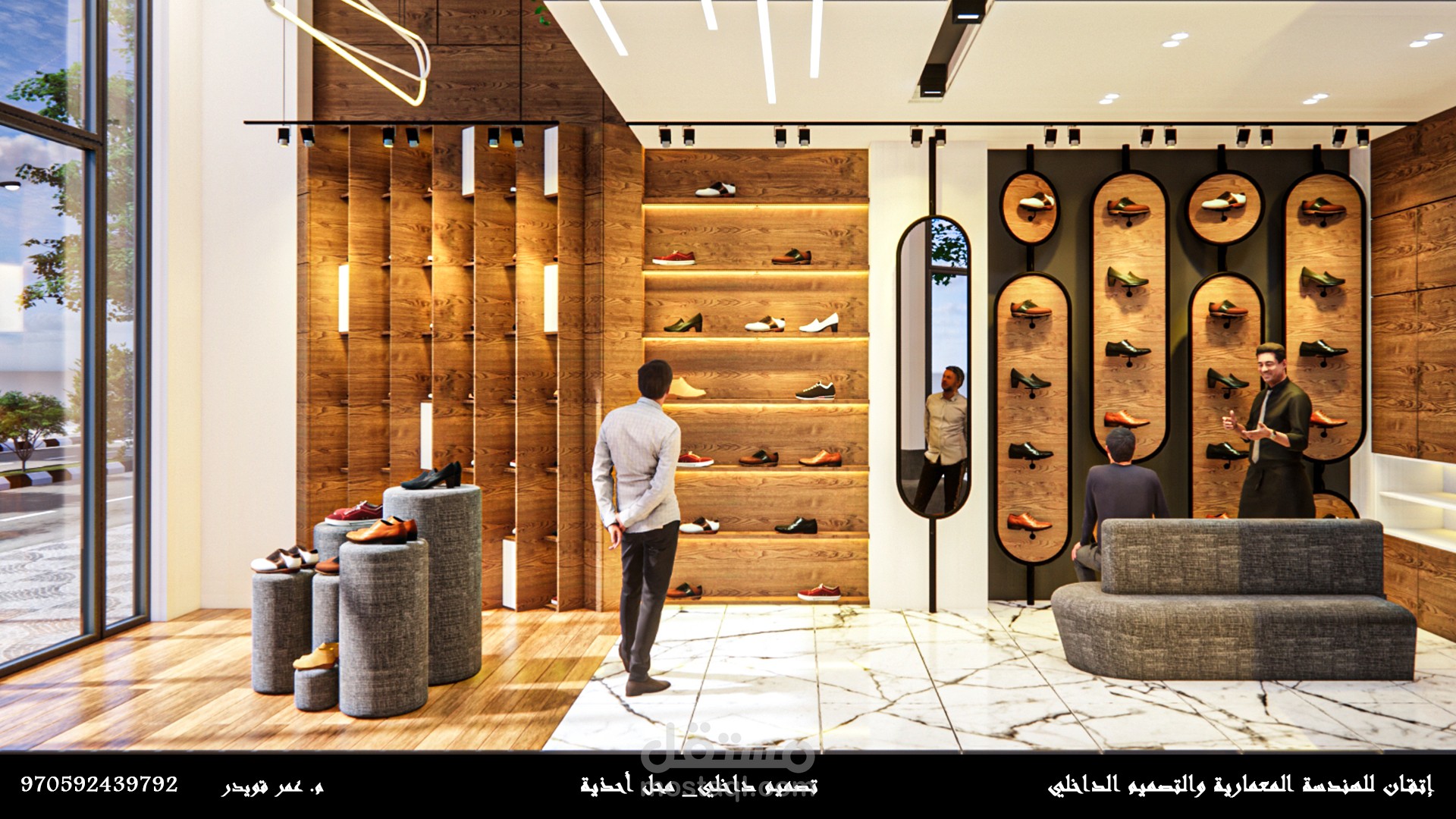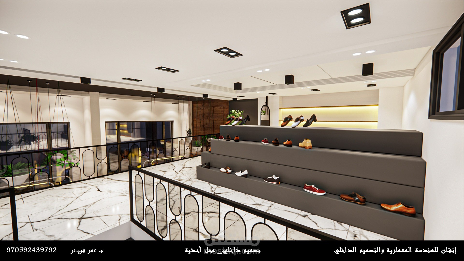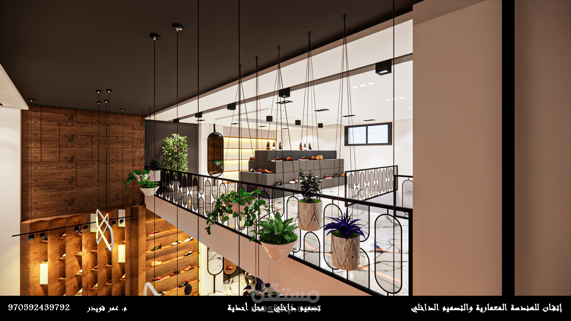 تصميم داخلي محل أحذية مكون من طابق أرضي وسدة.