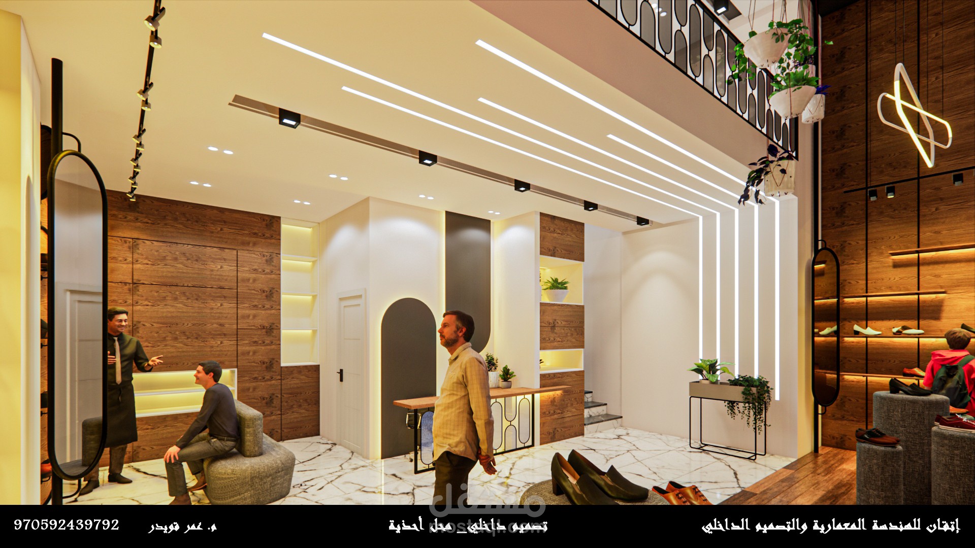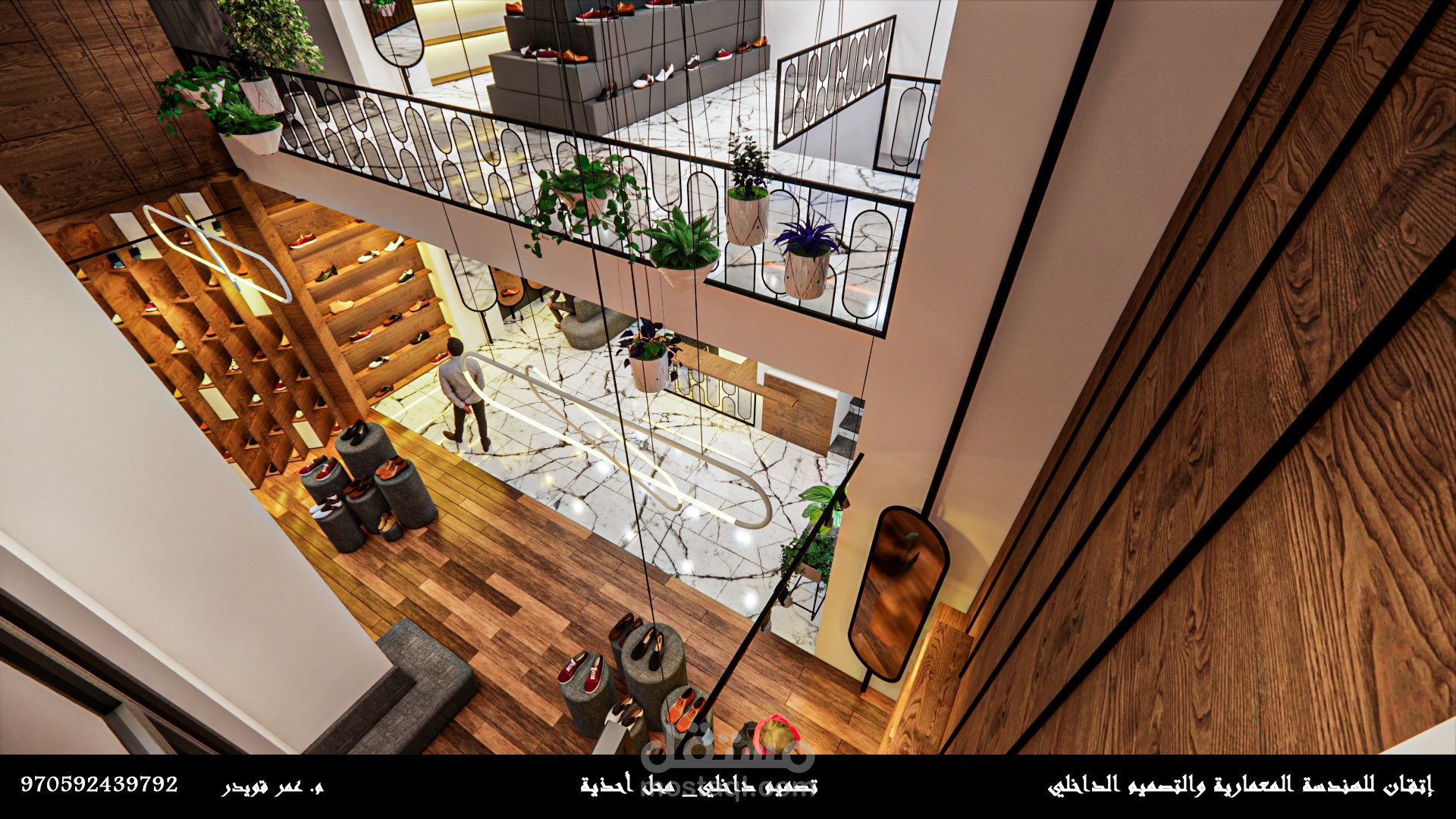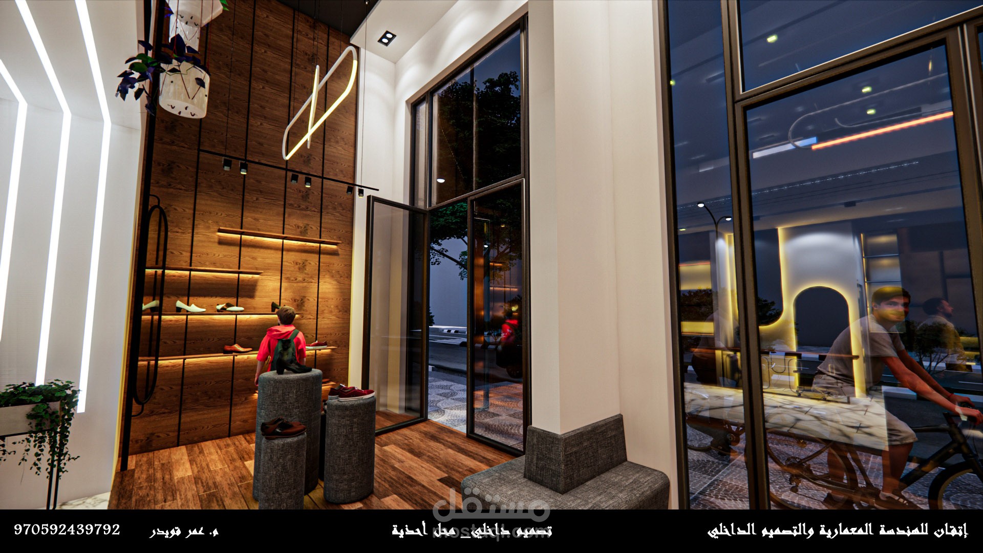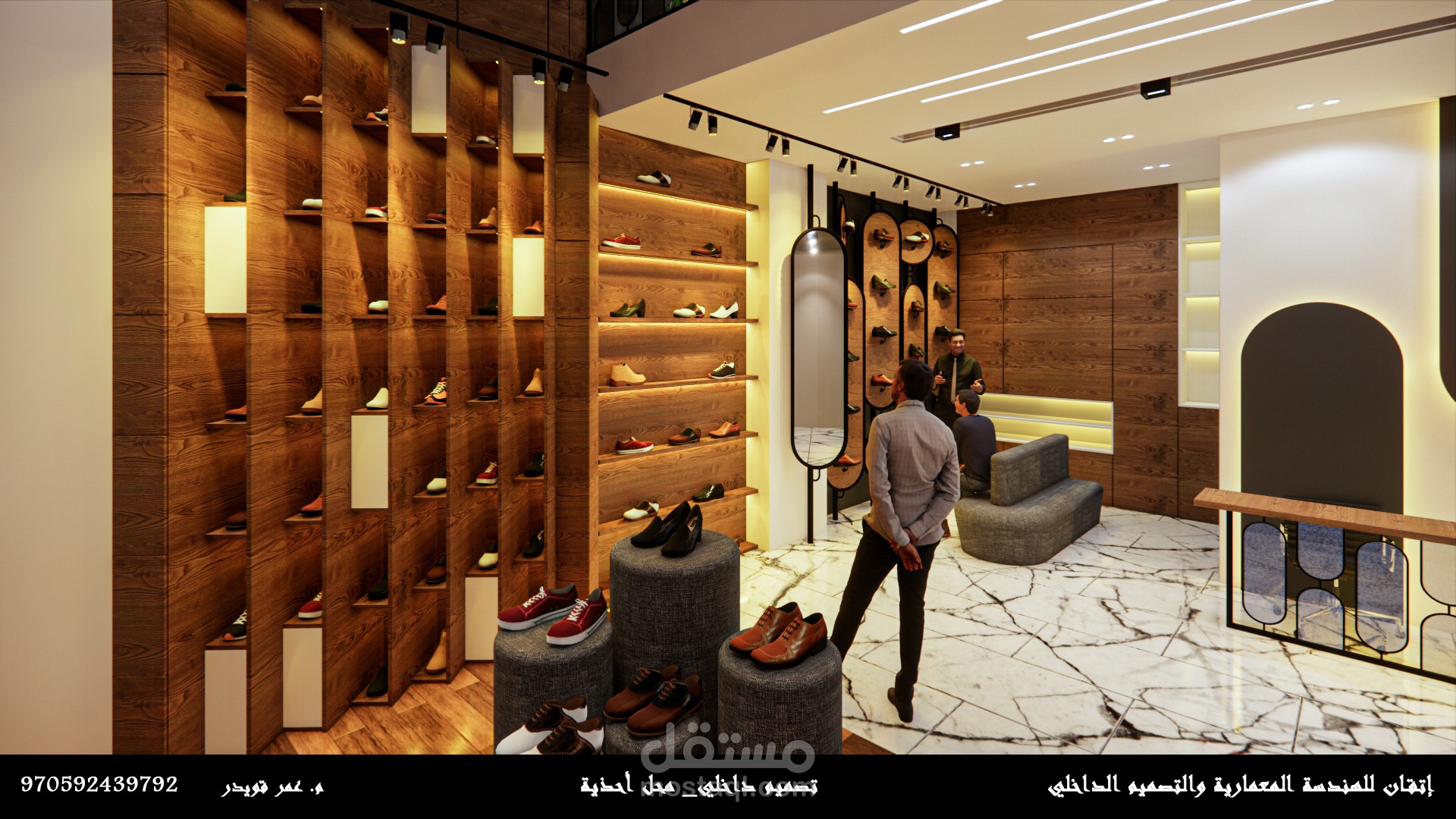 تصميم داخلي محل أحذية مكون من طابق أرضي وسدة.