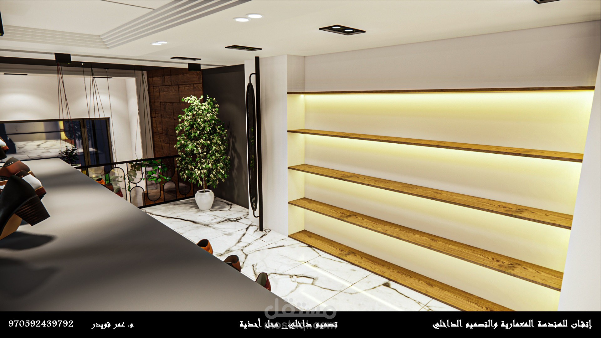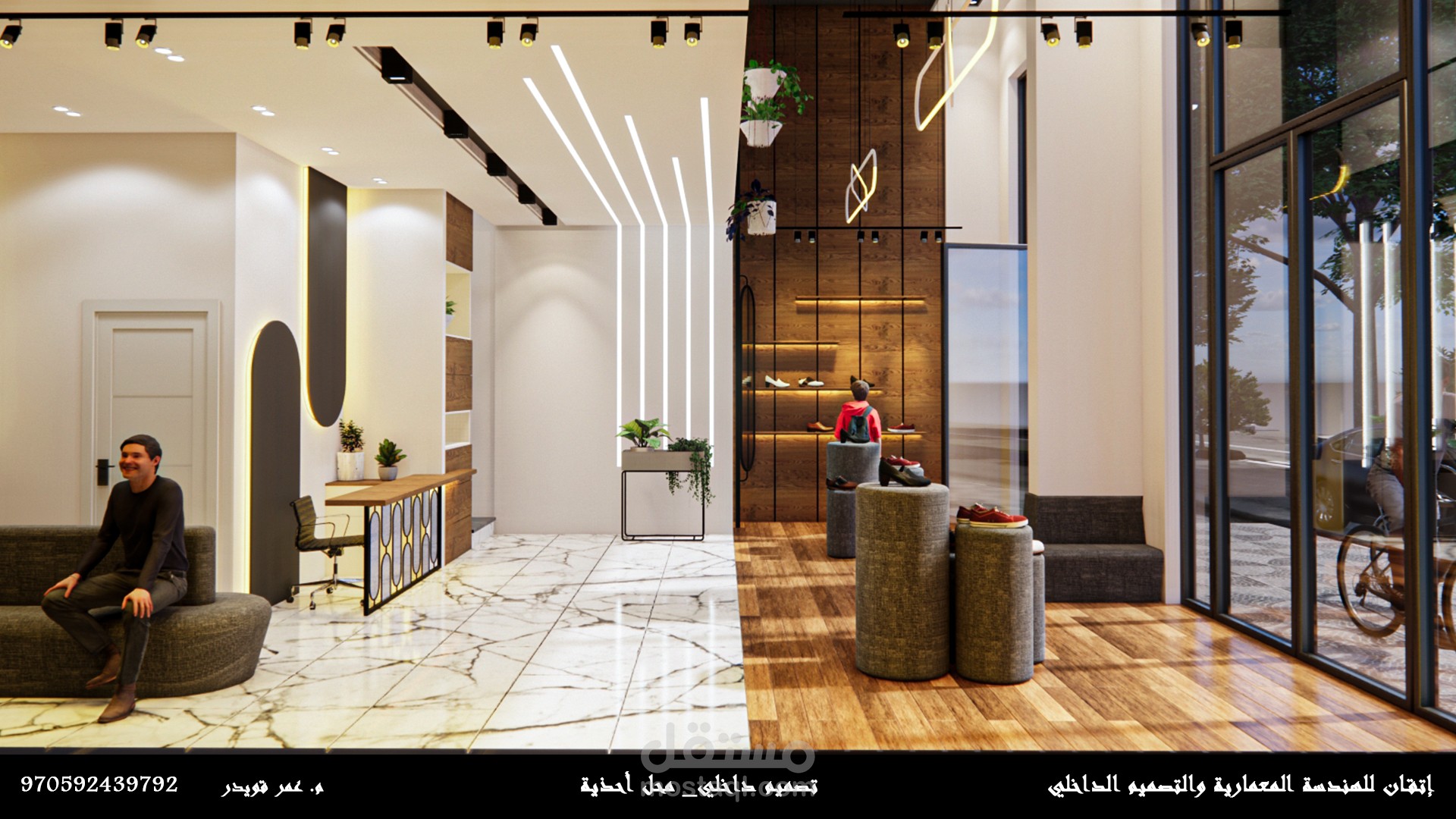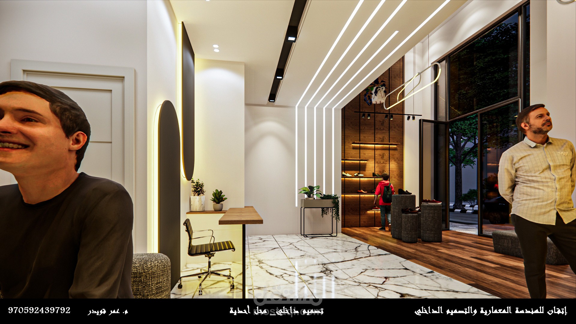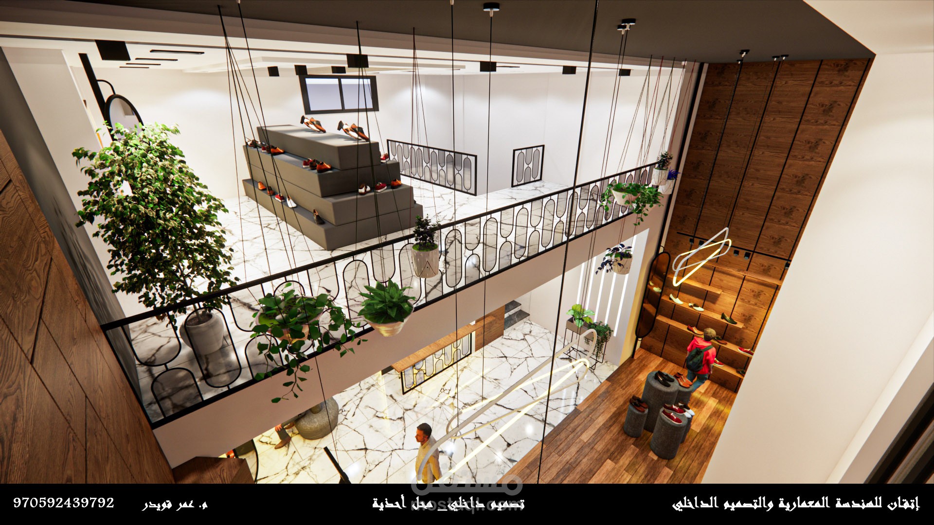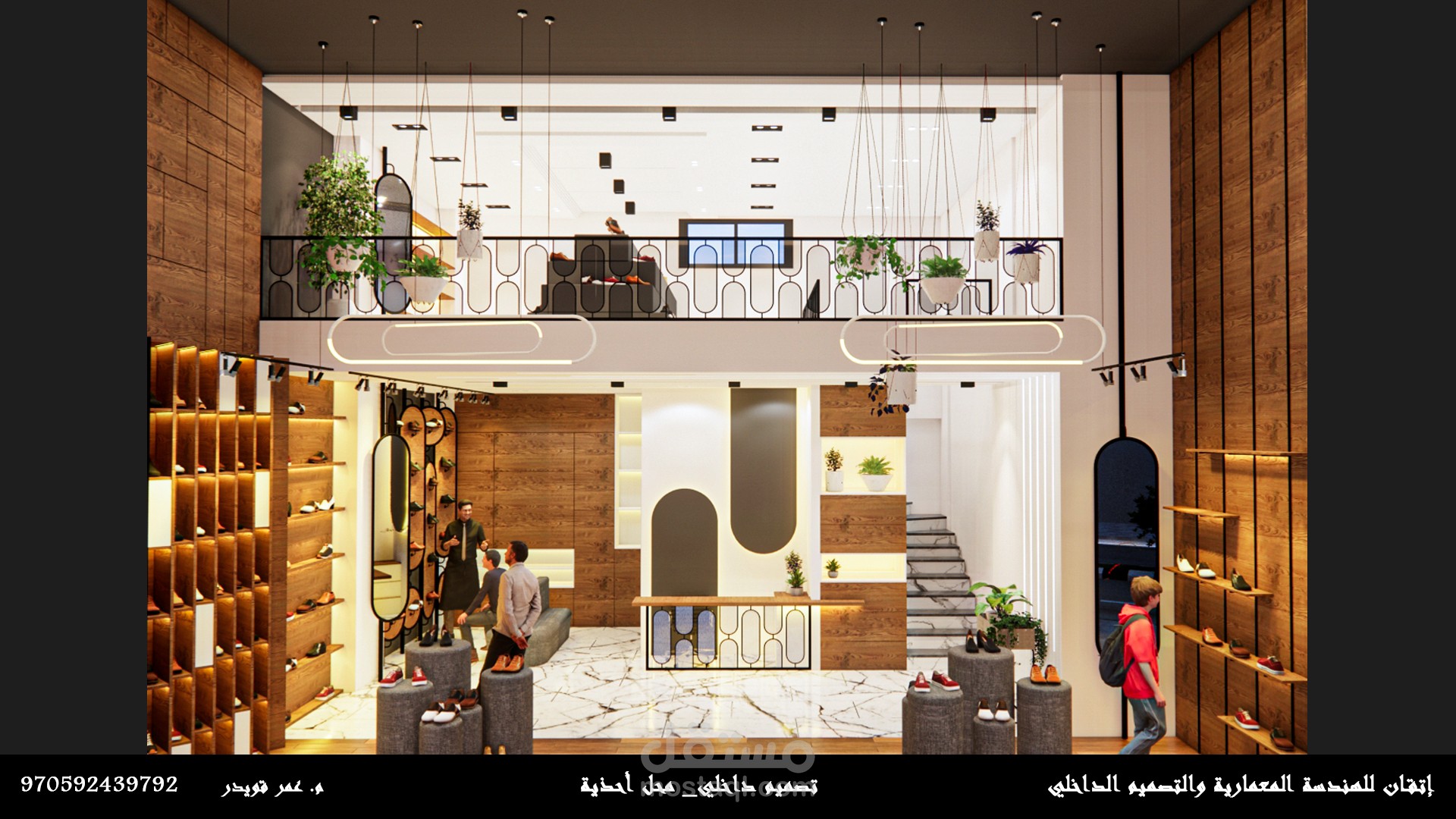 تصميم داخلي محل أحذية مكون من طابق أرضي وسدة.