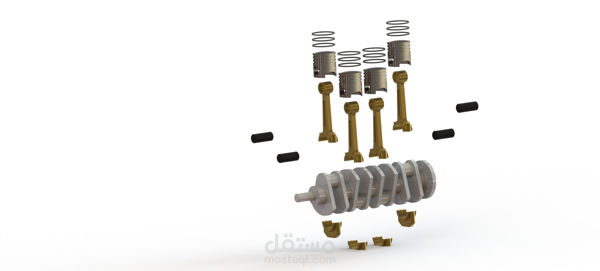 design four cylinder engine and its parts(piston , cranckshaft , pin , connecting rod , connecting rod cap , piston ring) and make motion vedio