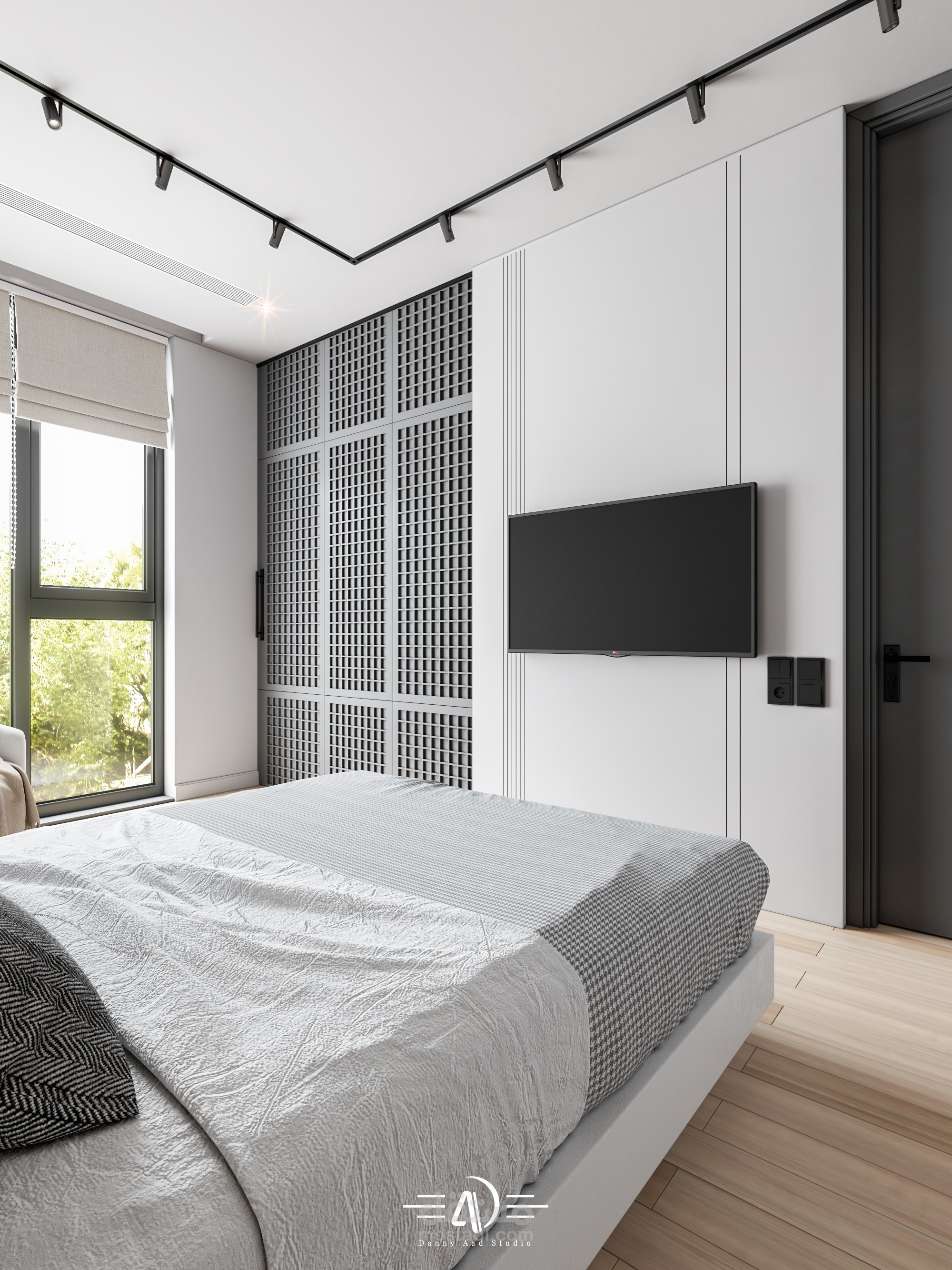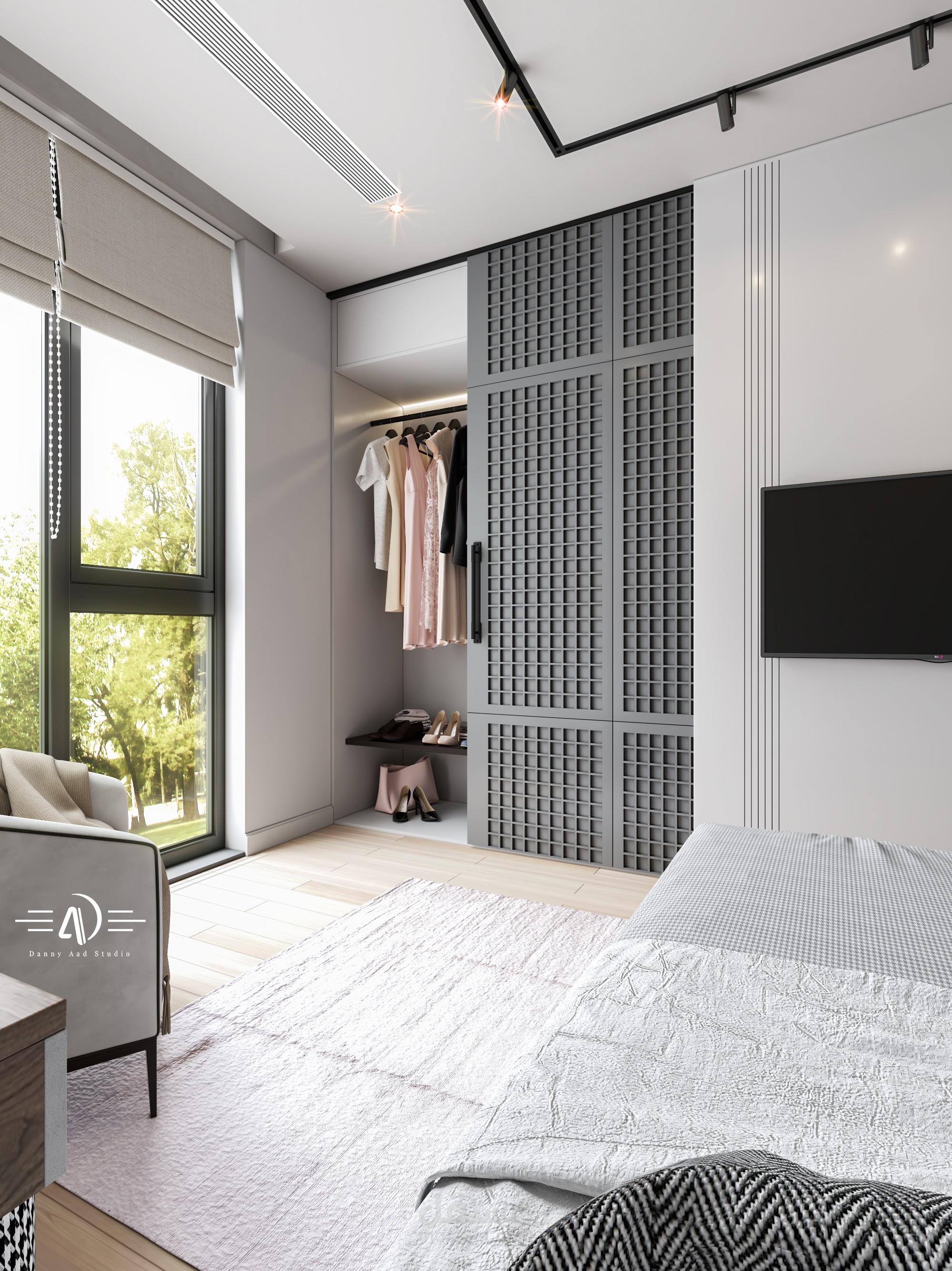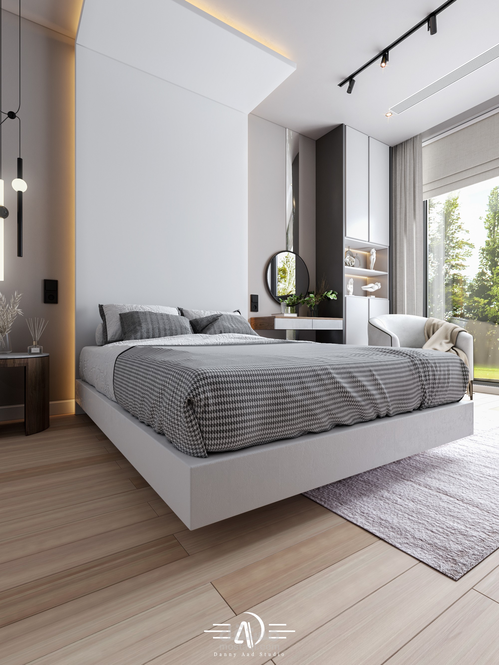 interior design for bedroom in villa in Istanbul modern style with simple and creative design which Meets the client's needs with earthy colors according to his wish.