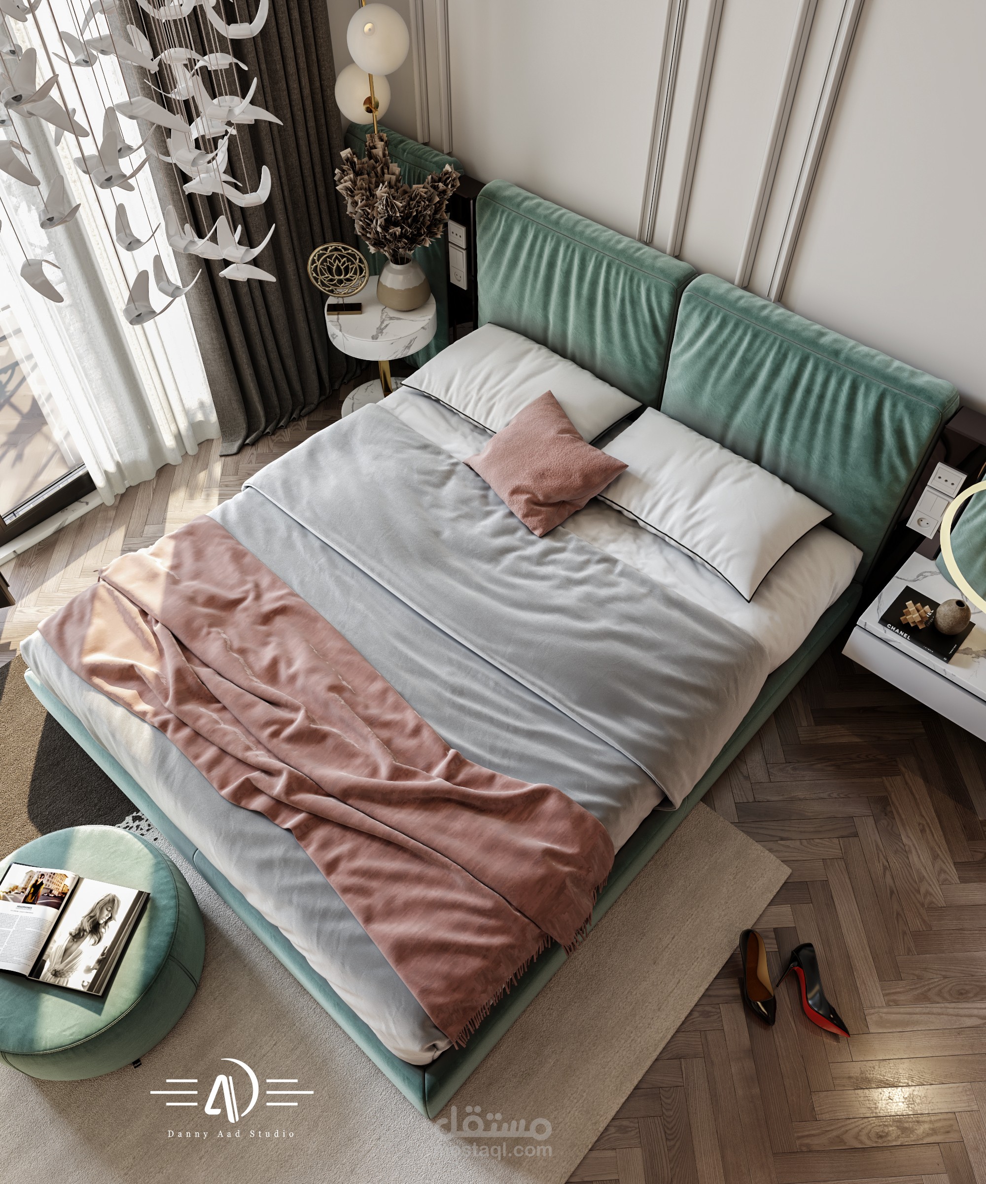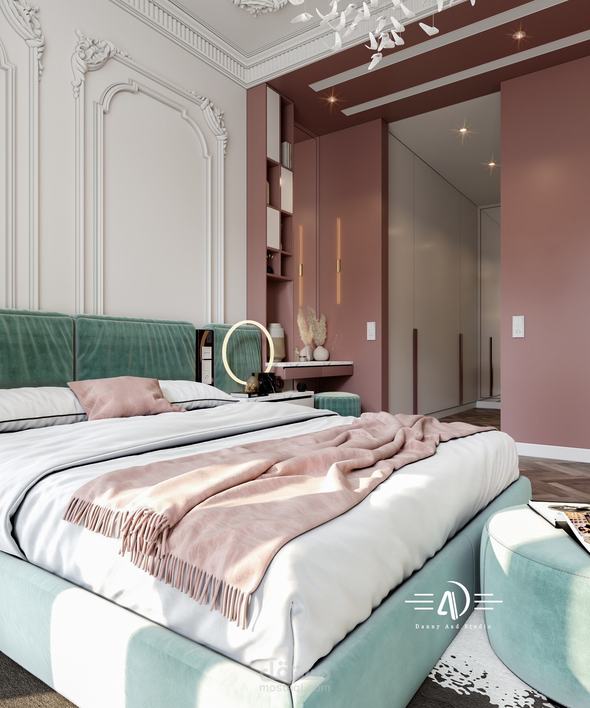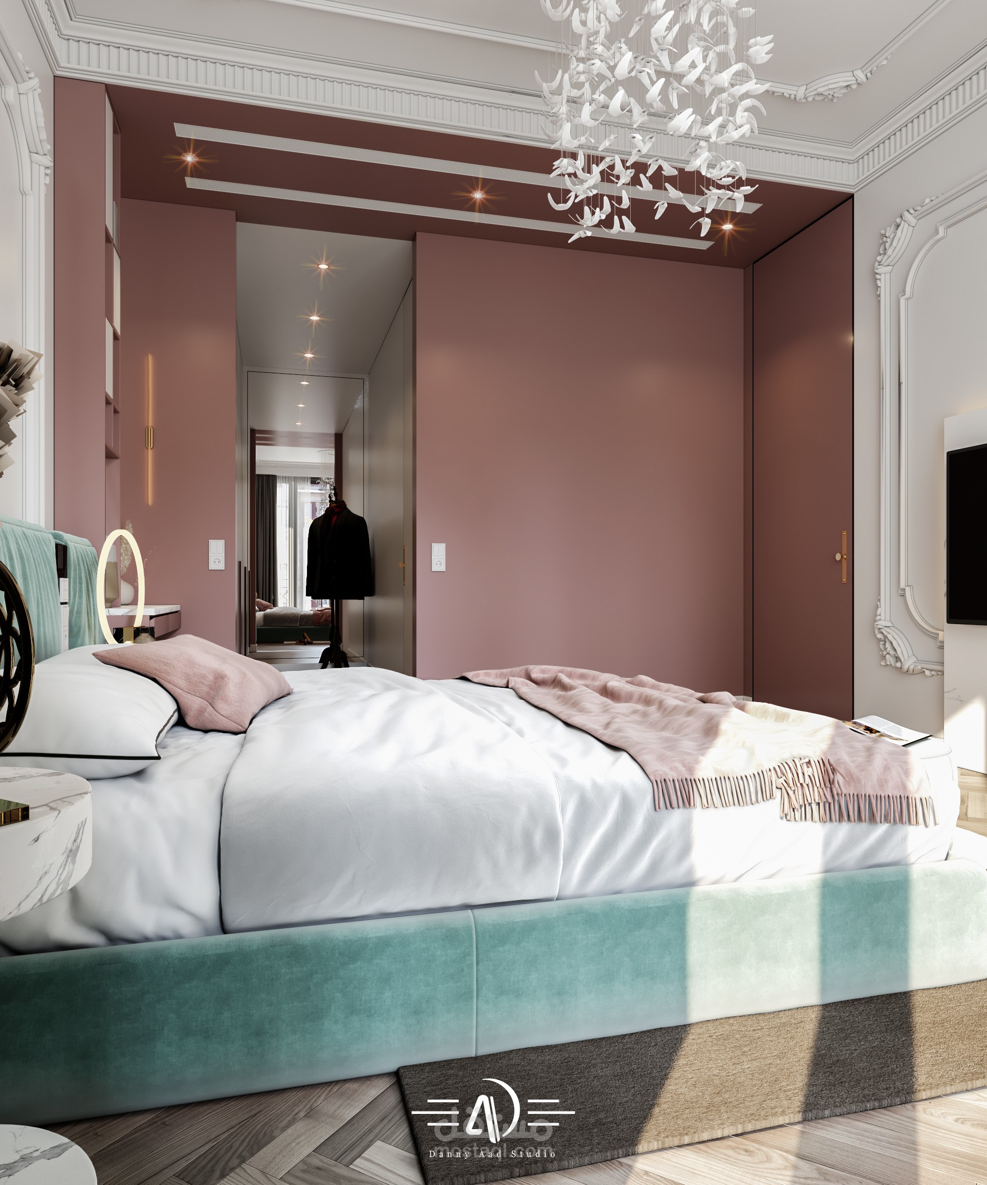 interior design for Master Bedroom in villa in Tukey - Istanbul modern style with simple and creative design which Meets the client's needs with earthy colors according to his wish.