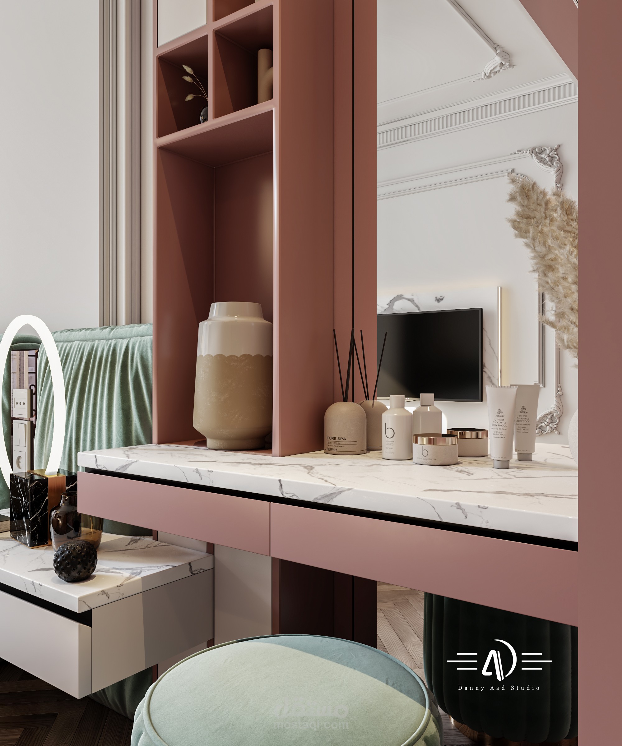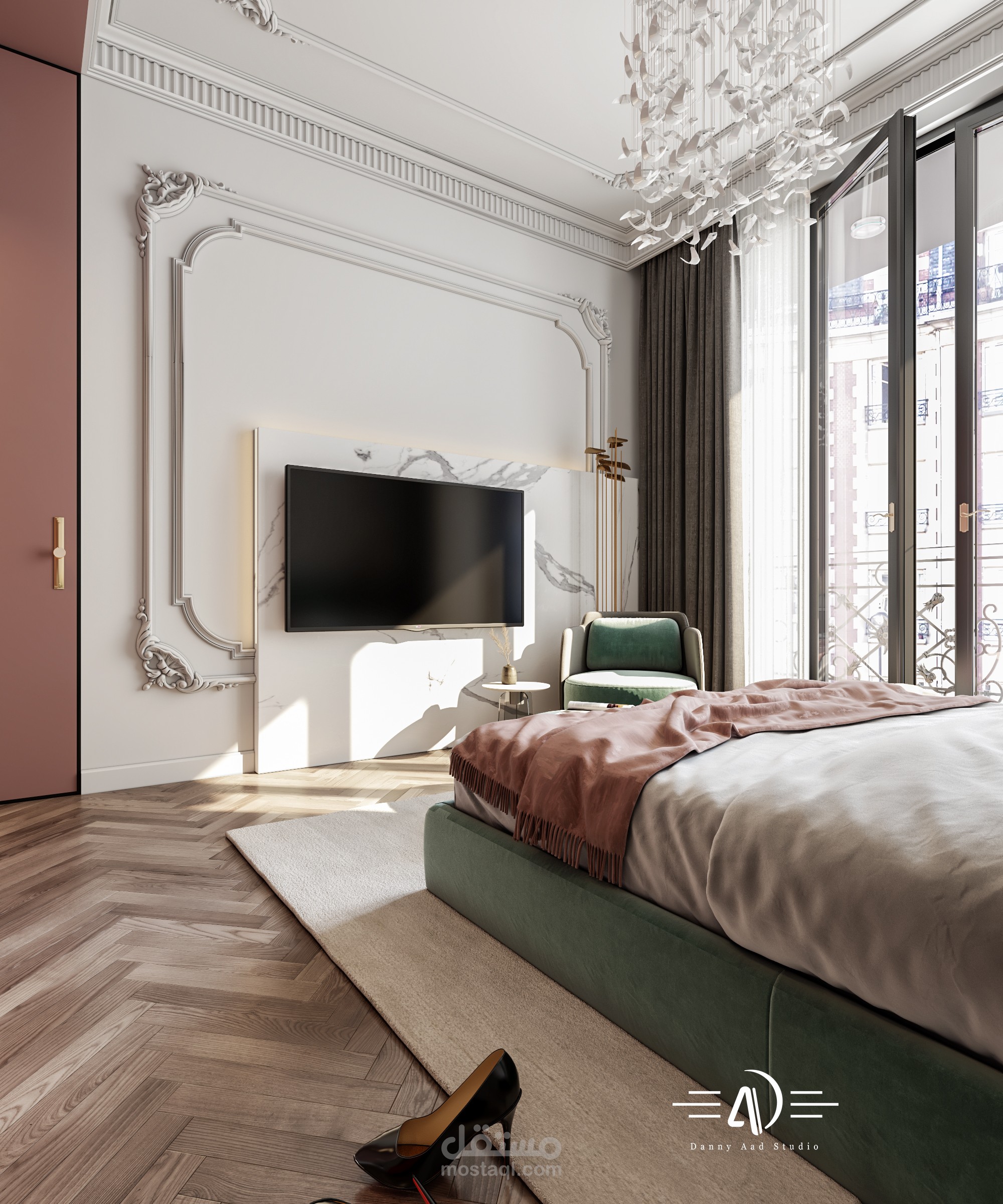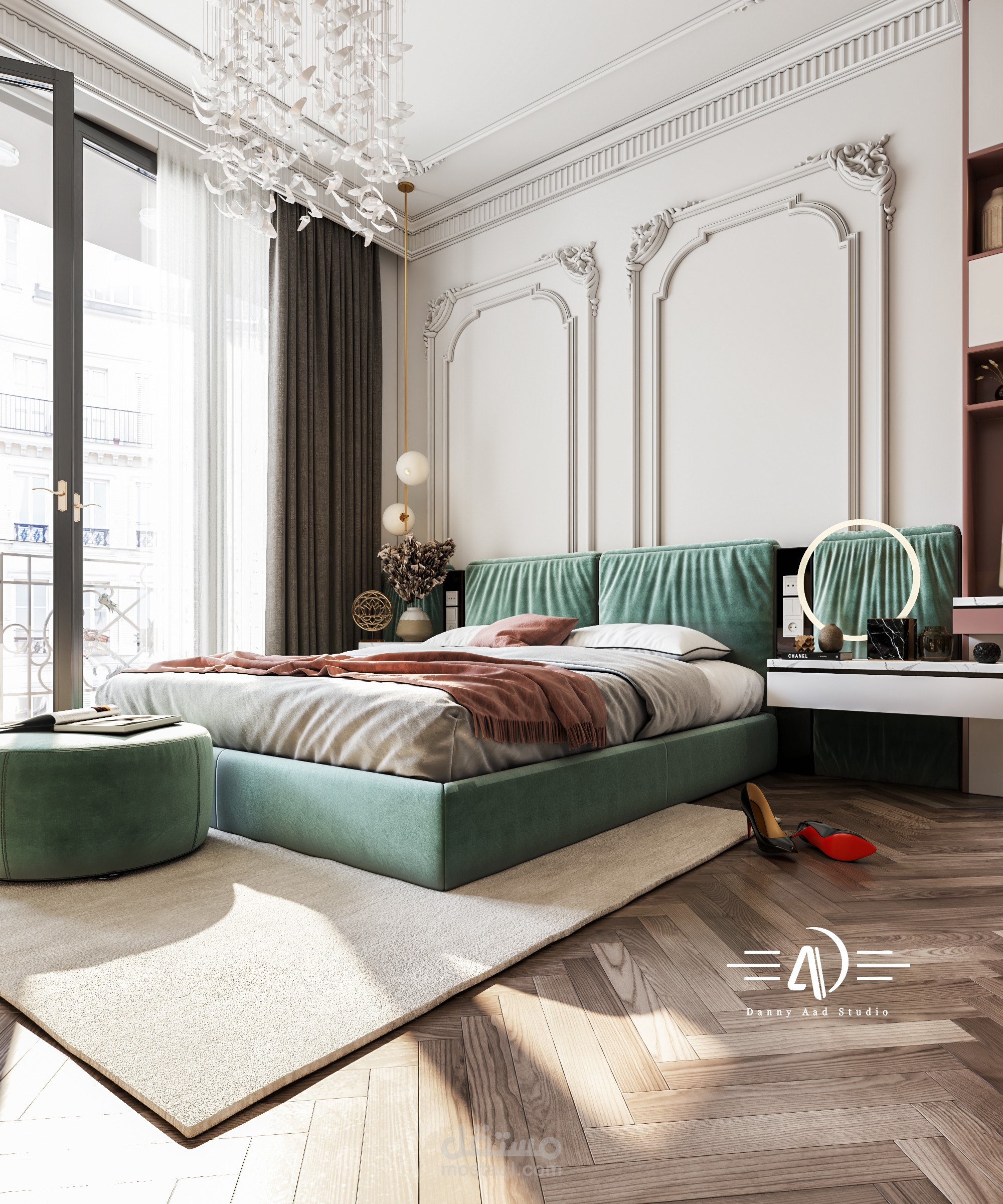 interior design for Master Bedroom in villa in Tukey - Istanbul modern style with simple and creative design which Meets the client's needs with earthy colors according to his wish.