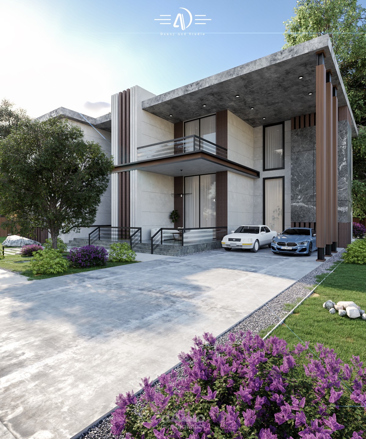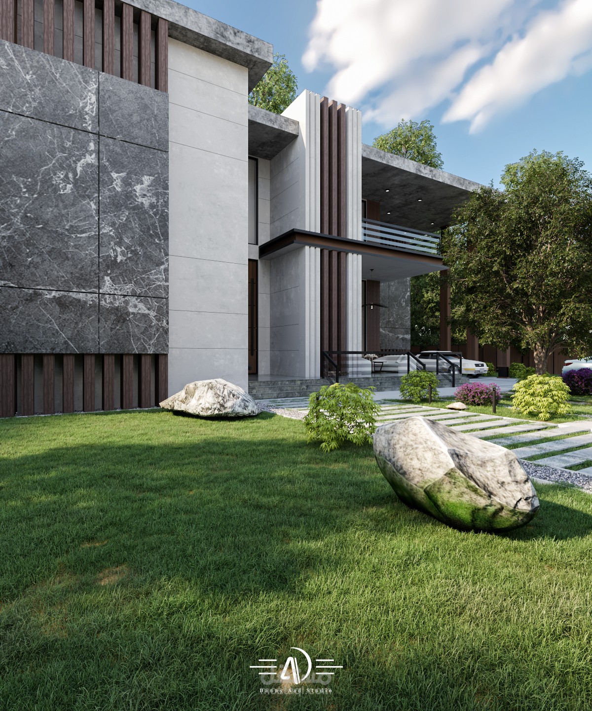 Exterior design for Villa with Landscape U.A.E modern style with simple and creative design which Meets the client's needs with earthy colors according to his wish.
