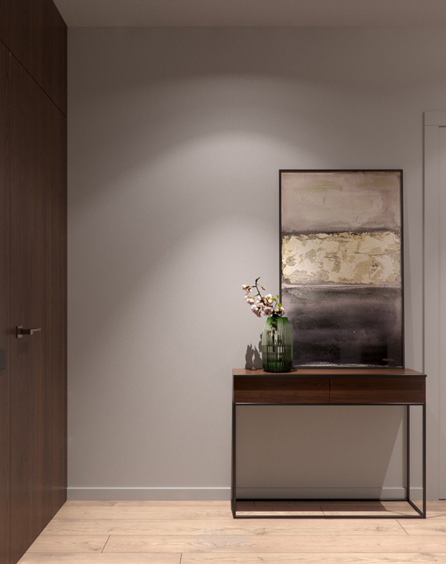 تصميم داخلى لشقة بمساحة 90 م2 فى مكونة من غرفة نوم ماستر وريسبشن وغرفة اطفال وحمام ومطبخ مفتوح على الريسبشن ...تم اعتماد التجاليد الخشبية فى الحوائط بالاضافة للدهانات وارضيات mdf واسقف جبسمبورد...