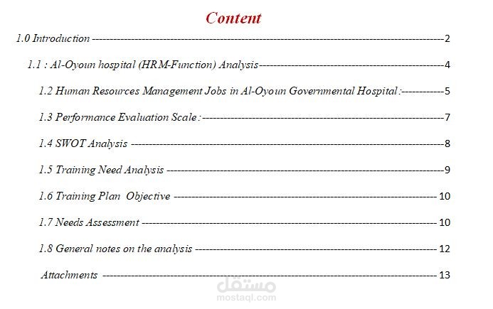خطة تحليل وتدقيق احتياجات الموارد البشرية في مستشفى العيون