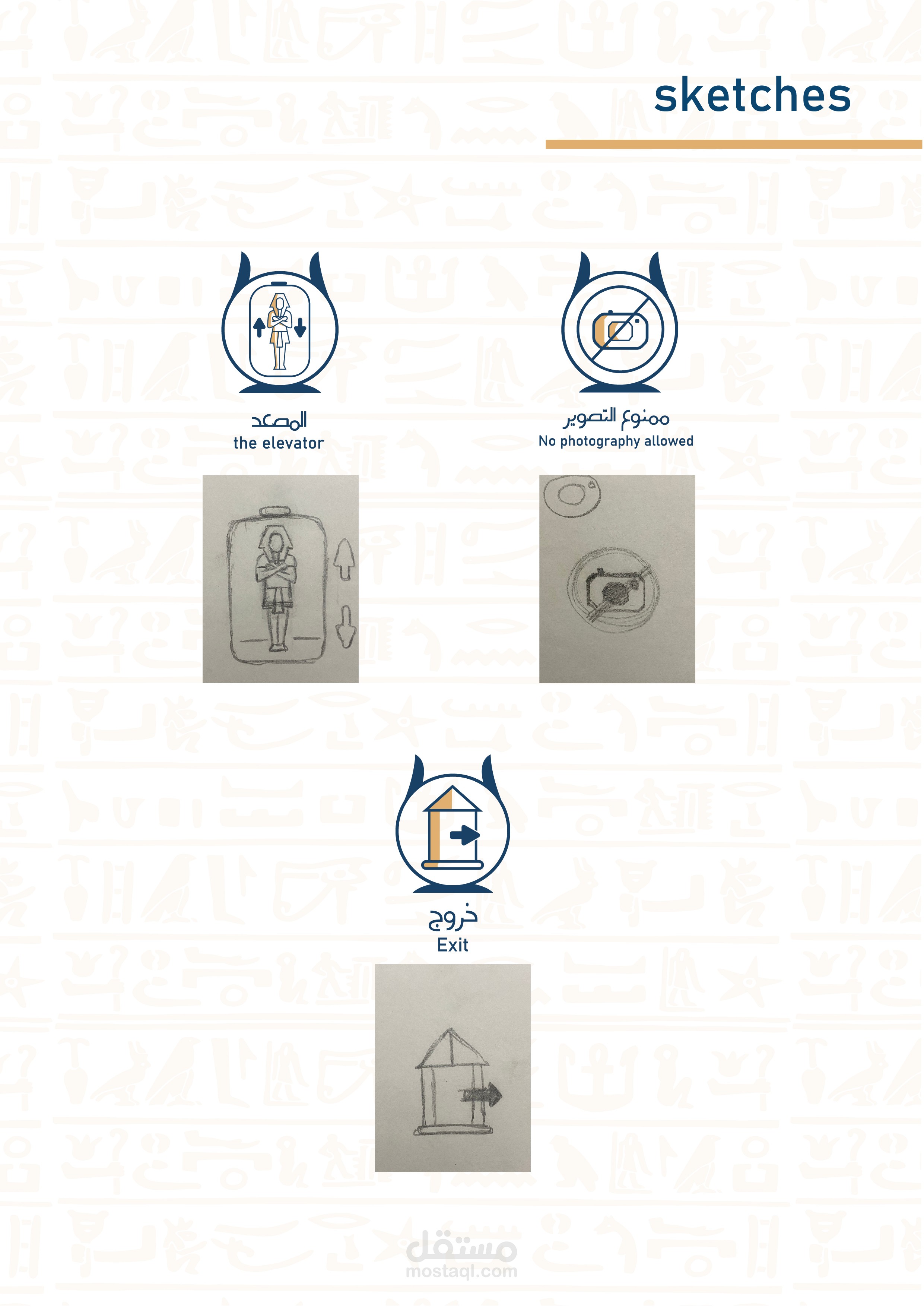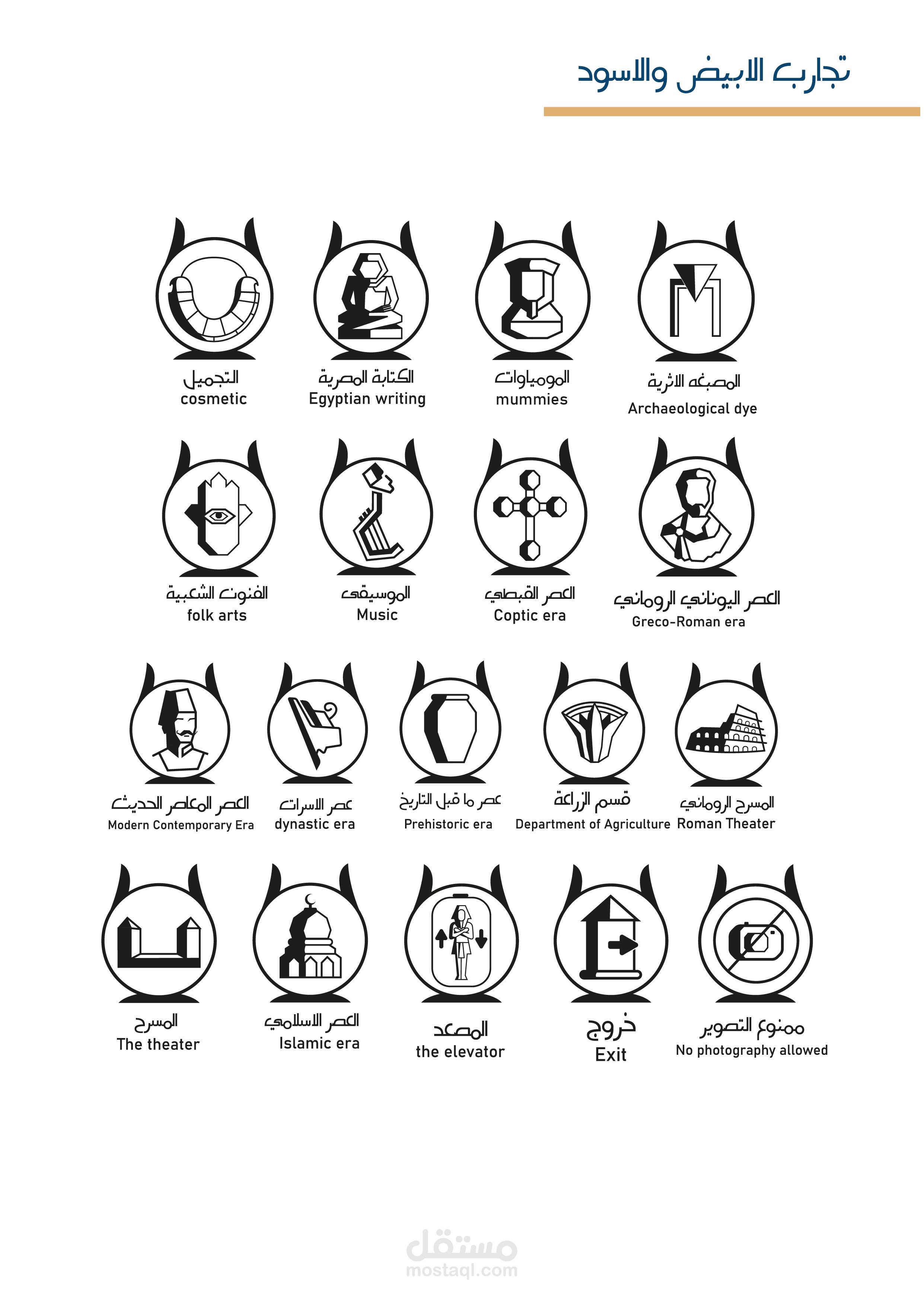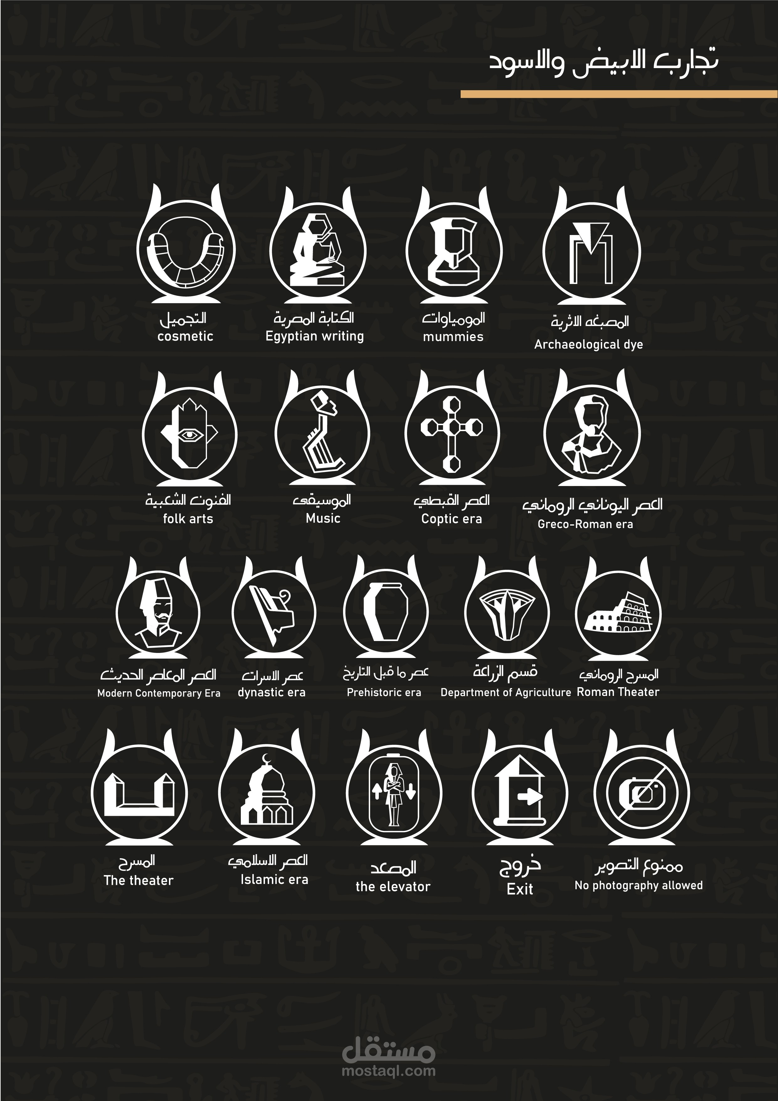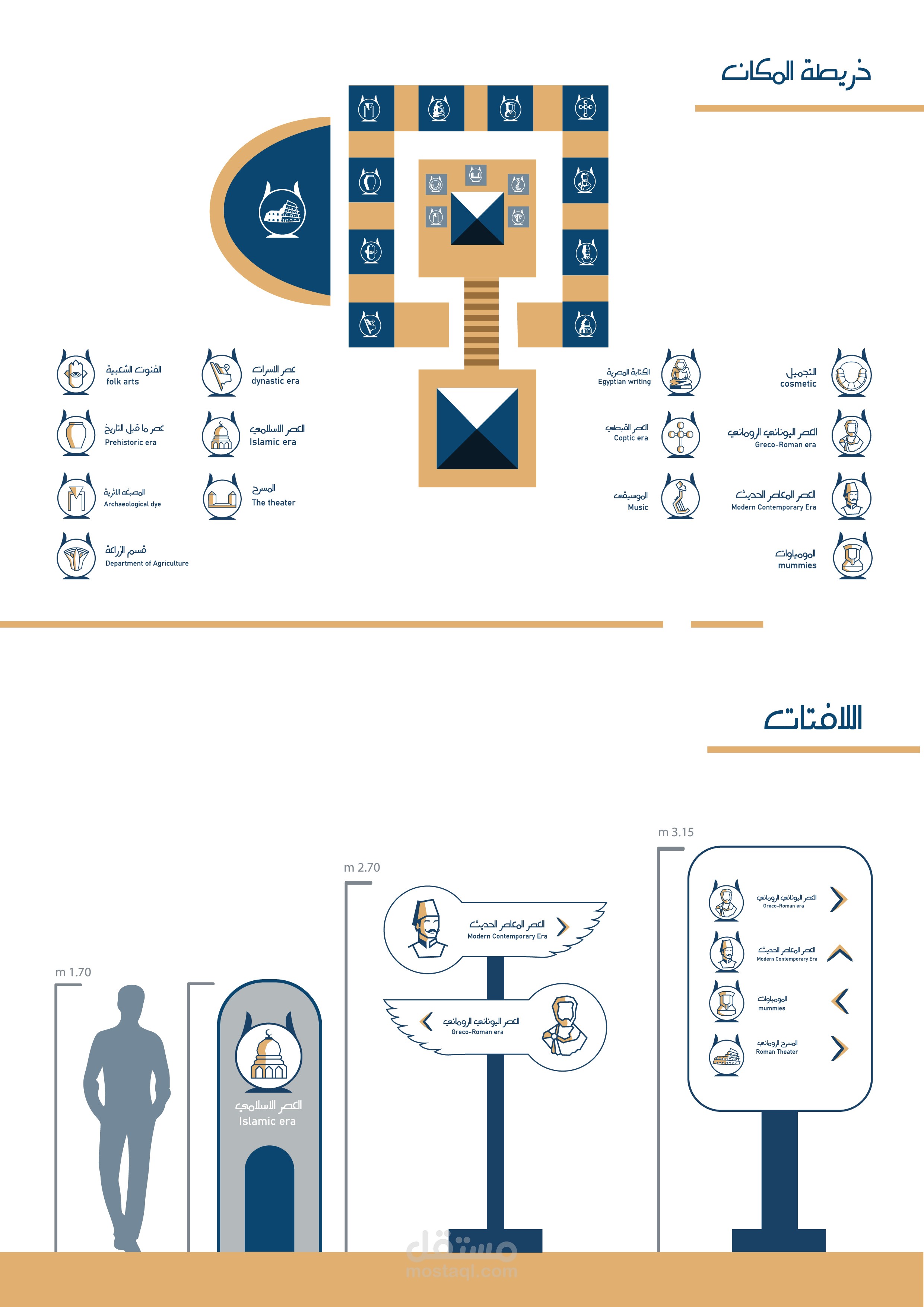 The design of the guide signs was inspired by the statues, eras and sections in the museum