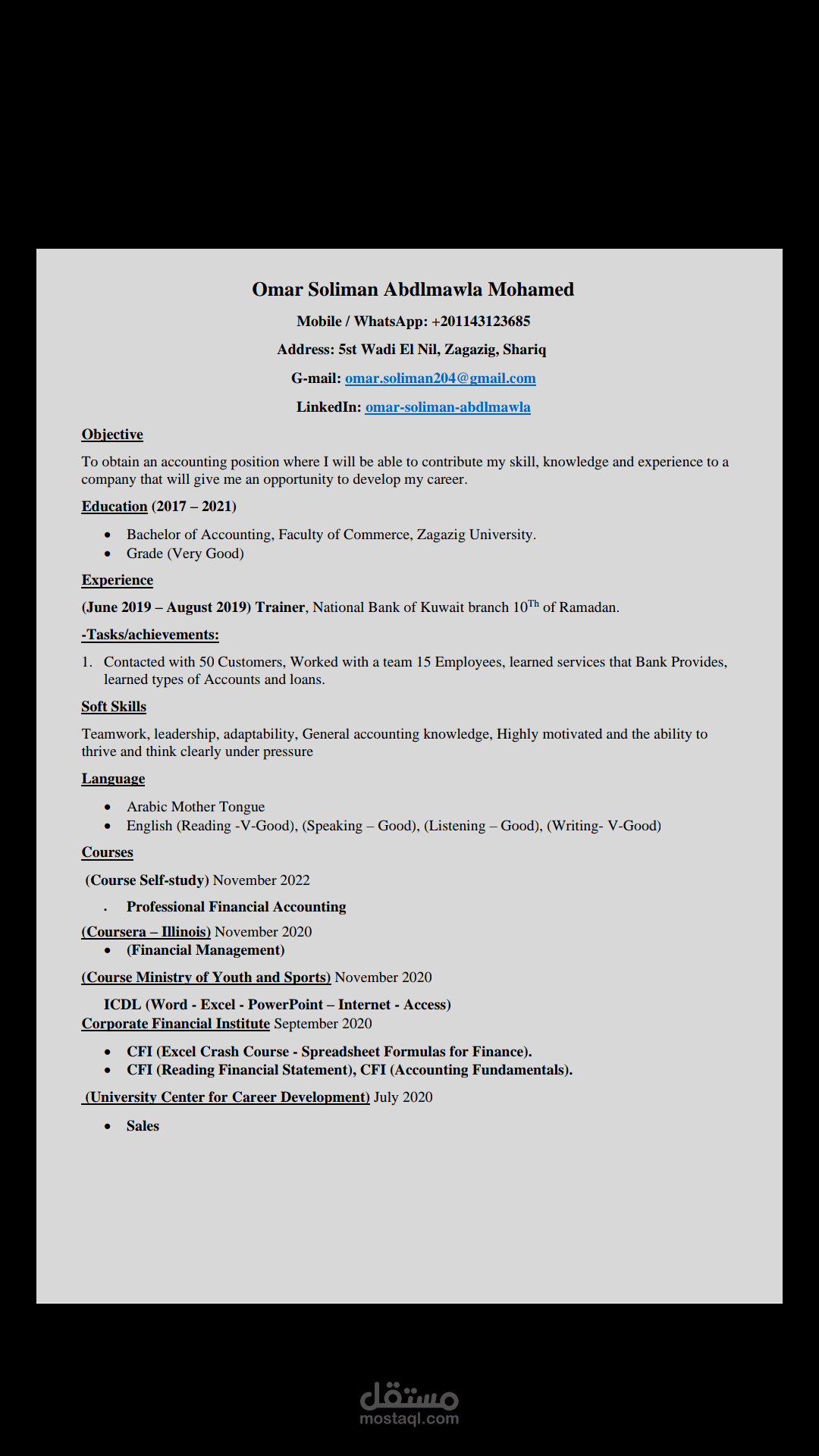 I have good experience in Egyptian Bank Institute