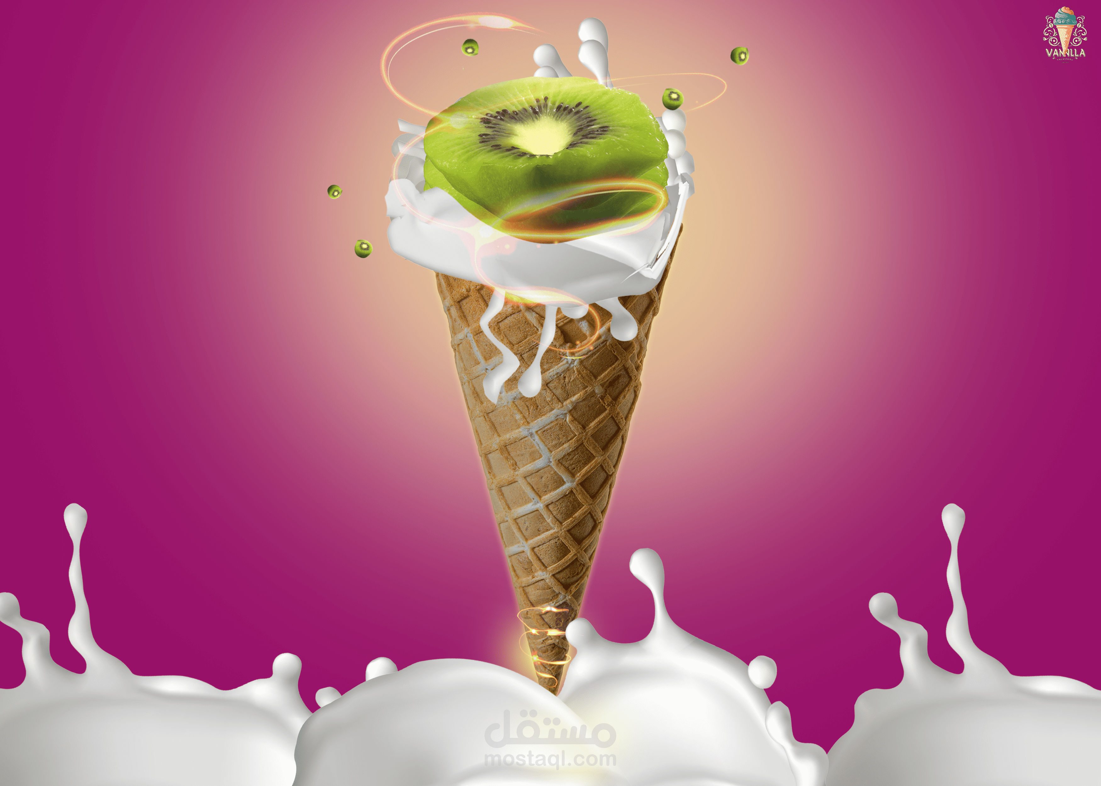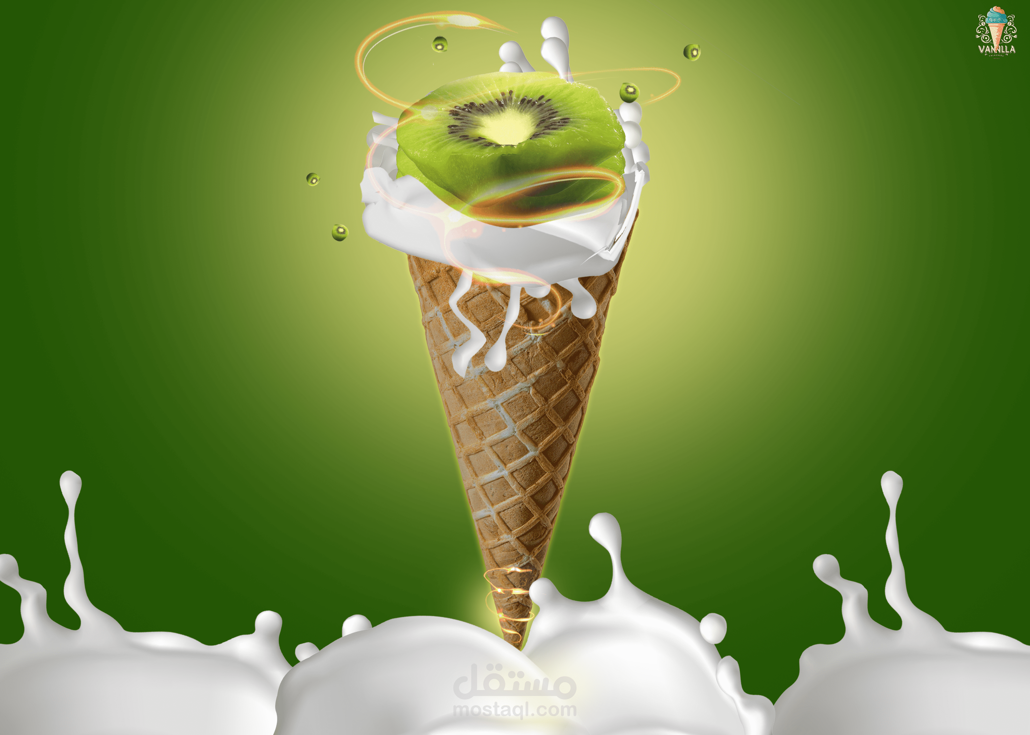 A new type of ice cream that shop want to advertise and make a social media design which be creative and consist of kiwi and vanilla