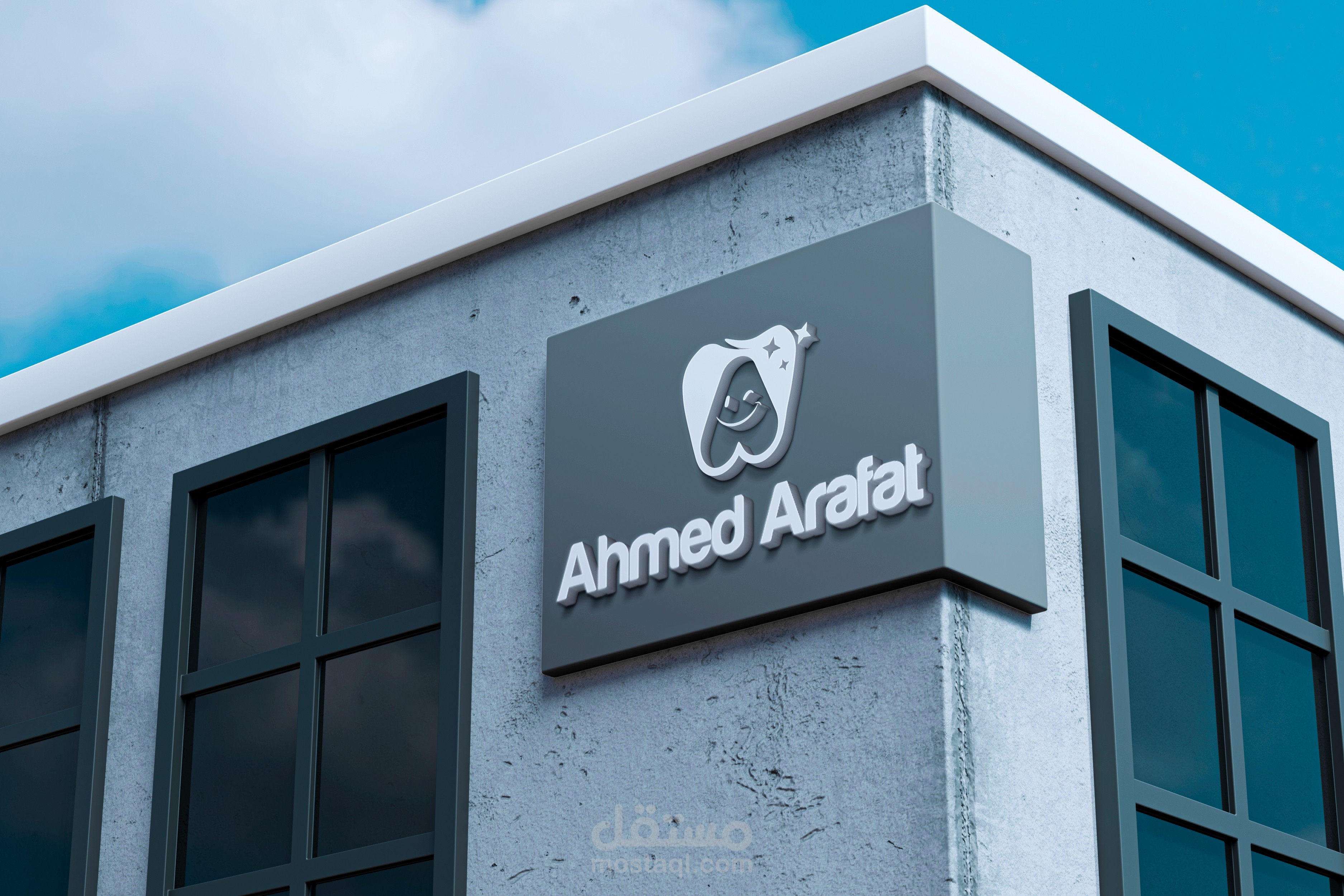 فهو تصميم يجمع بين شكل الدرس والابتسامة وبريق الاسنان وحرف الA الخاص باسم احمد