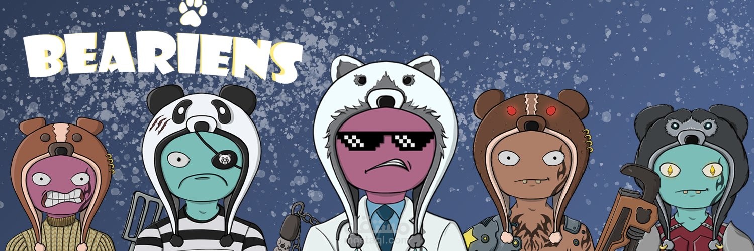 Beariens is a generated project with a collection size of8888, join the aliens that have bear's features to defend their home planet from invaders.