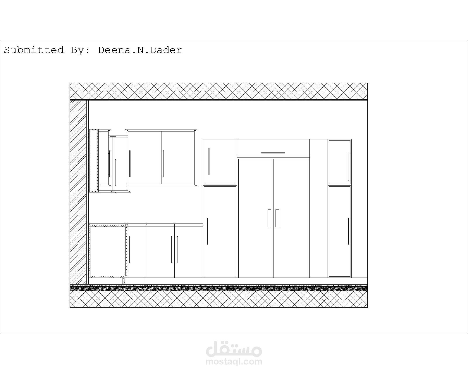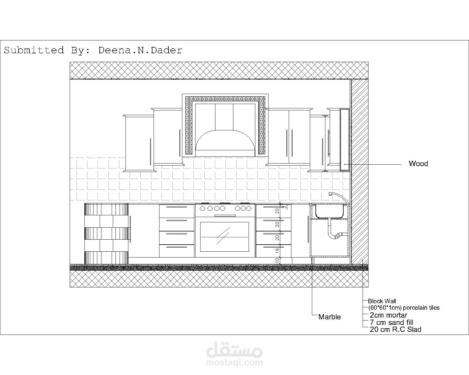 مخططات تفصيلي للمطبخ المصمم بالأبعاد والمواد المستخدمة في التصميم...