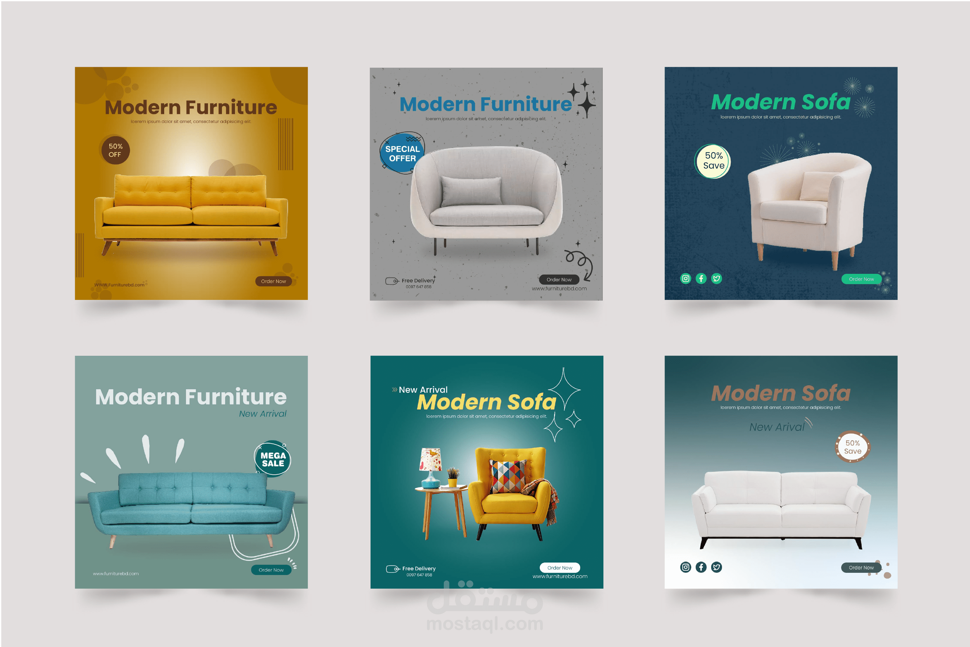 تجميعية لتصاميم بوستات لمعرض أثاث