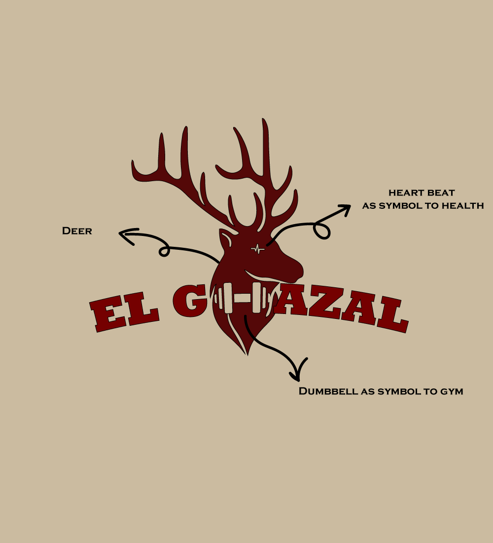تم دمج الاسم مع رمز "الغزال" مع رمز لل gym و الصحة