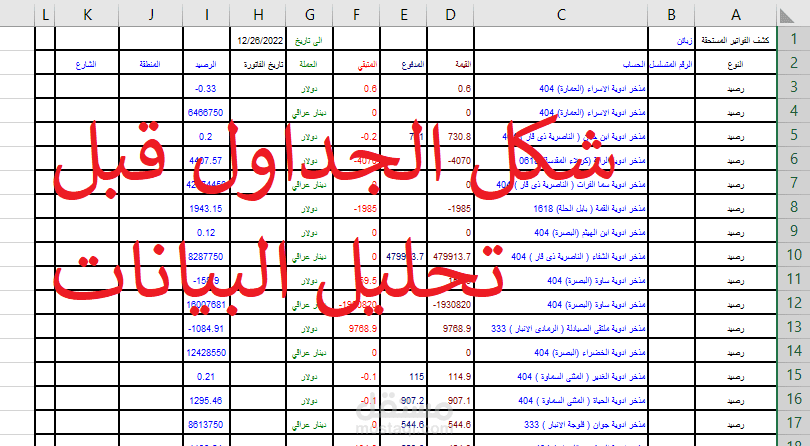 برنامج اكسل بنقرة زر واحدة يتم تحليل بيانات جداول عادية وتحويلها إلى عدة ملف بعدد المندوبين كل مندوب تحليل بيانات عملاءه والرصيد الكلي وفرز فواتيره حسب القدم غيرها