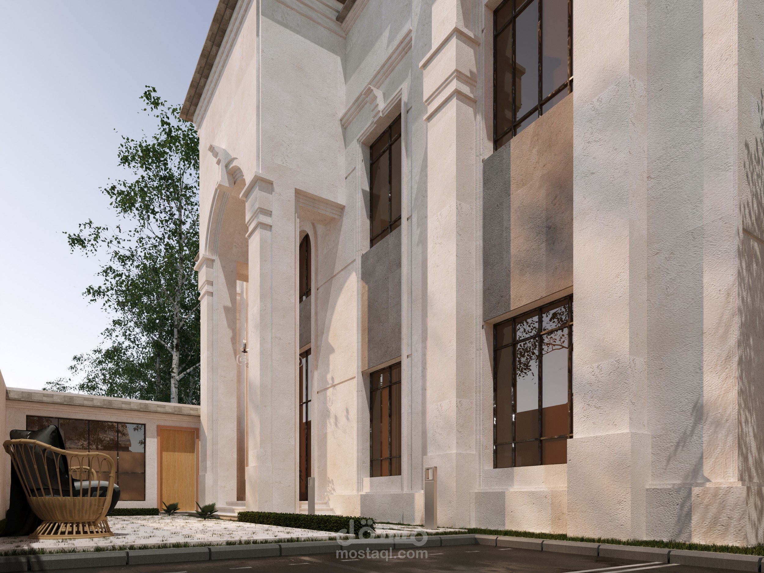 اعاده تصميم لواجهه خارجيه مع اضافه لمسات جماليه . استايل كلاسيك لزوم متطلبات العميل . و جاري العمل علي التشطيبات الخارجيه . مرفق عمل الواجهه قبل و بعد
