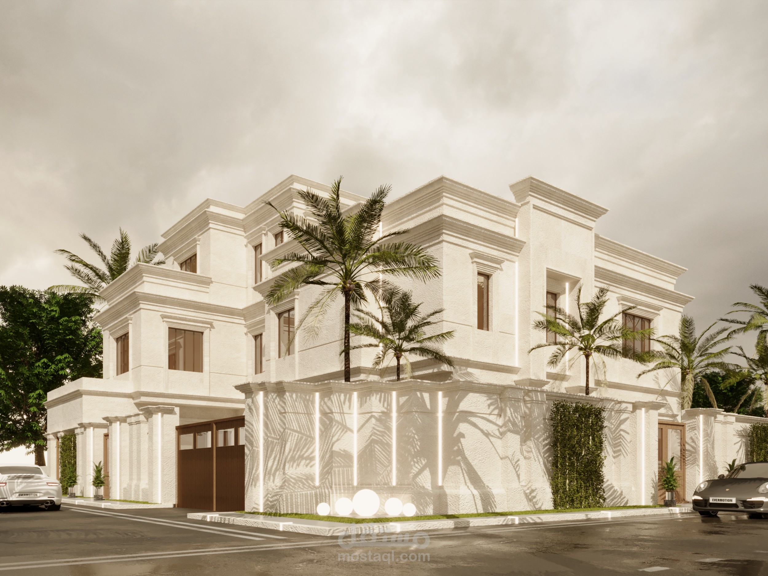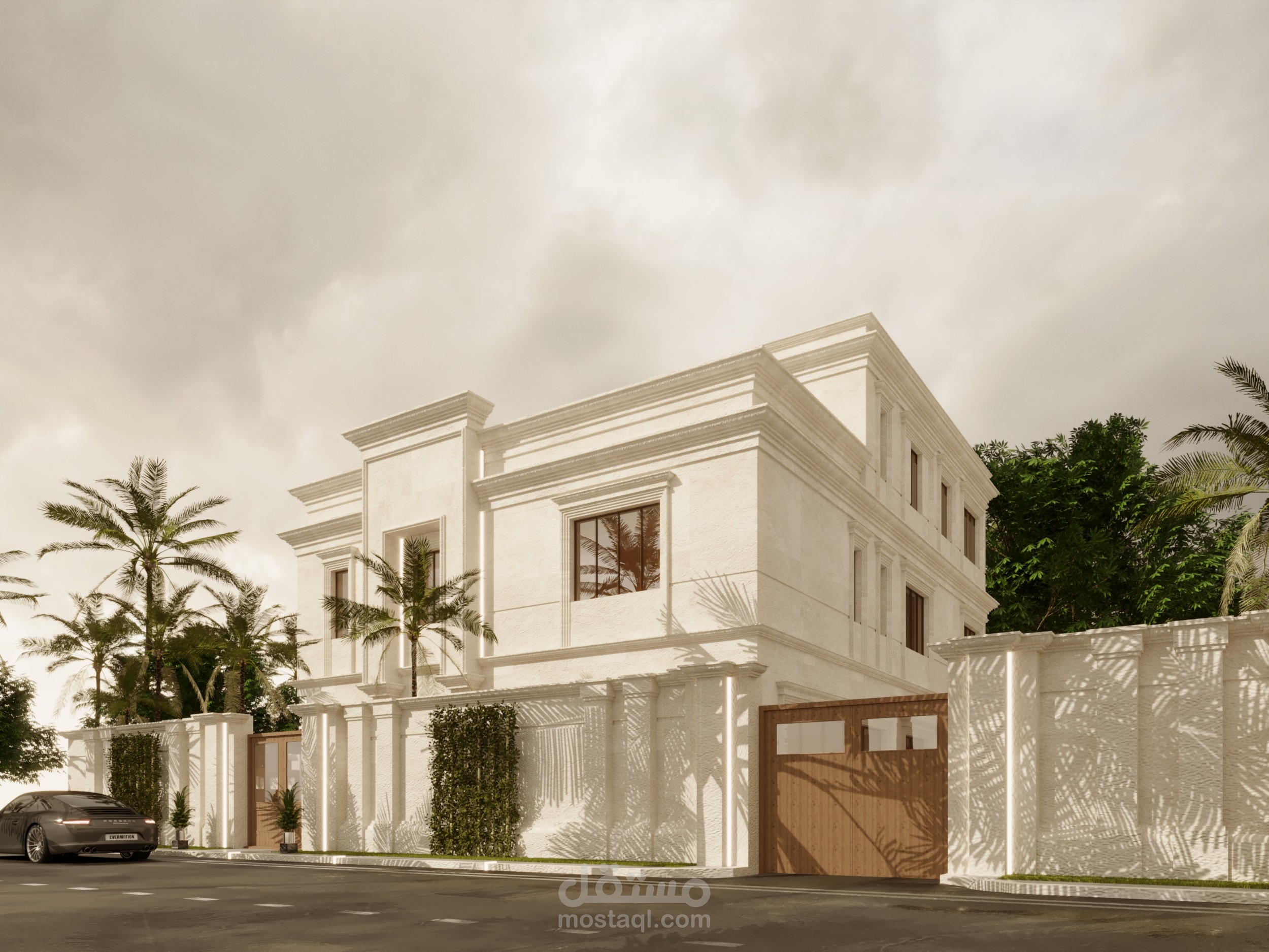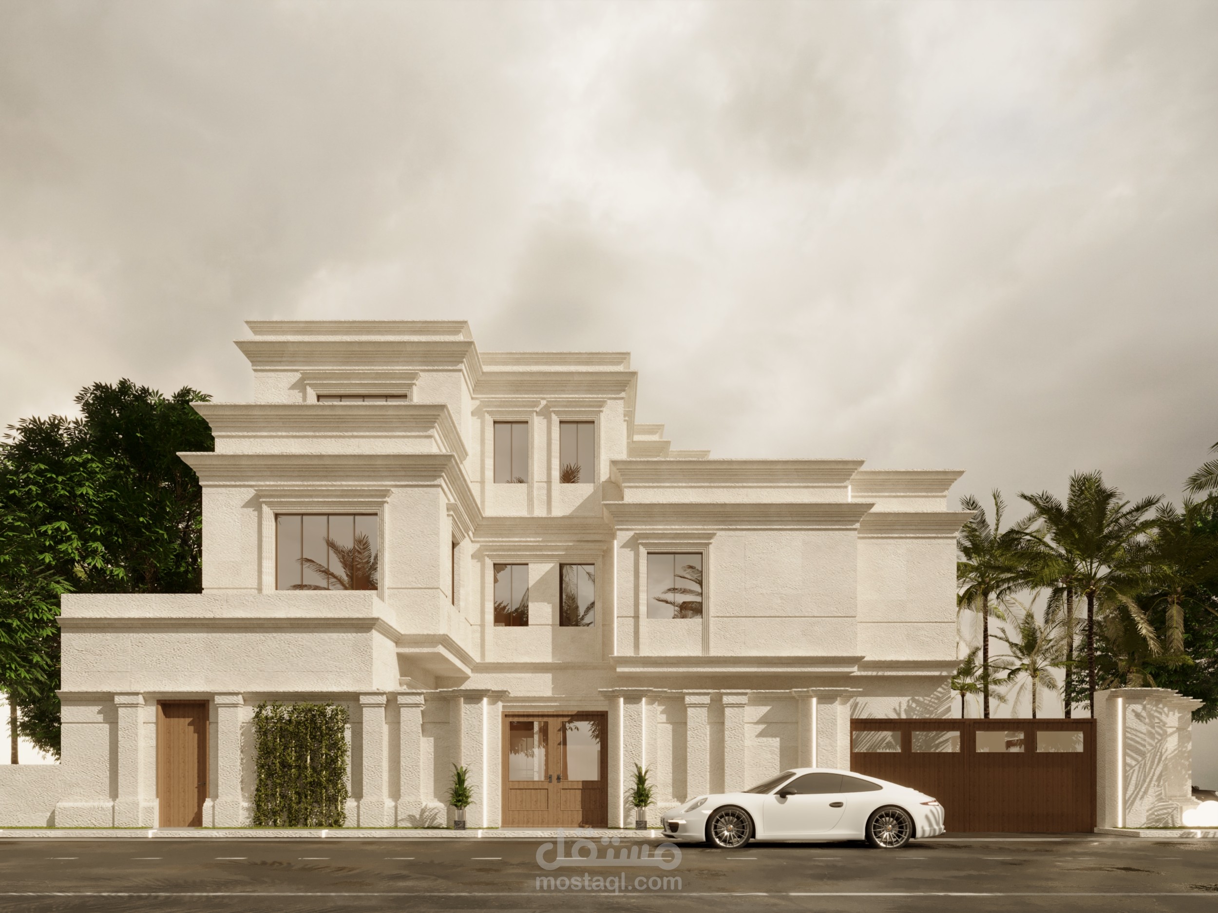 تصميم واجهه خارجيه لفيلا سكنيه . استايل كلاسيك . معاصر . في المملكه العربيه السعوديه