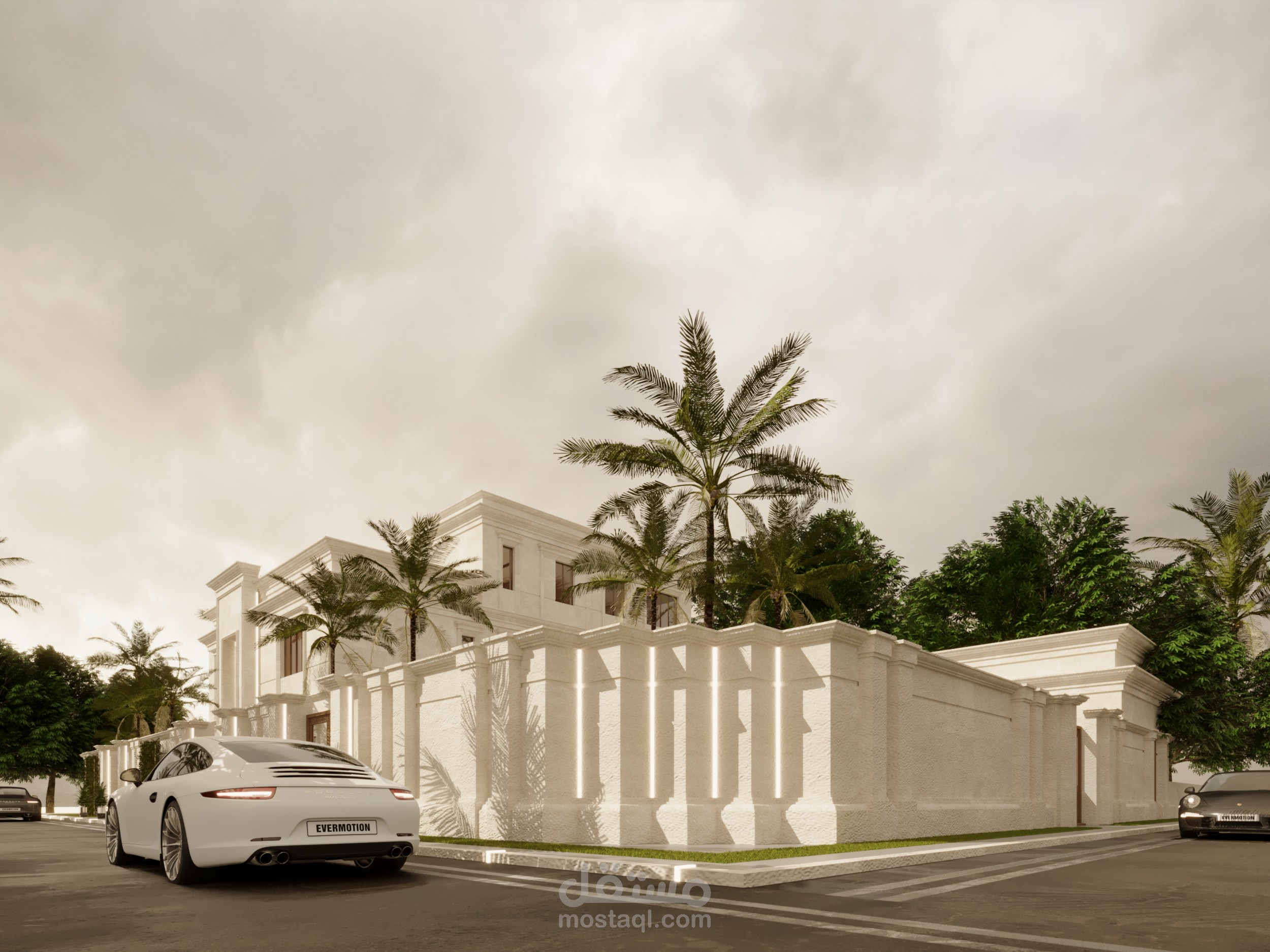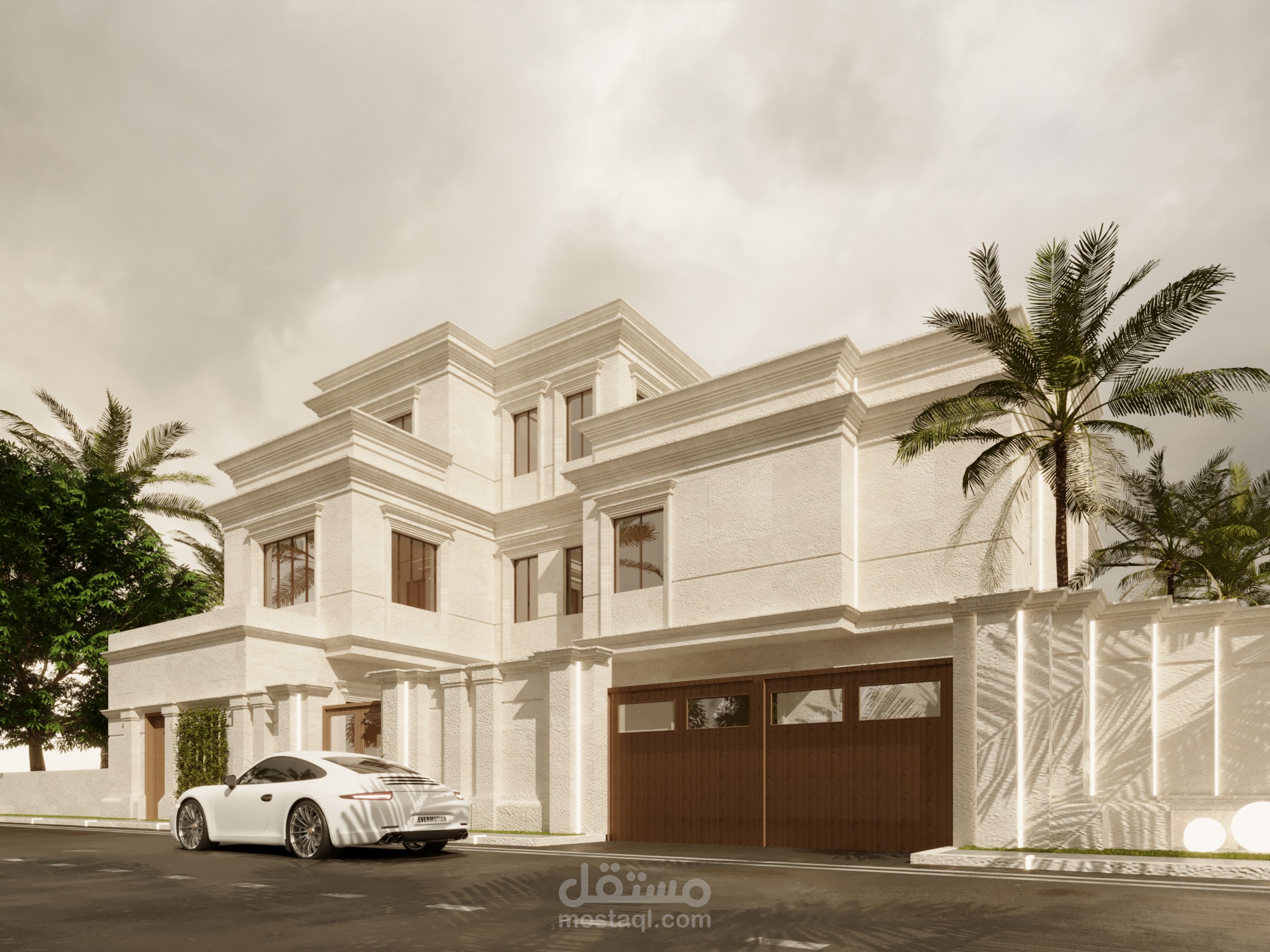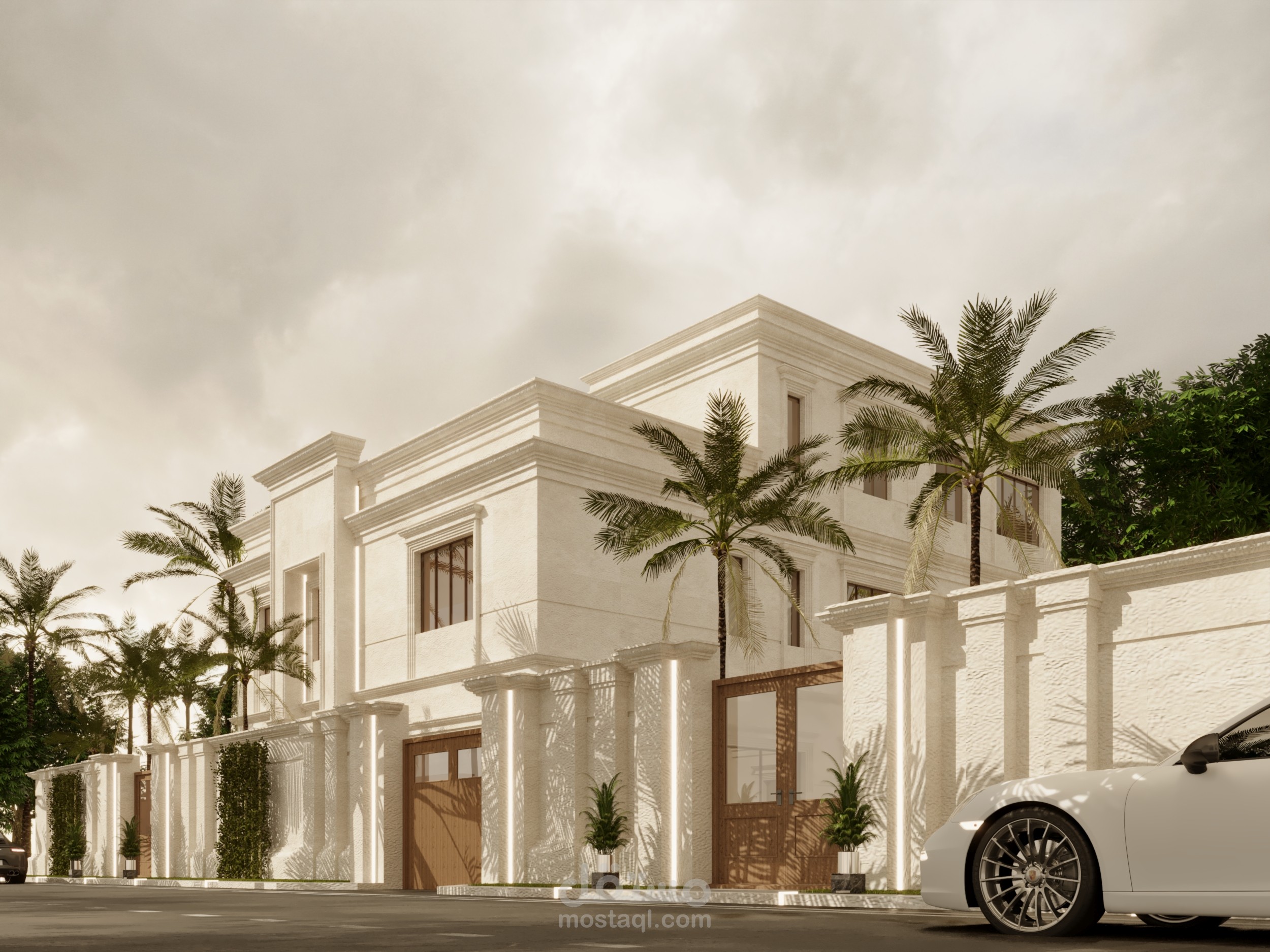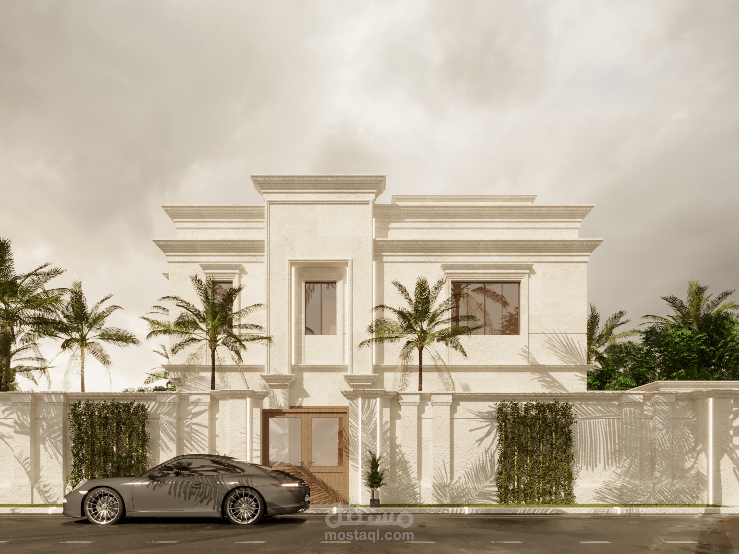 تصميم واجهه خارجيه لفيلا سكنيه . استايل كلاسيك . معاصر . في المملكه العربيه السعوديه