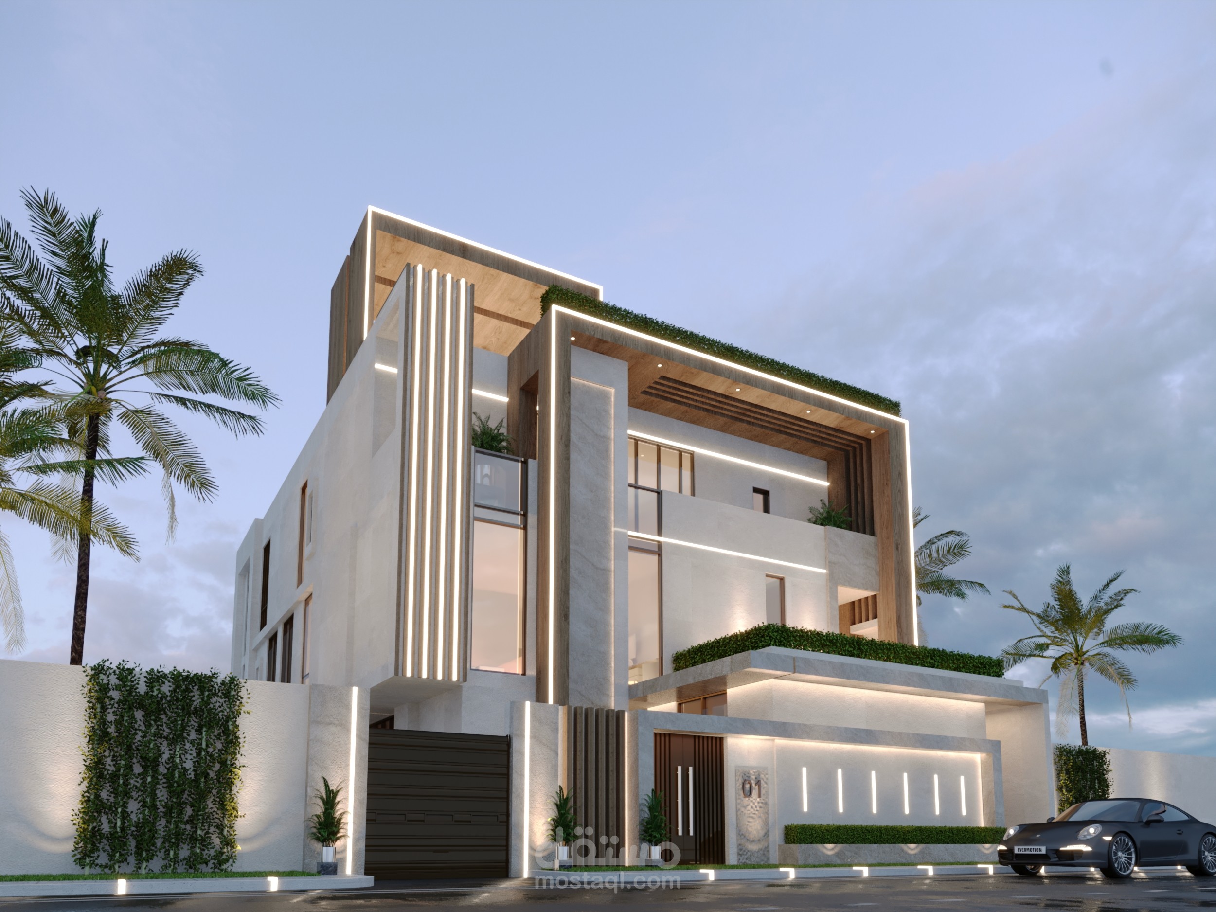 تصميم حديث معاصر مودرن. لفيلا سكنيه . ارضي و اول و ثاني