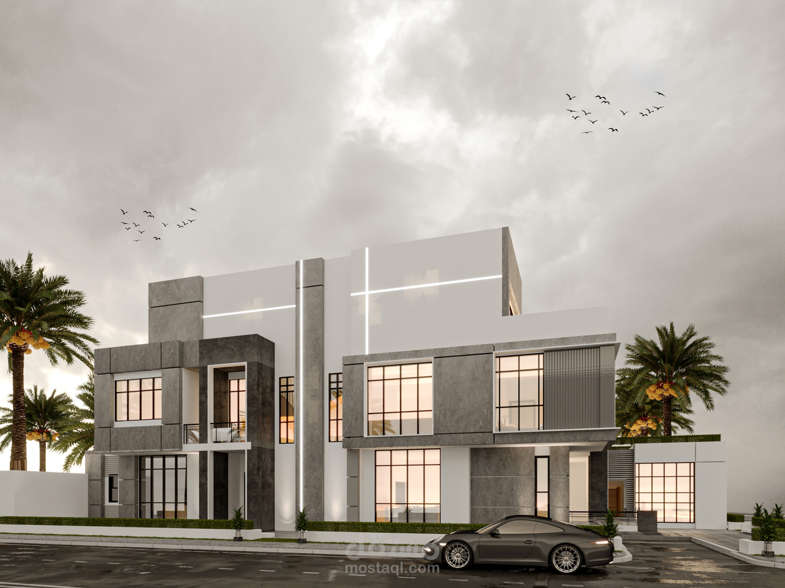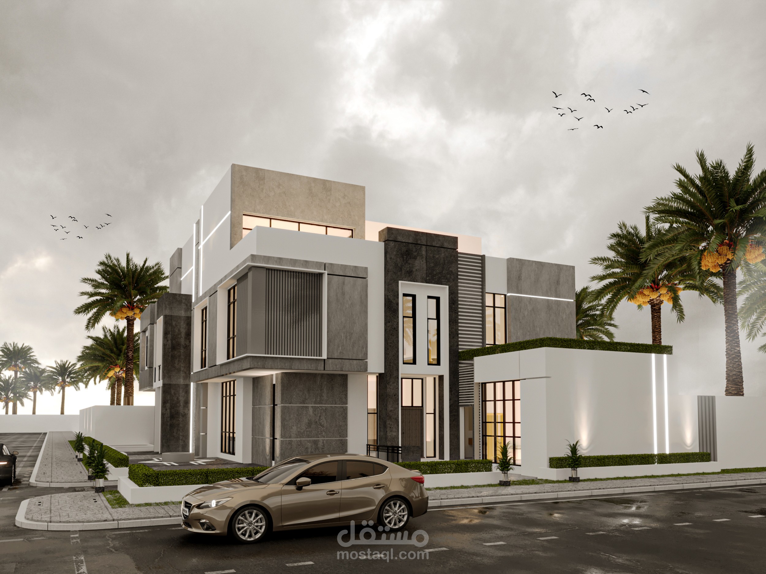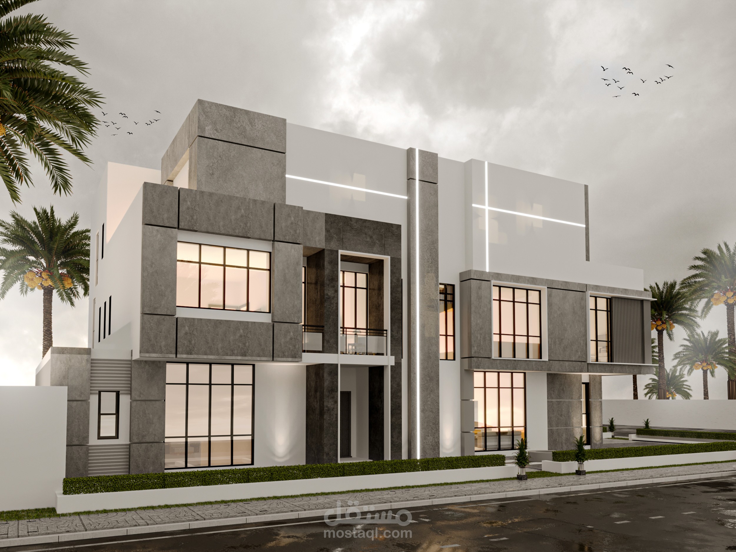 تصميم واجهه خارجيه . استايل مودرن . في المملكه العربيه السعوديه . جده .