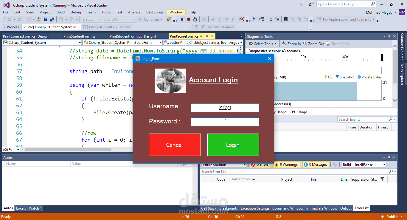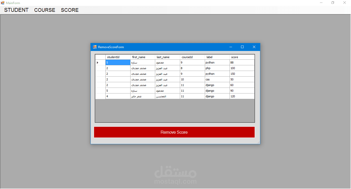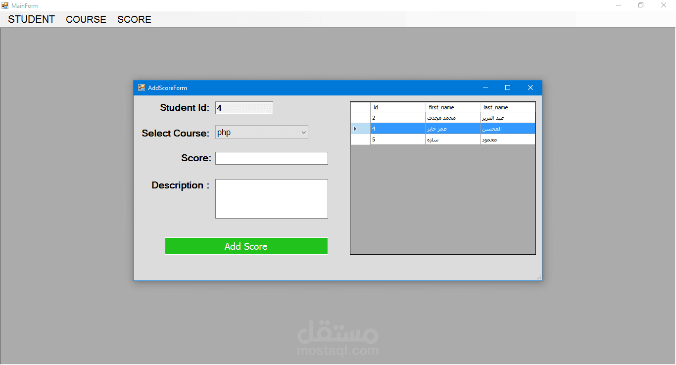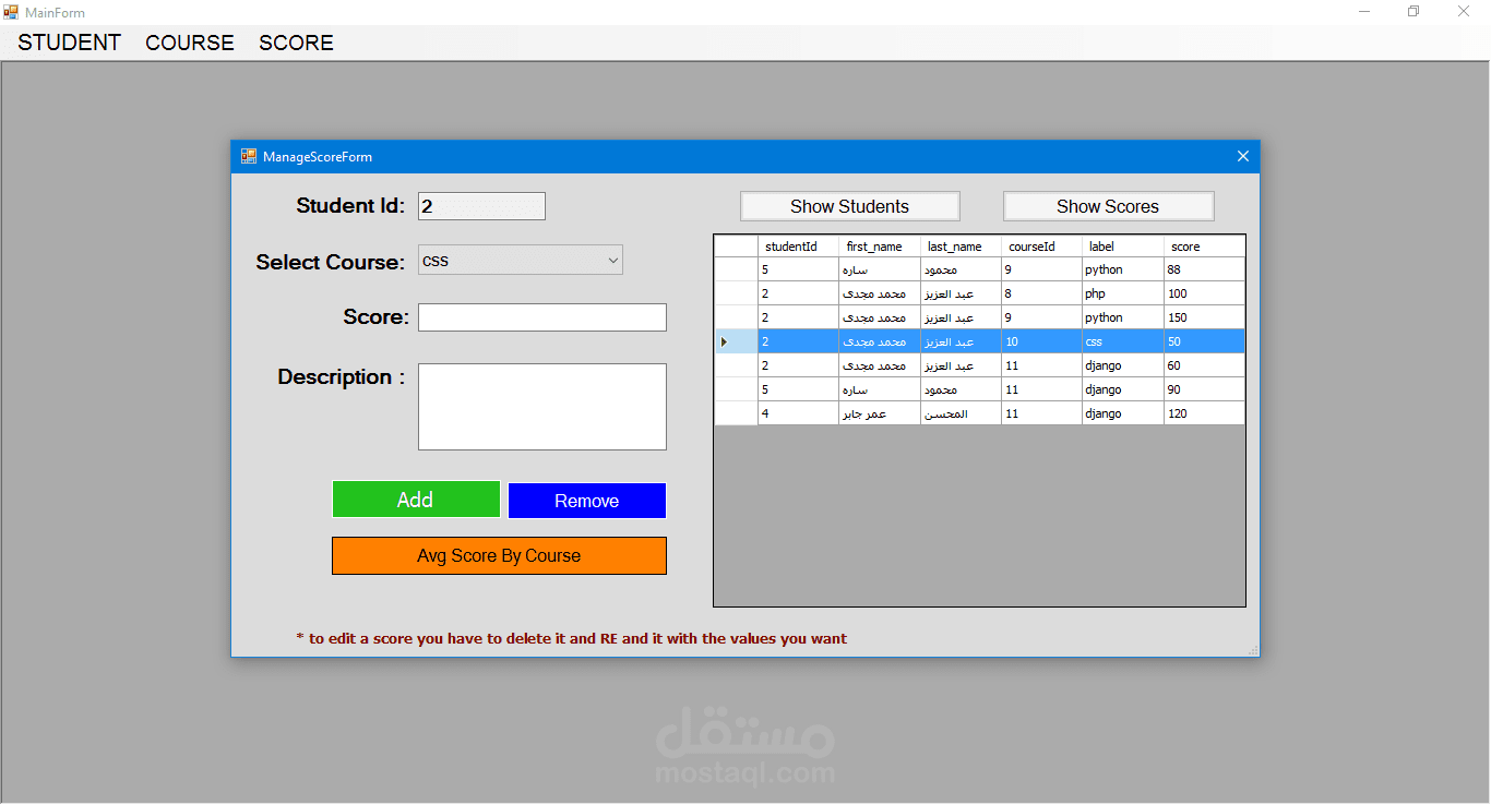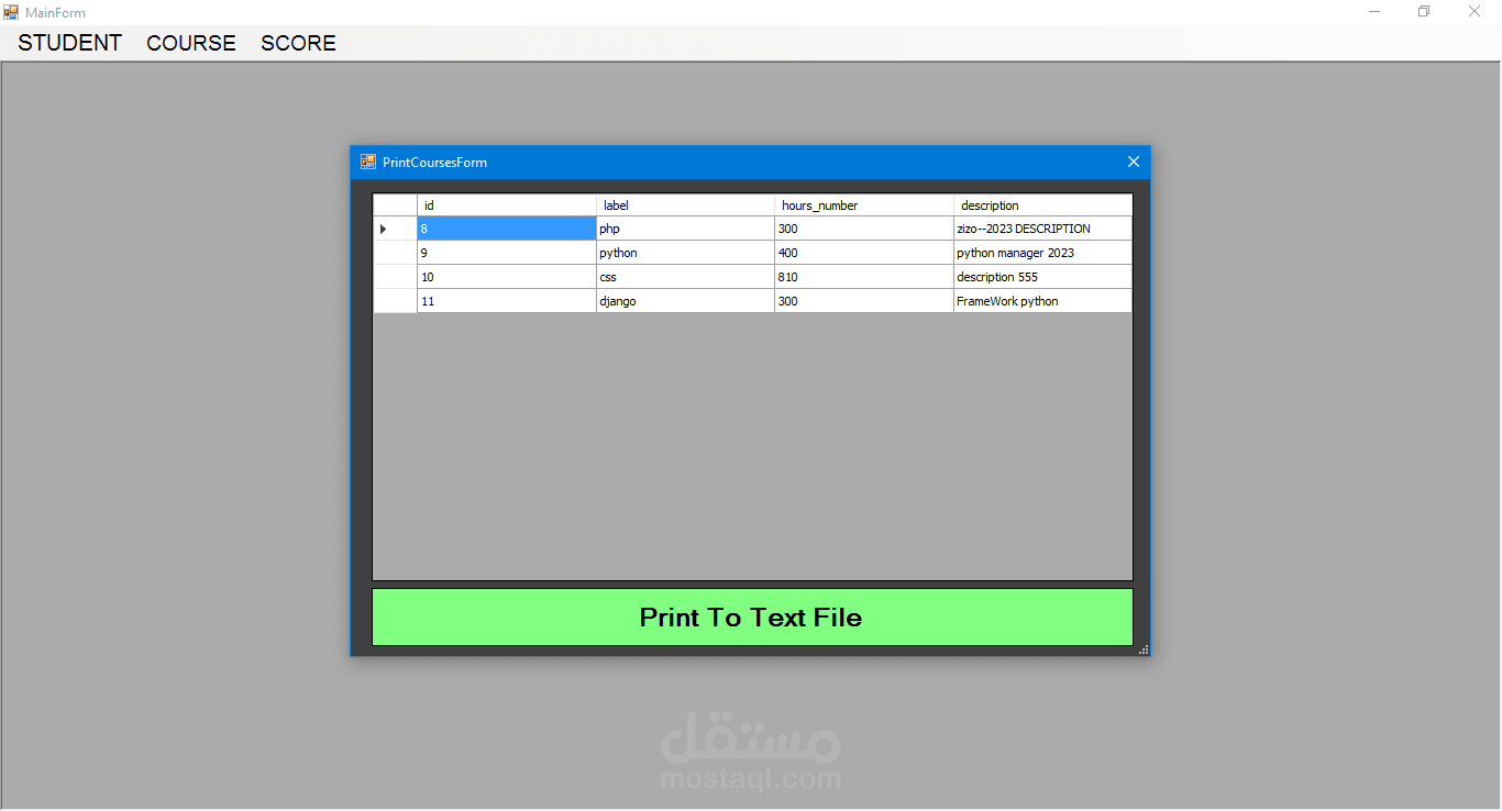 برنامج لتسجيل درجات الطلاب فى الدروس او الكورسات وطباعة التقارير