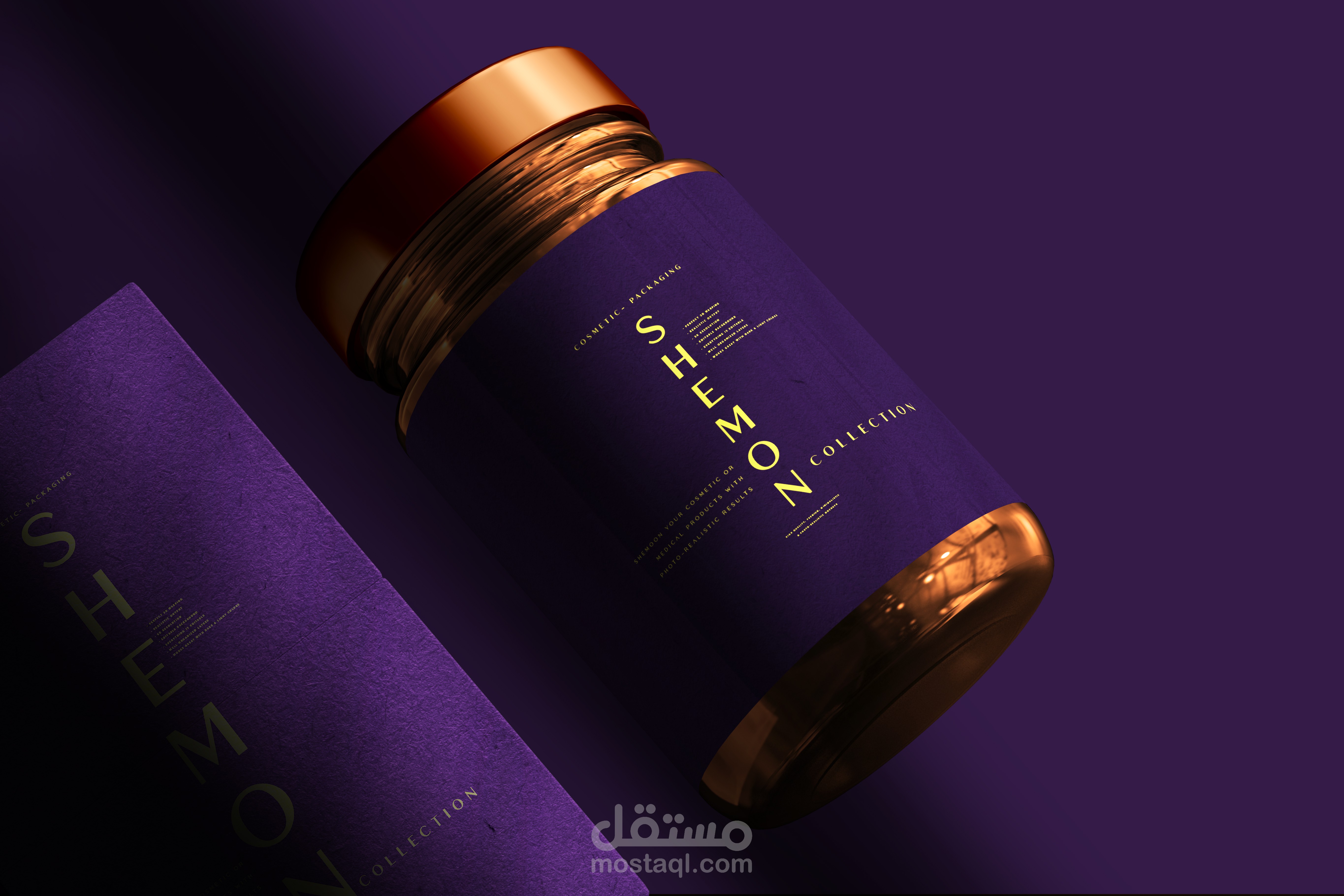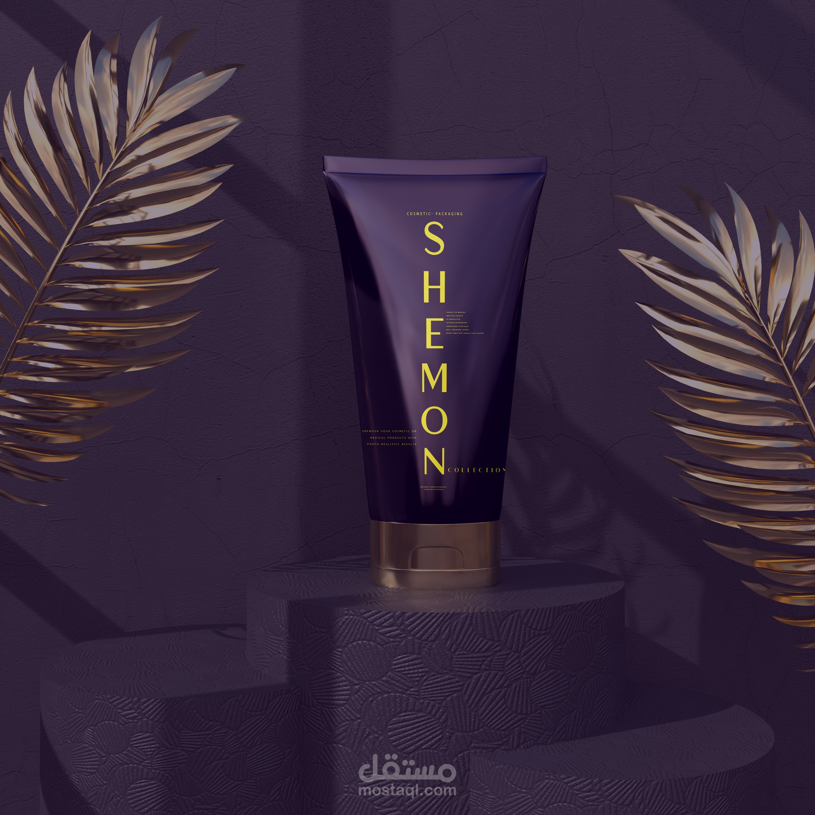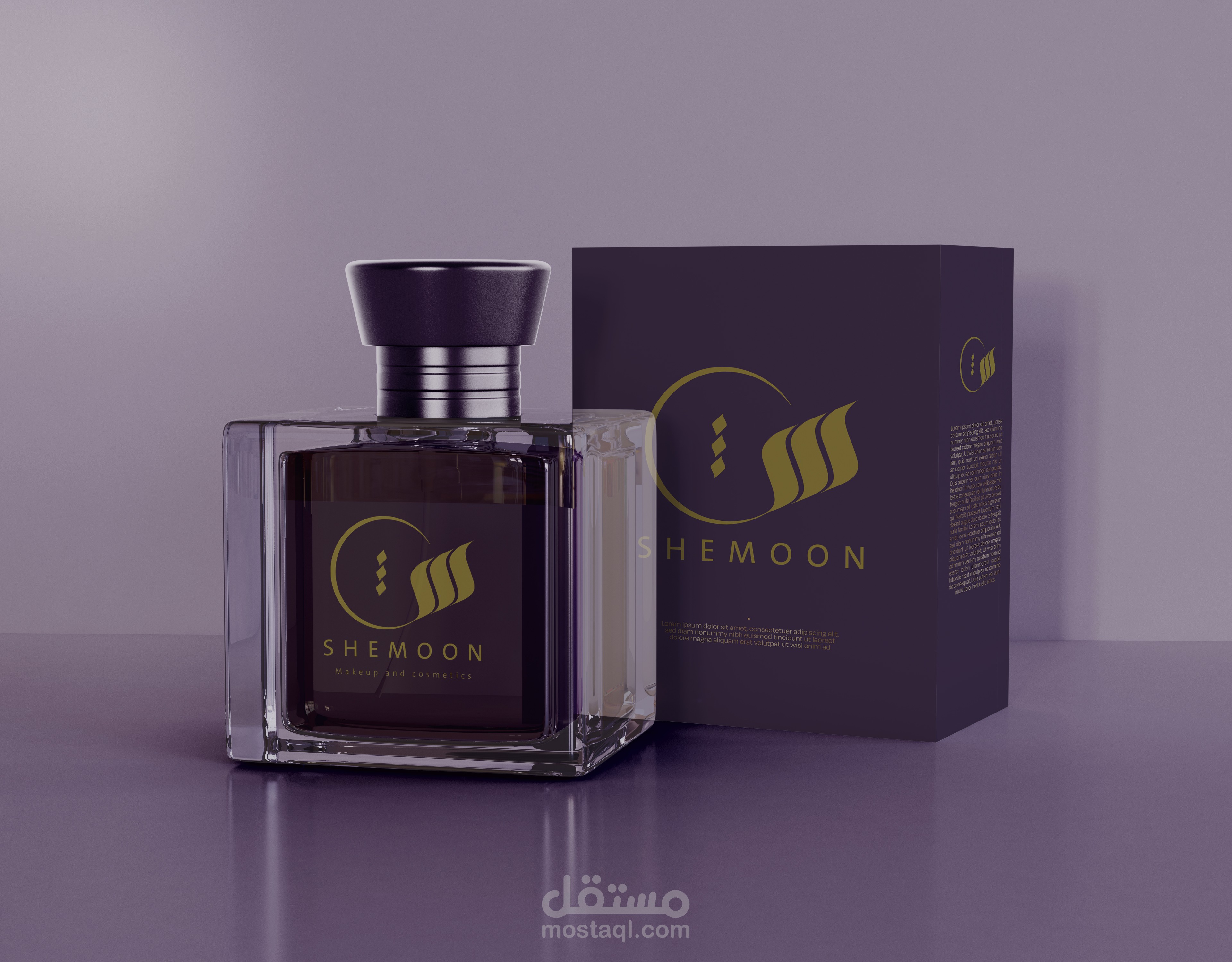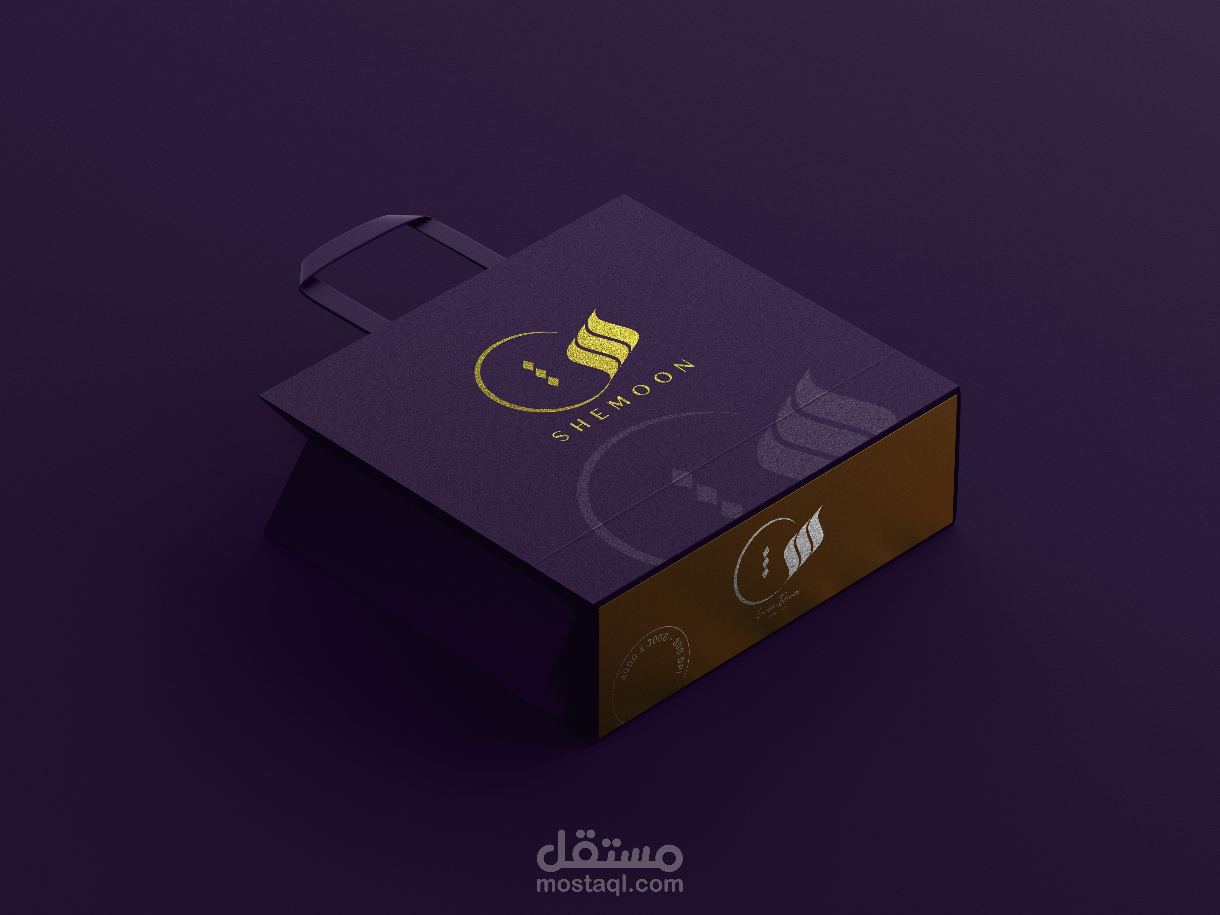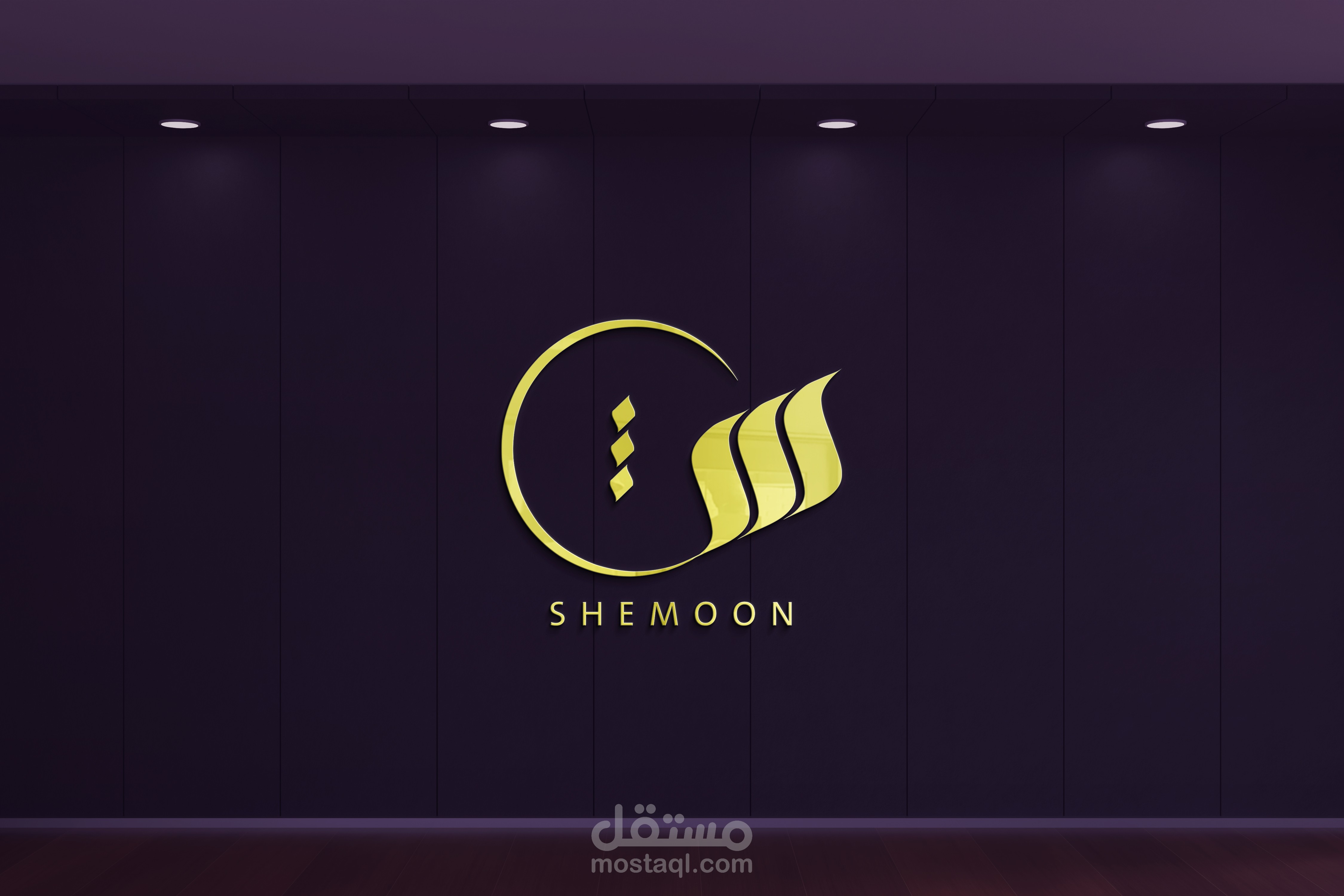 تصميم شعار شركة شي مون، تصميم تغليف لمنتجات الشركة، تصميم ظرف، تصميم علب هدايا (بكجات)، تصميم على الحائط