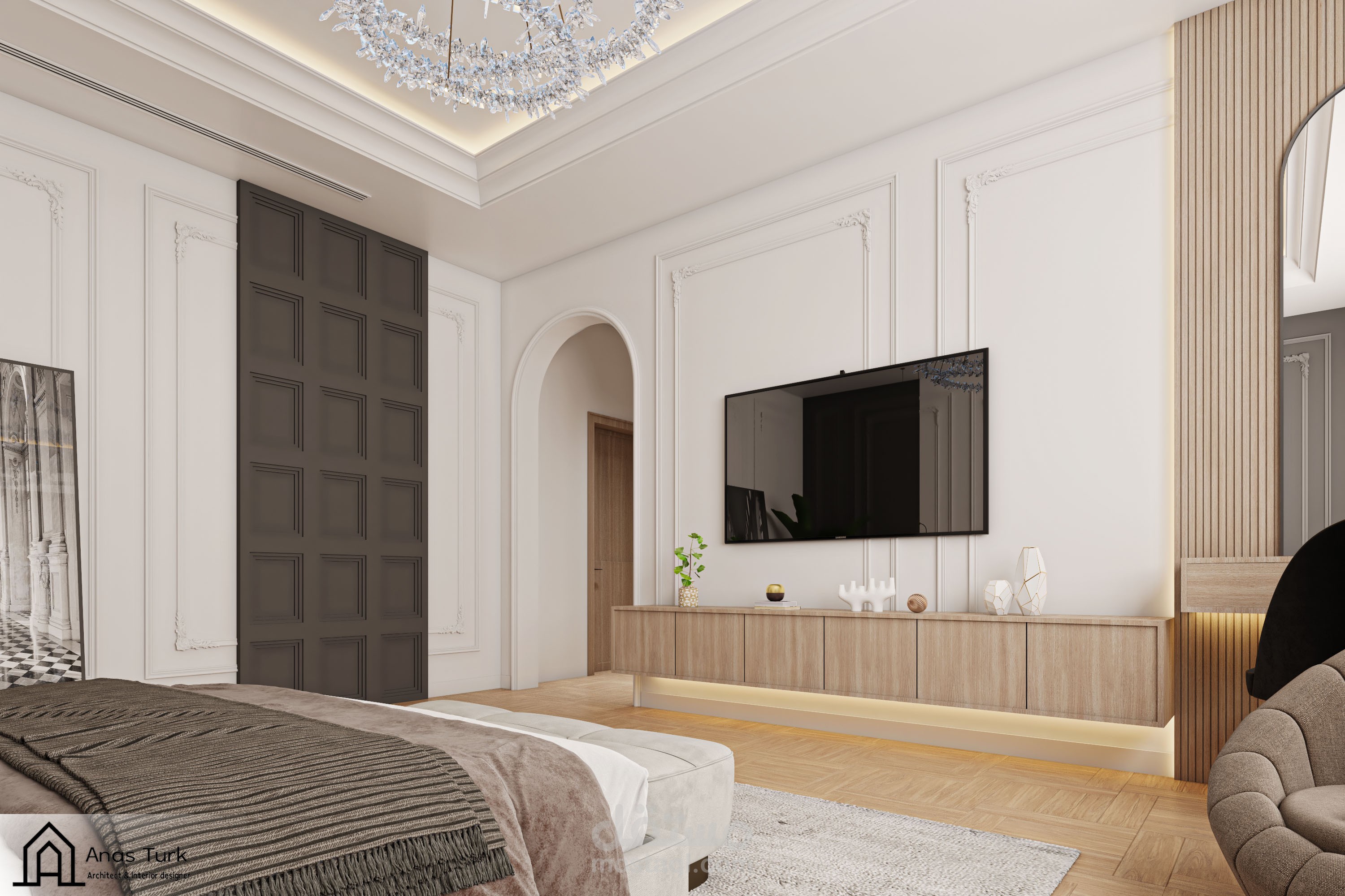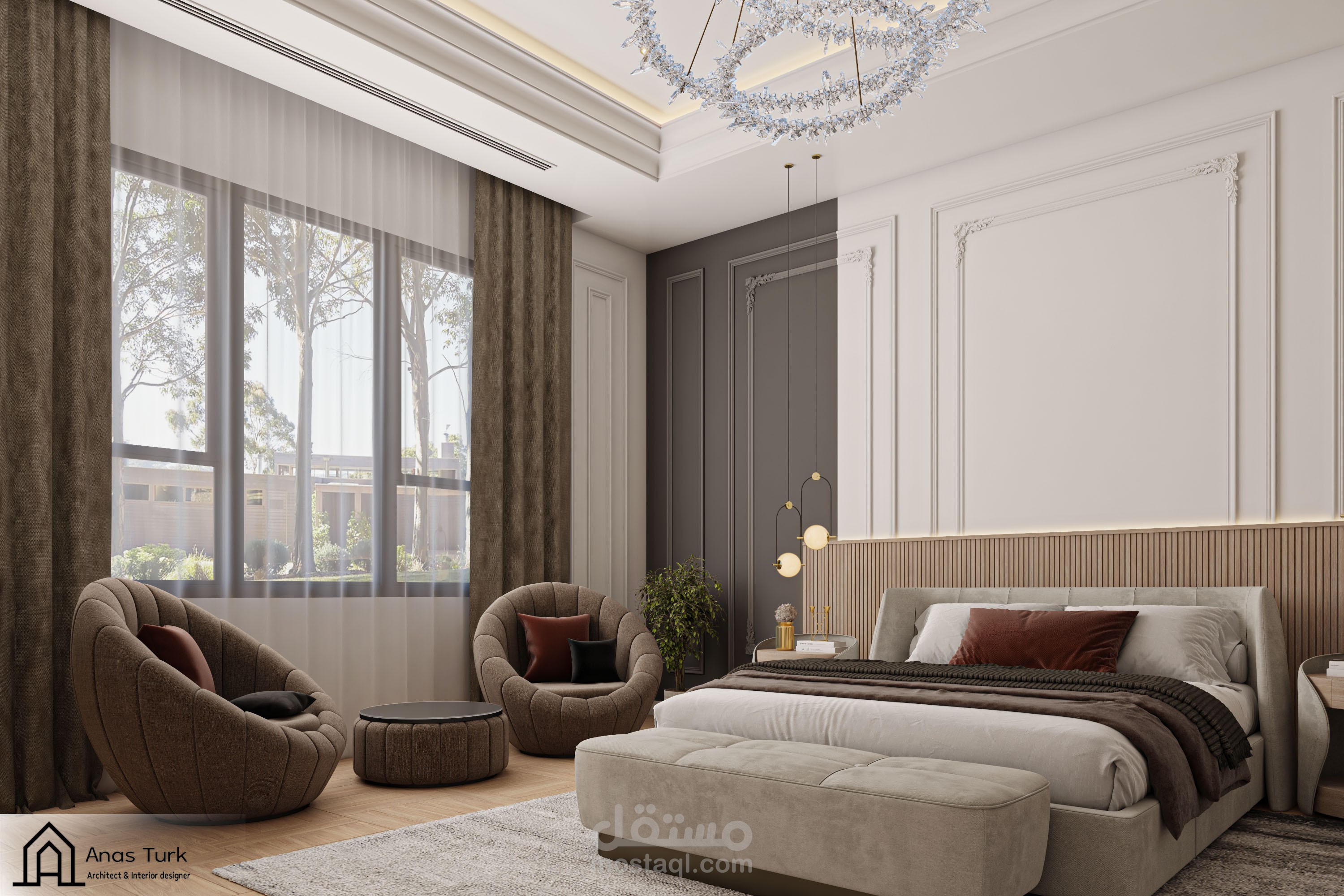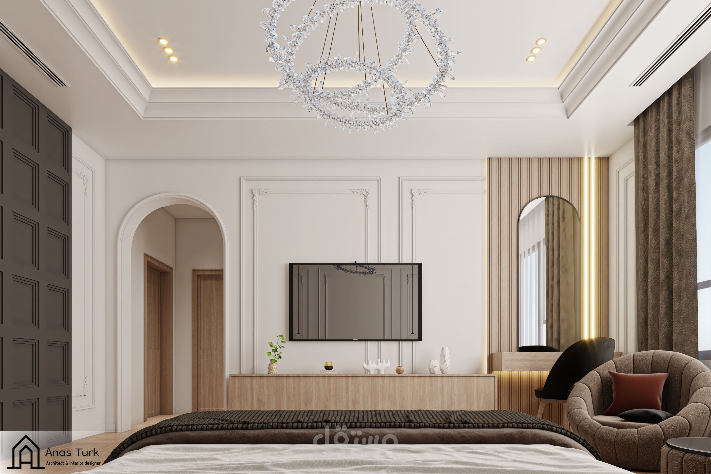 عملي الجديد في التصميم الداخلي غرفة نوم ابوين على طراز نيو كلاسيك بالإضافة الى غرفة ملابس وحمام خاص بالأبوين في المملكة العربية السعودية