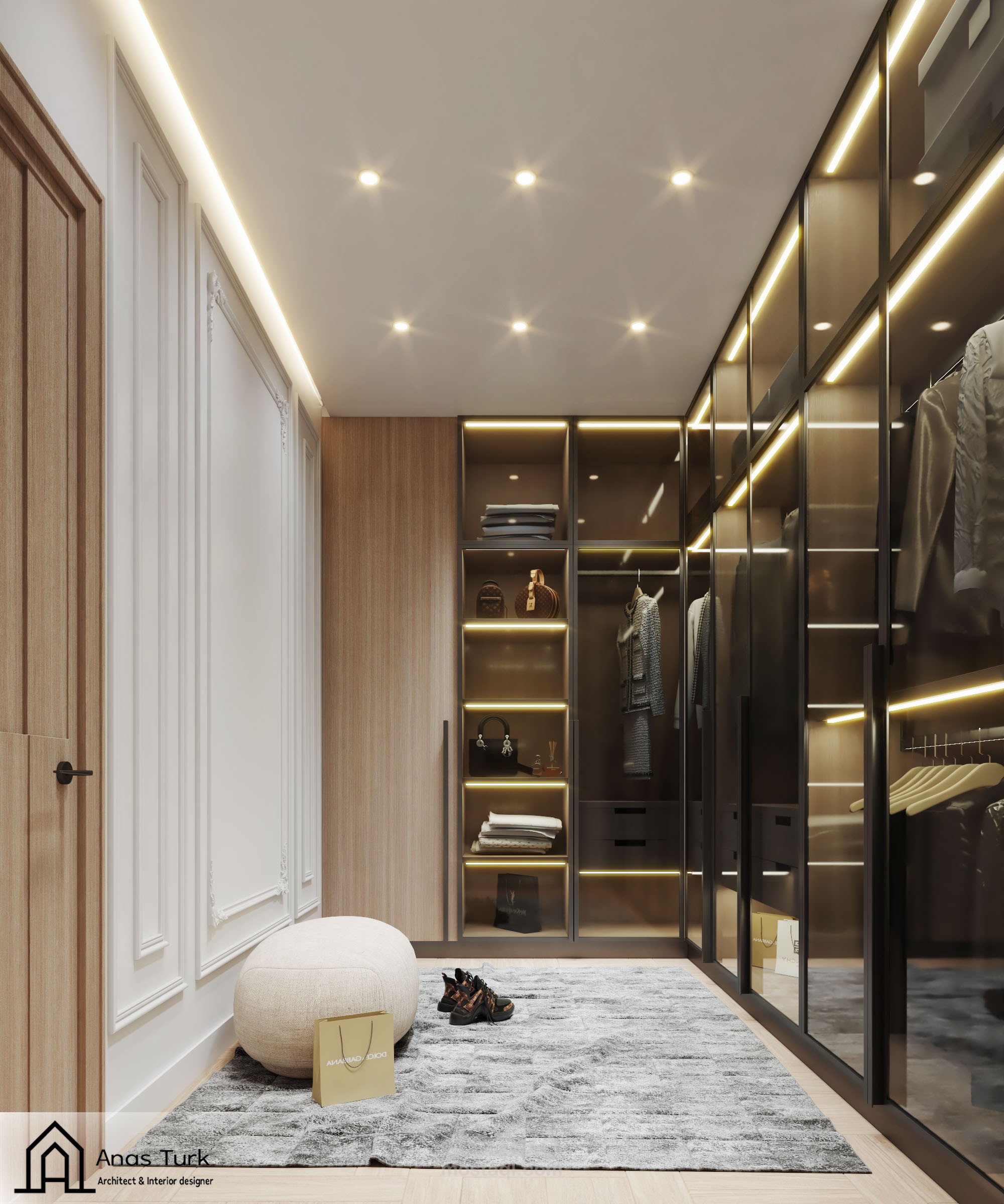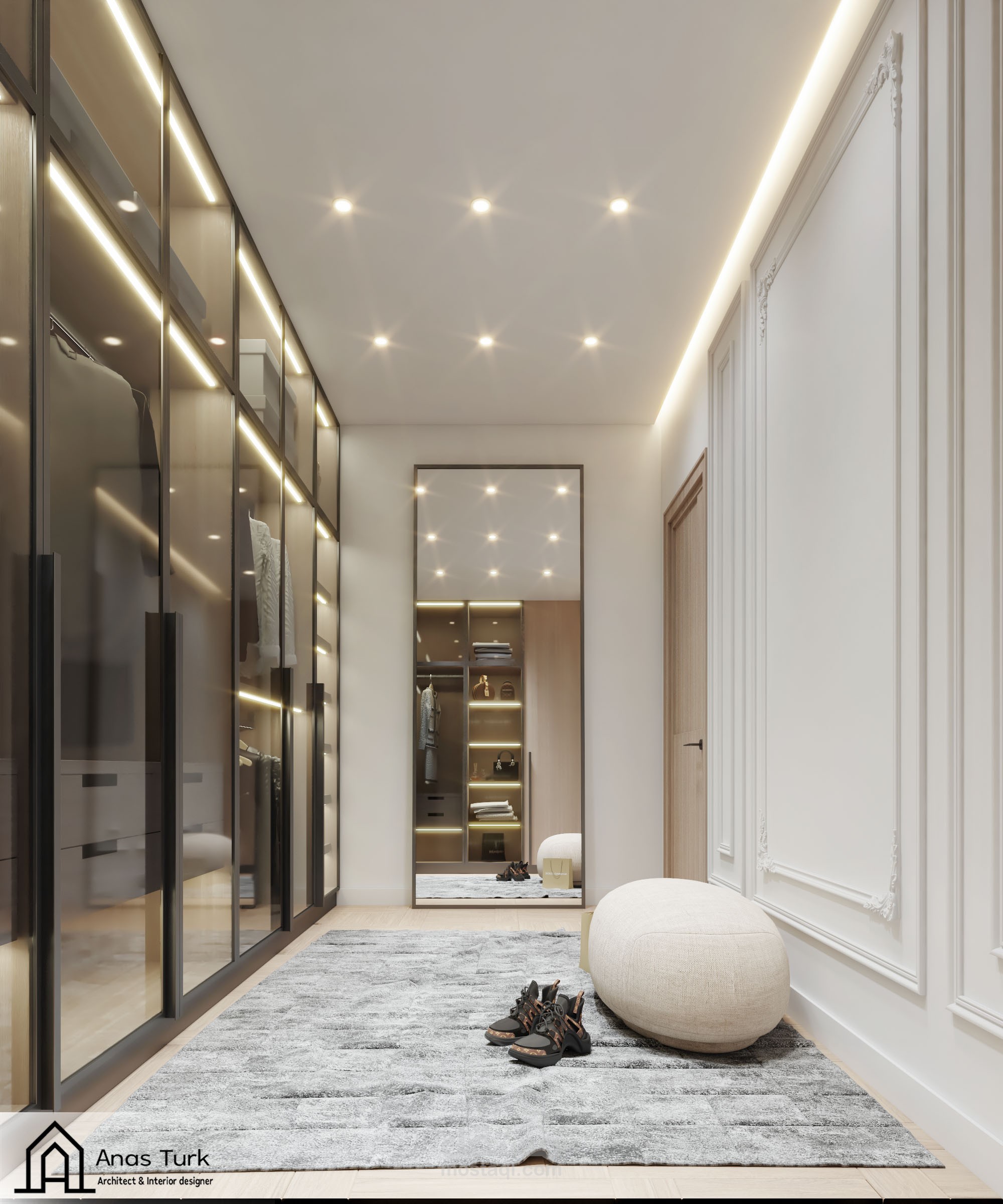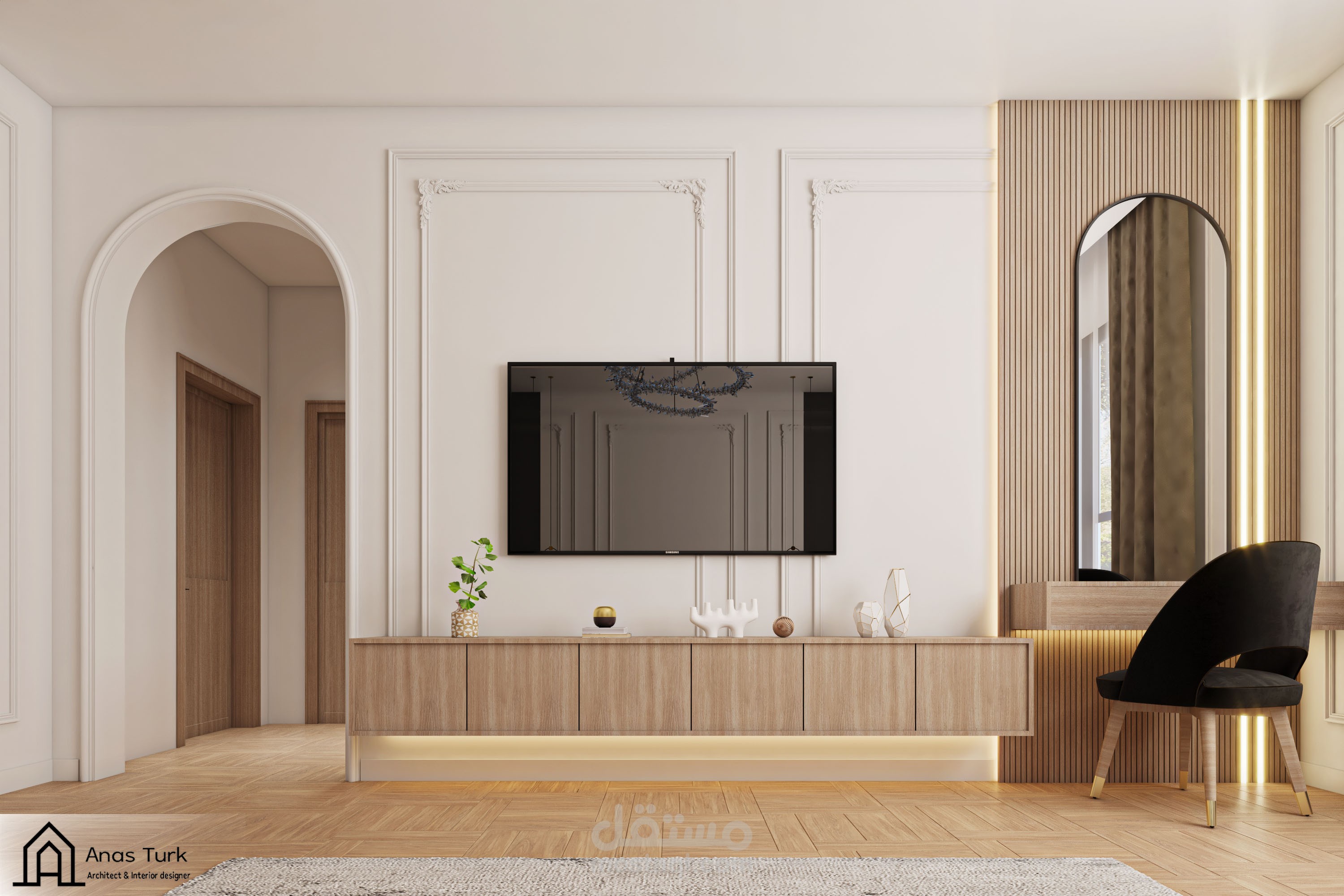 عملي الجديد في التصميم الداخلي غرفة نوم ابوين على طراز نيو كلاسيك بالإضافة الى غرفة ملابس وحمام خاص بالأبوين في المملكة العربية السعودية