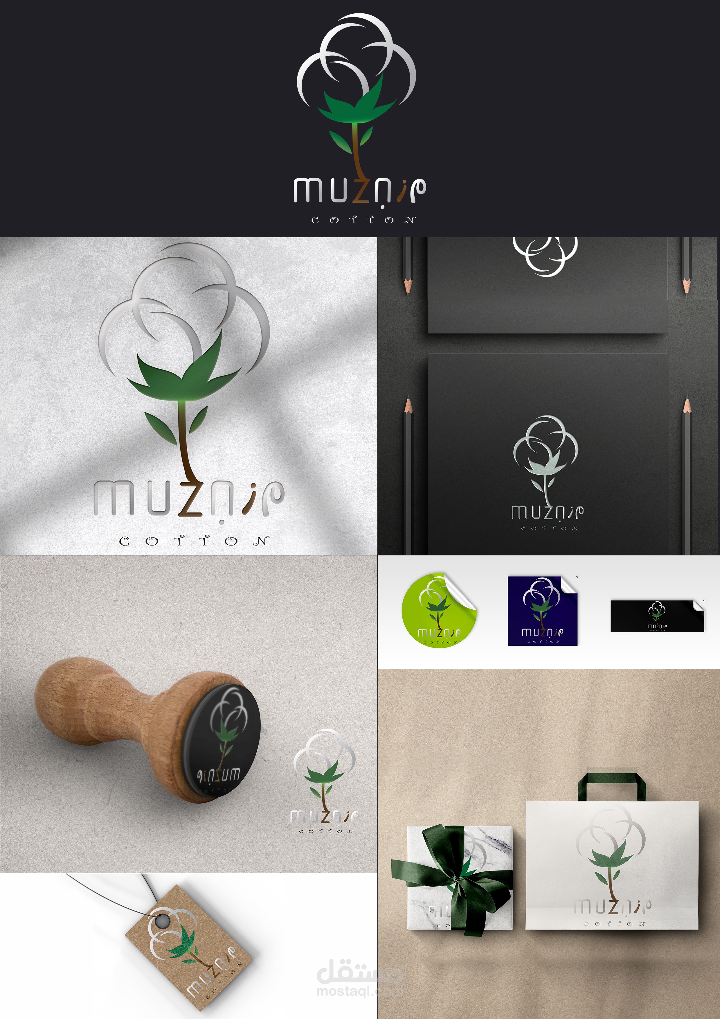 It is based on the plant of cotton and the integration of Arabic letters in English