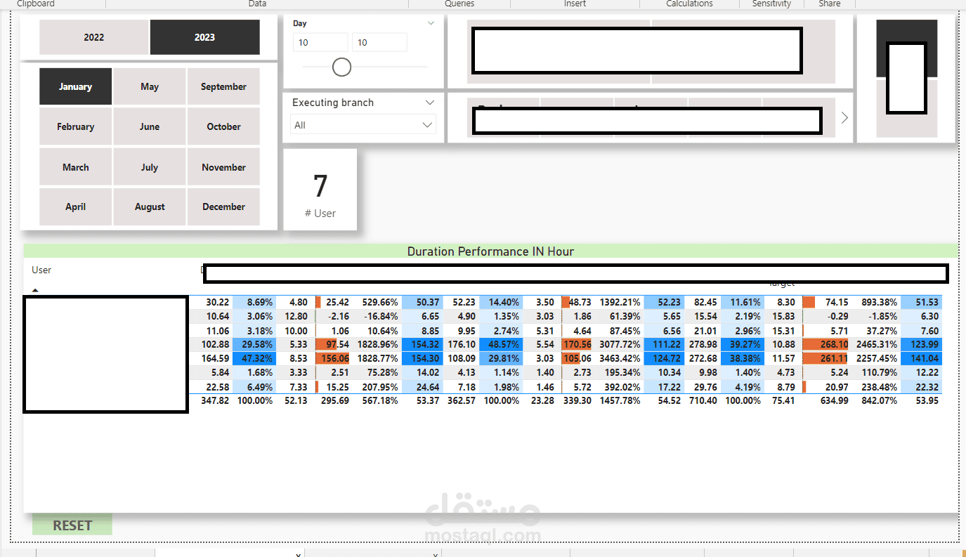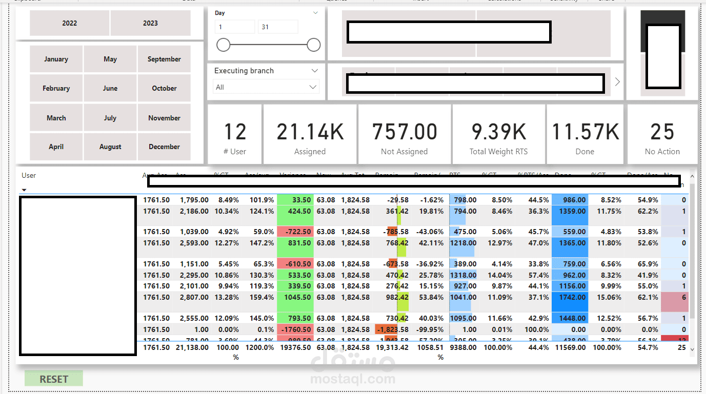داشبورد يوضح معدلات اداء الموظفين بالتاسك والوقت وغيرها