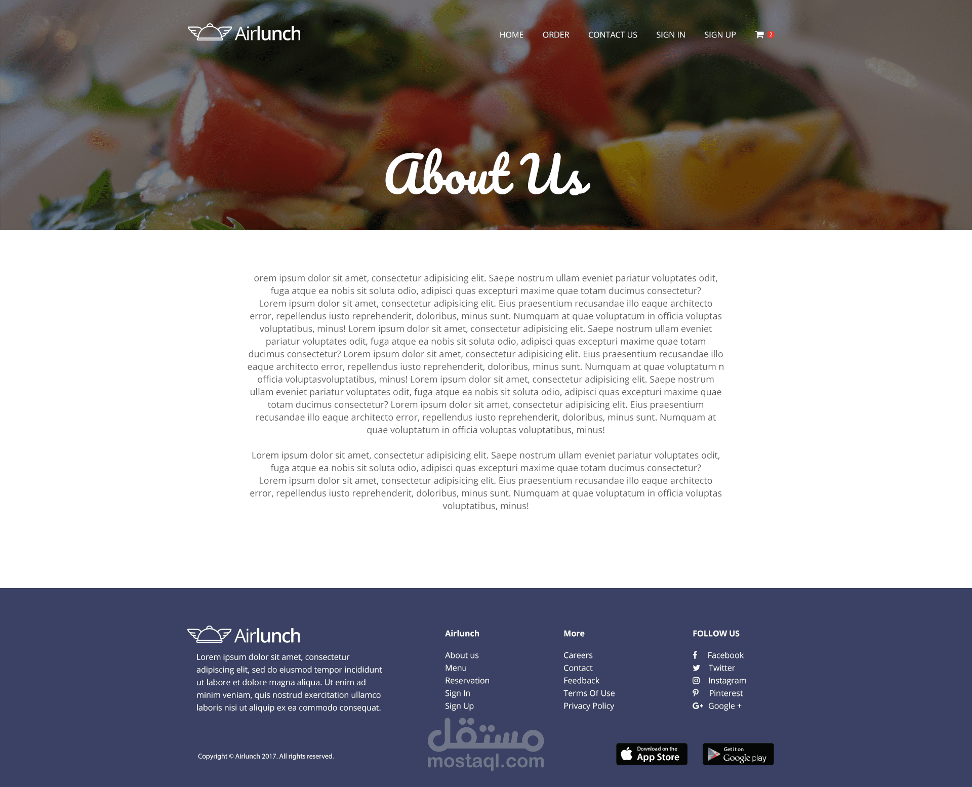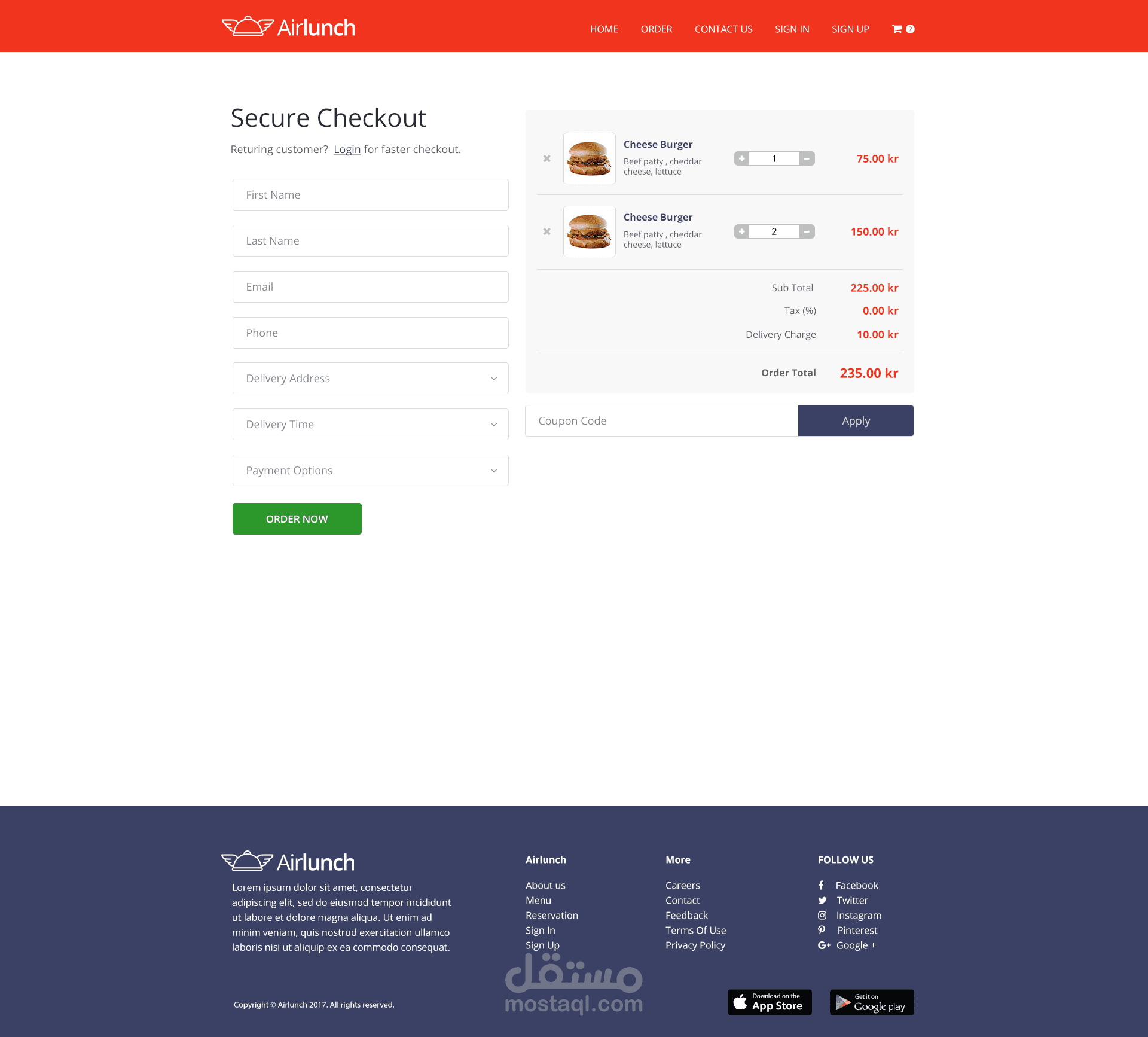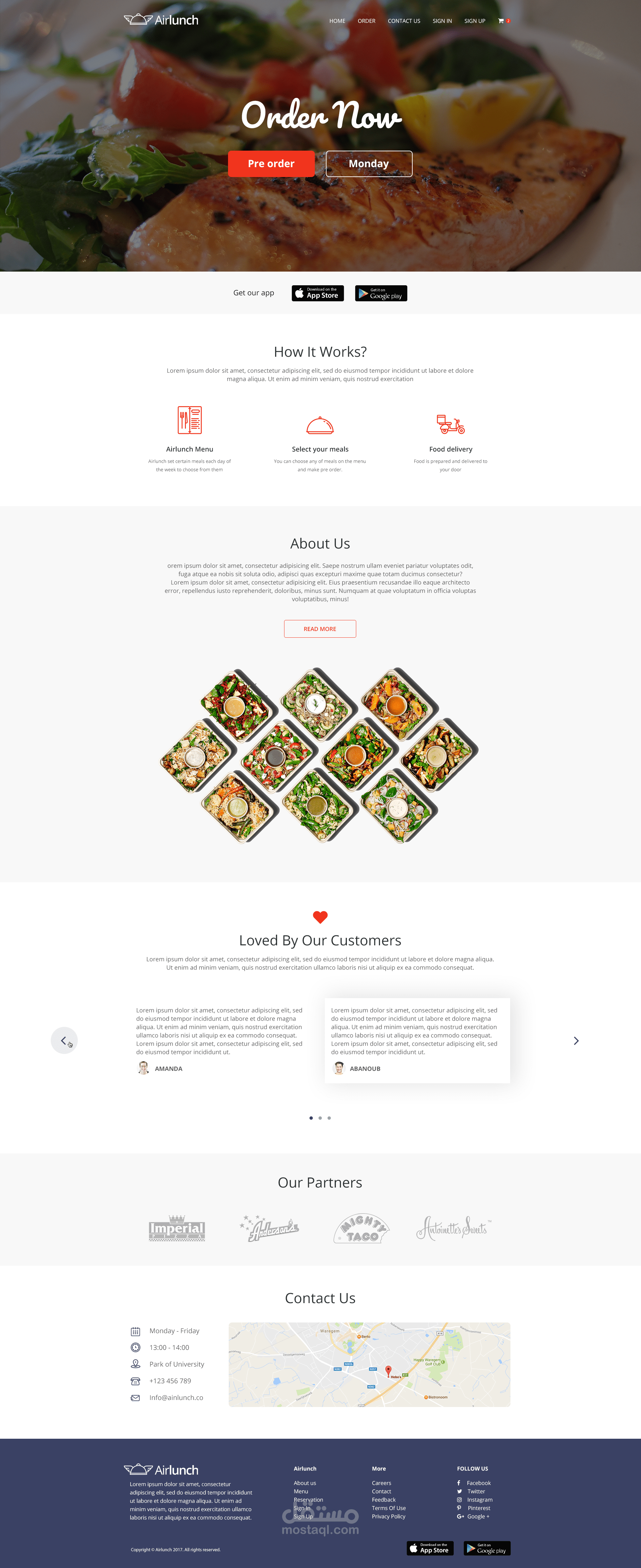 تصميم وتطوير موقع AirLunch .. موقع لطلب المأكولات أون لاين .