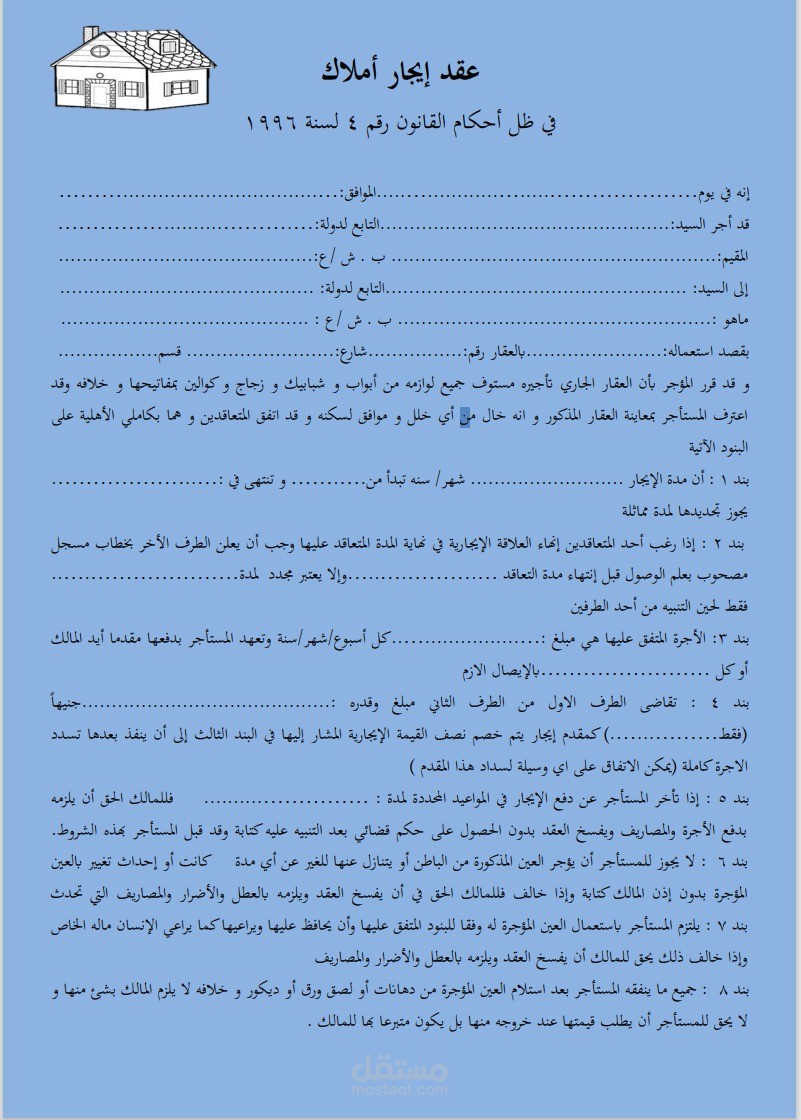 عقد إيجار أملاك