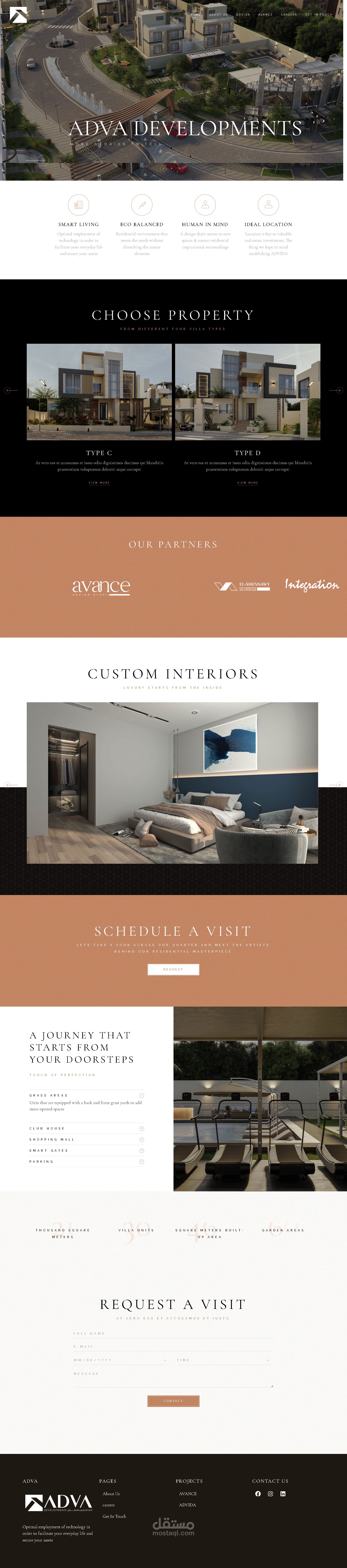 موقع لشركة عقارات تقوم بعرض مشاريعها علي الموقع يتميز الموقع بالرقي في التصميم والالوان المتناسقة لتعكس فخامة المشاريع التي تقدمها الشركة