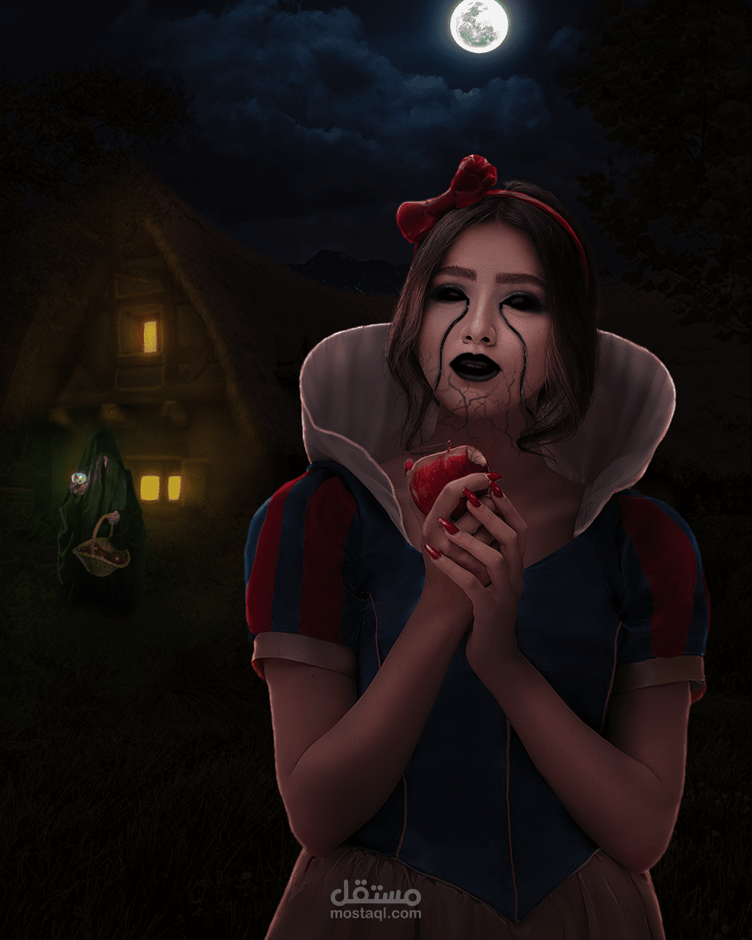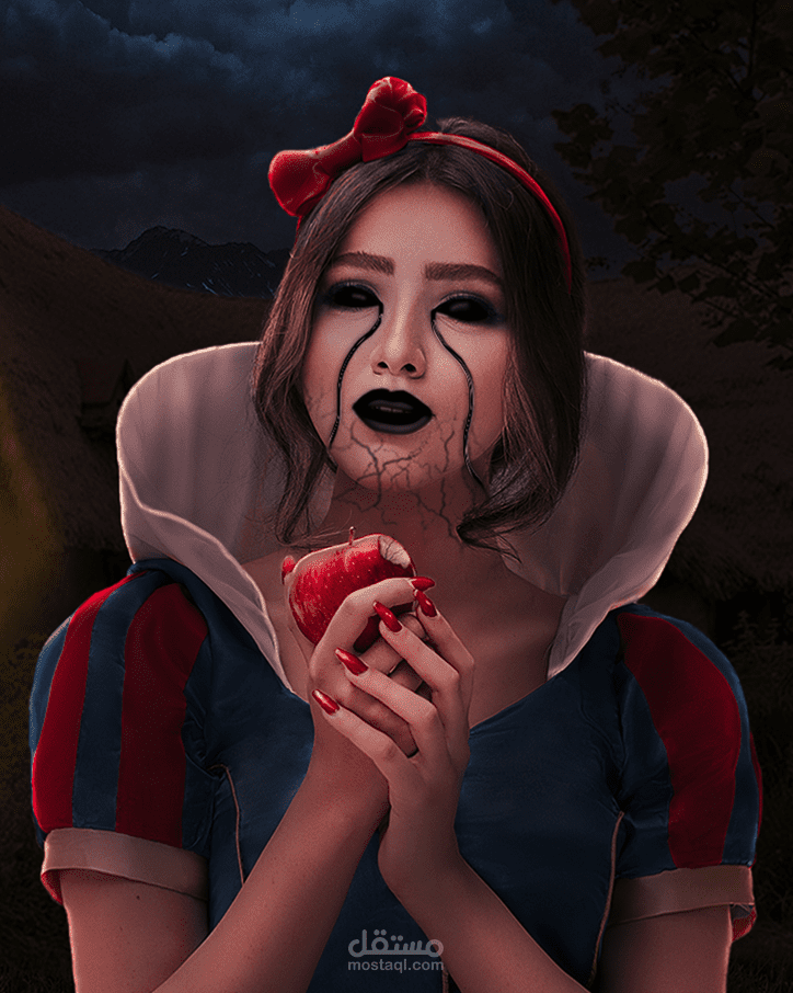 This artwork is inspired by the snow white's villain's quote ""One bite and all your dreams will come true " and shows what if there was a dark ending for snow white.